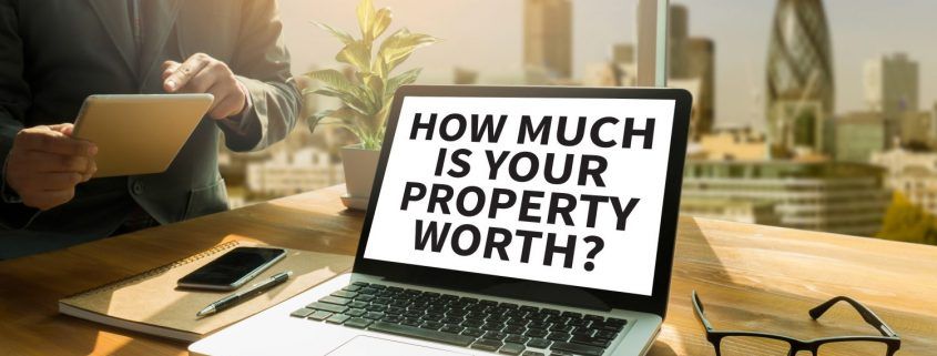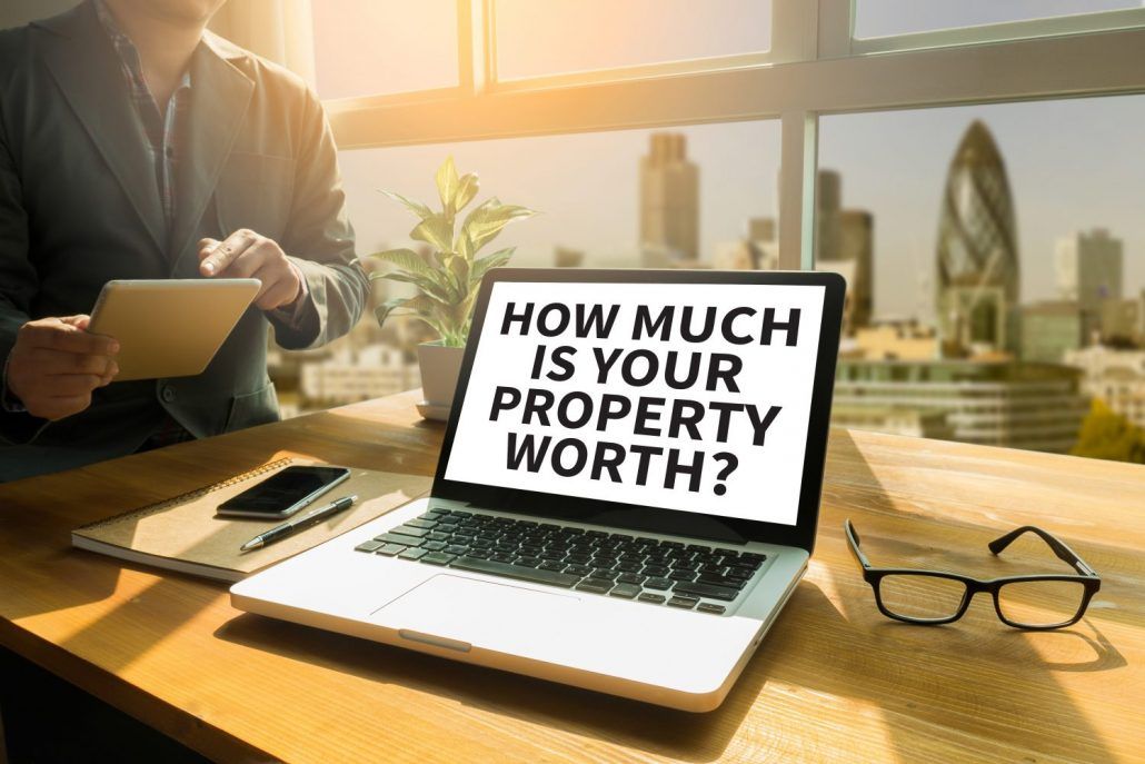 computer with "how much is your property worth" on the screen