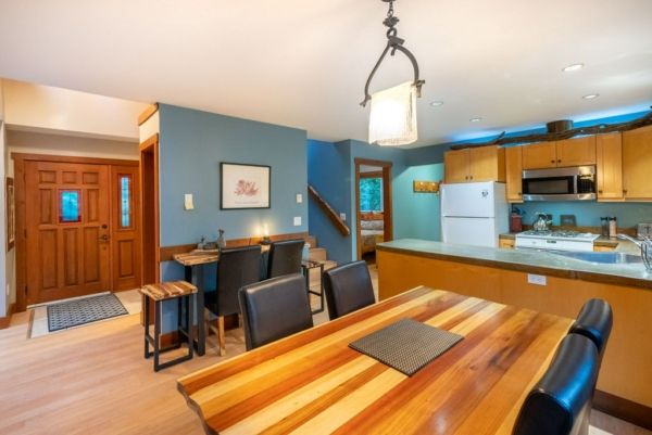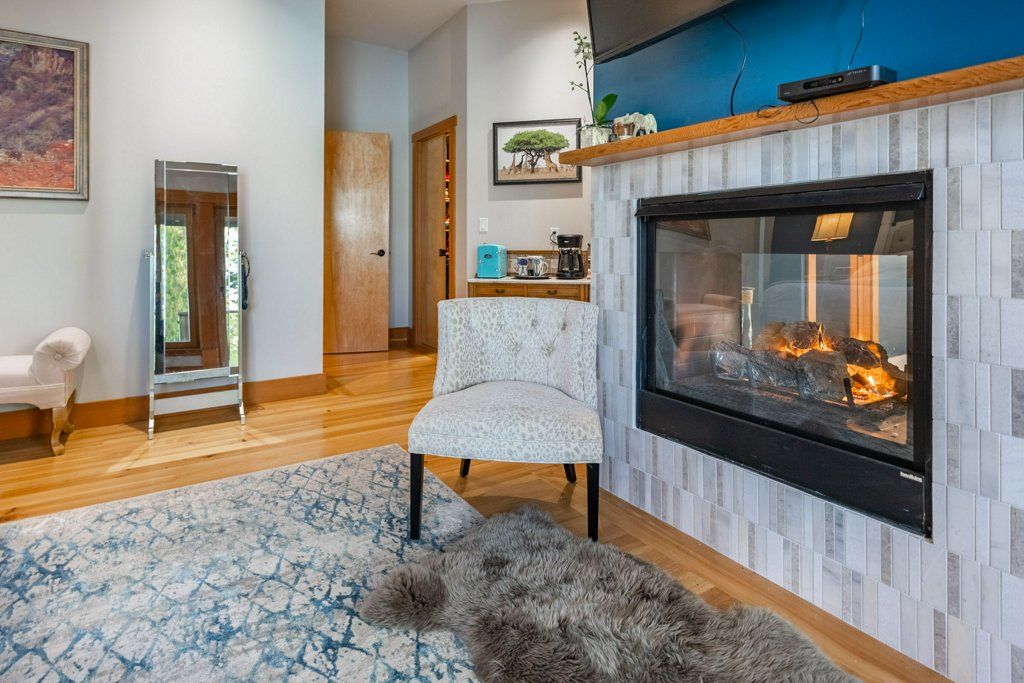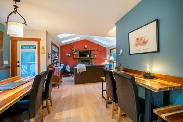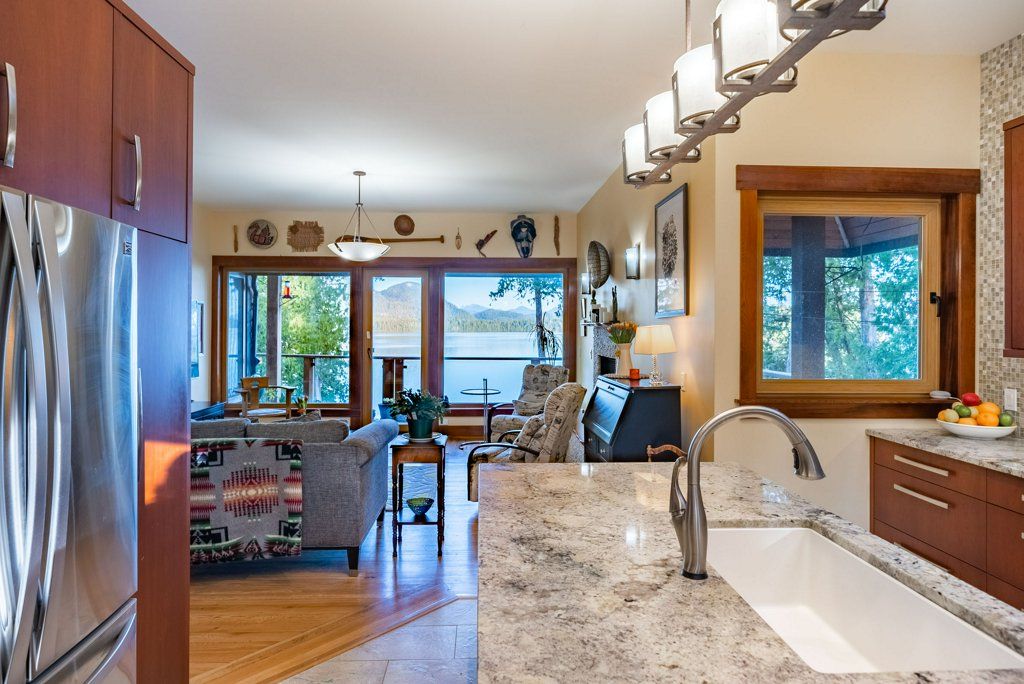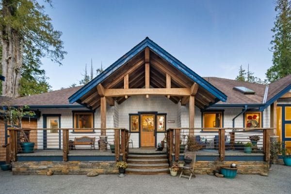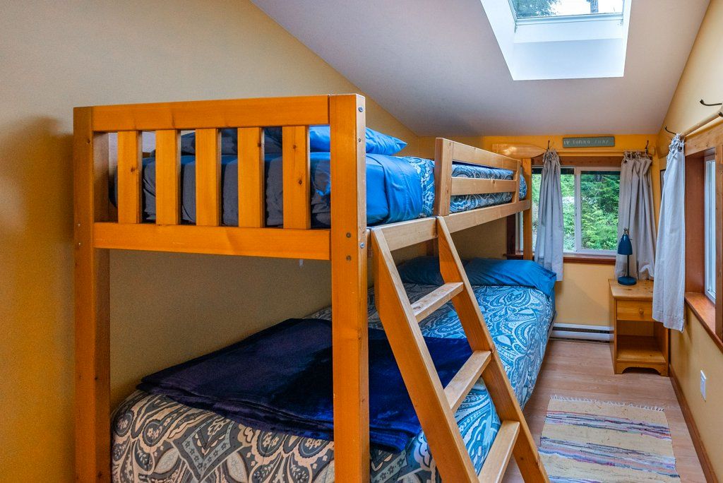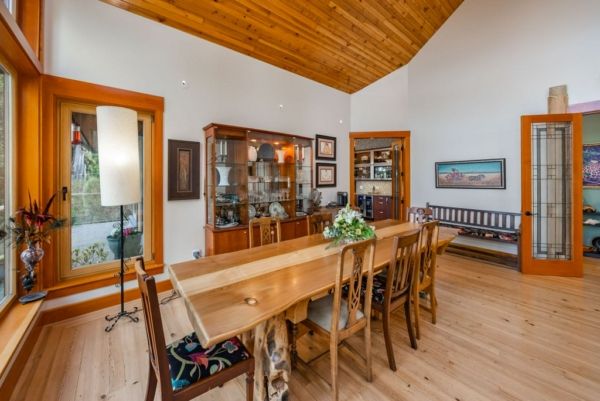 The main house offers over 5000 sq.ft overlooking the ocean inlet. This beautiful home is perfectly positioned to capture the stunning views of the water framed by the lush rainforest offering a serene, private setting. The main floor of this Tofino oceanfront home is centered around a stunning great room with vaulted ceilings and rich wood accents. The beautiful cedar beams and hardwearing hemlock wood floors were sourced directly from the lot.