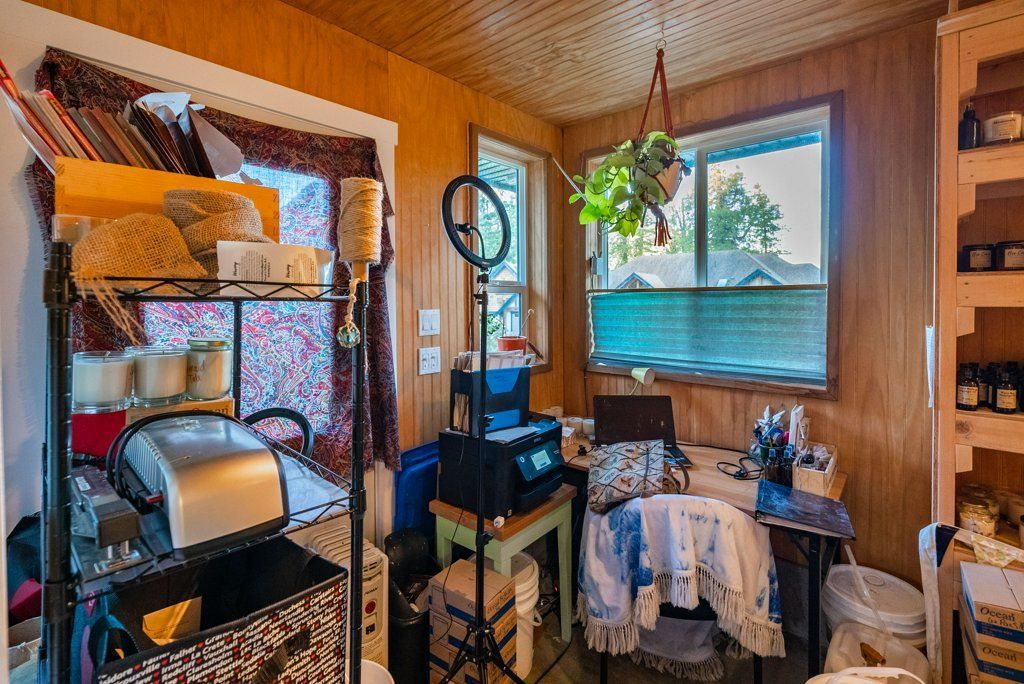 Off the recreational room is a unique unfinished space that has 2 garage doors and a half bathroom. This area would be perfect for toy storage, an additional suite, a workshop or home office, art or yoga studio, a man cave, or a games room, the possibilities are endless.