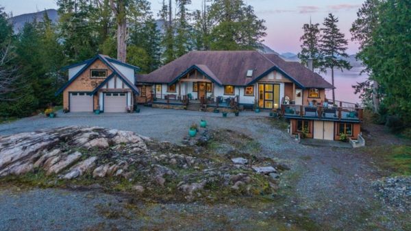 Located in the heart of the small coastal town of Vancouver Island, British Columbia, this Tofino waterfront home sits on 2.5 acres and features 165 feet of pristine oceanfront.