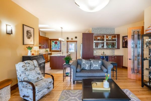 Designed for one-level living, the main floor spans 2700 sq.ft. The kitchen is off the great room and has access to the front deck, a perfect spot to relax in the afternoon. There is a cozy family room with a fireplace just off the kitchen and has access to the back deck.