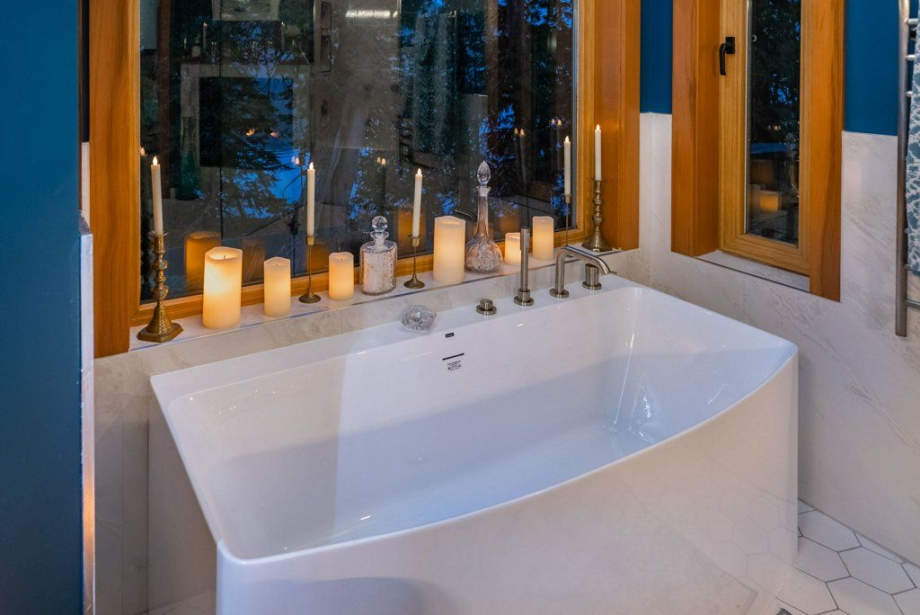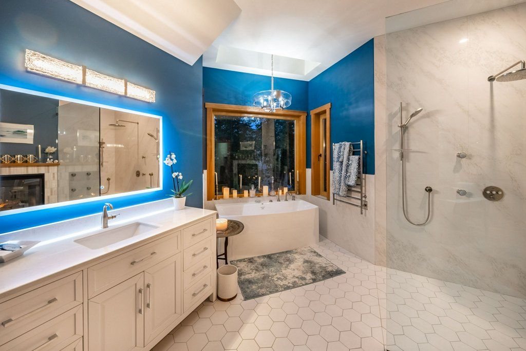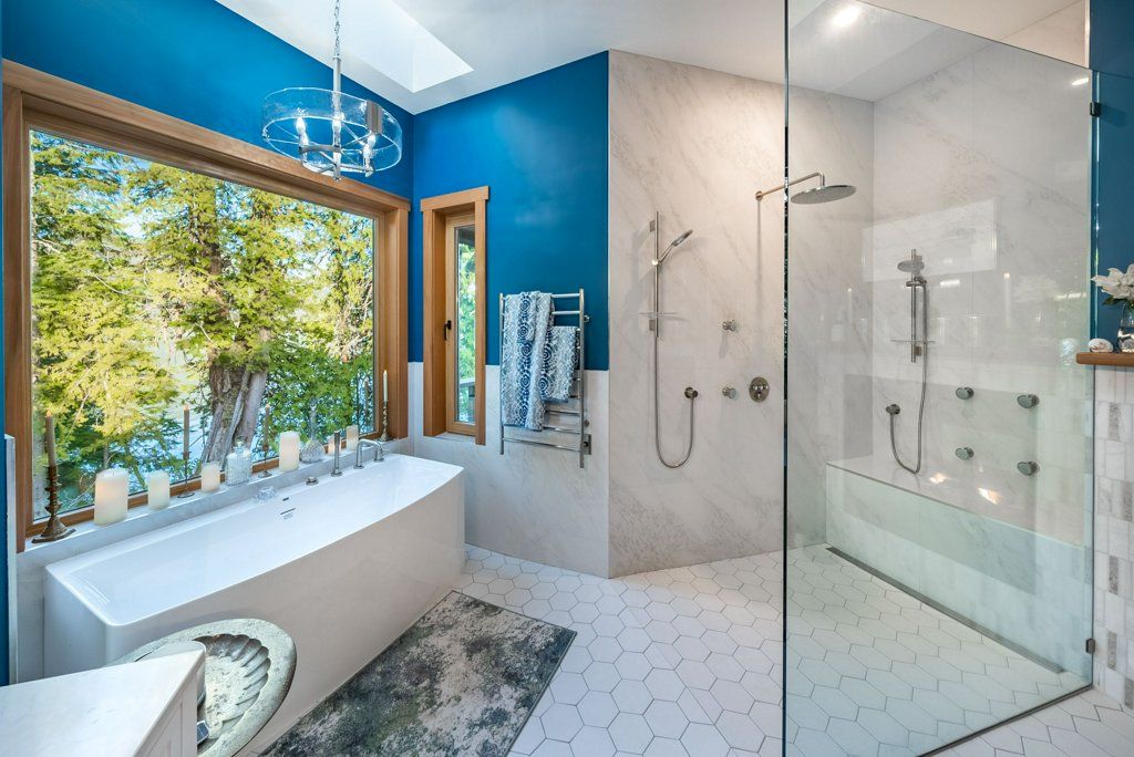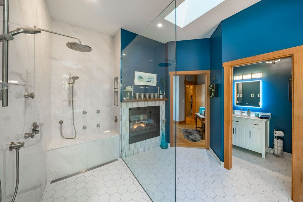 Wake up to the sun rising over the ocean from your master bedroom. With access to the back upper deck, this spacious area is an open concept with 2 sided fireplace to the bathroom. The ensuite has been newly finished offering a walk-in glass shower with body jets, his and her sinks, and a large walk-in closet. This floor is complete with a large laundry room leading to the double car garage, home office, and full bathroom.