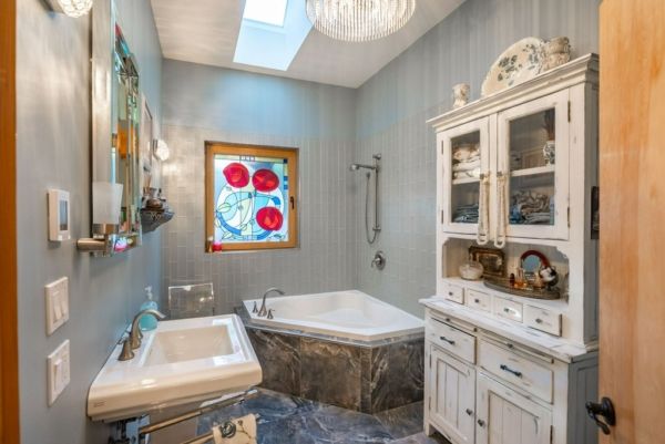 The oversized double-attached garage is connected to the home through a covered breezeway. Over the garage is a fully contained-studio suite with a separate entrance