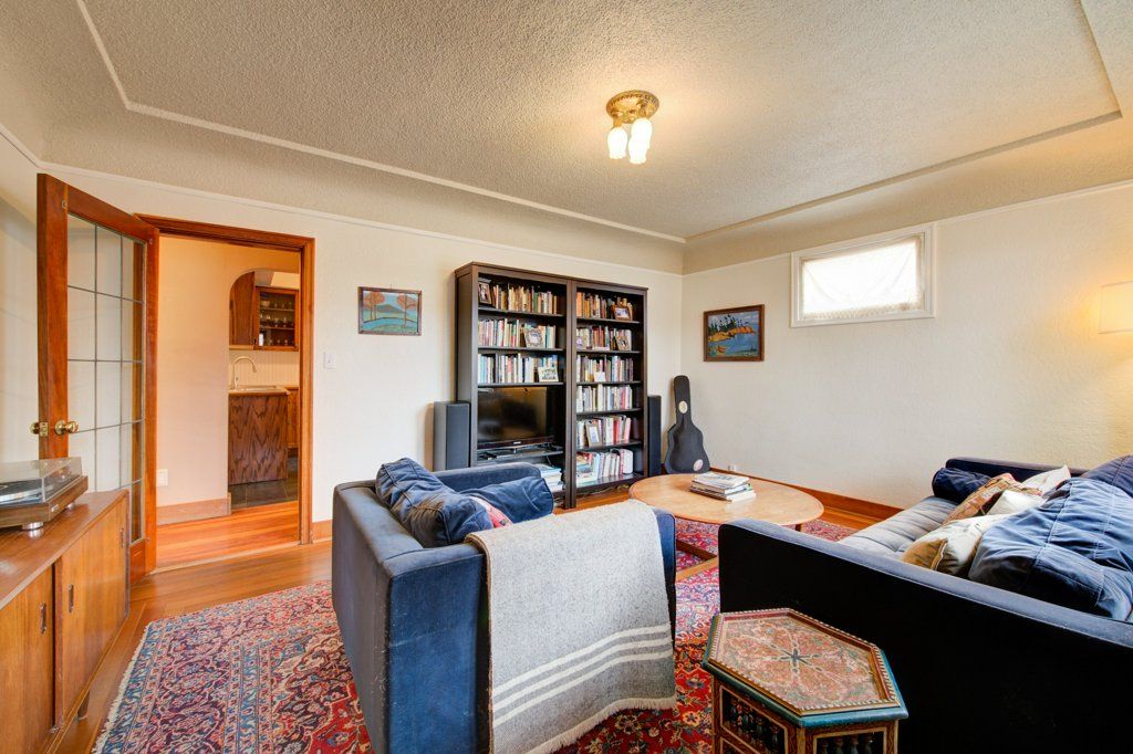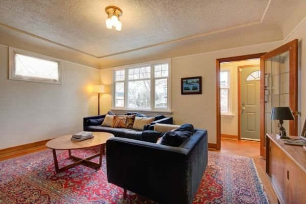 1075 Wilson Ave- Living roomZoned MF1 MF2, this large 58 x 123 lot is located in the heart of the vibrant Downtown Kelowna and is home to a charming 4 bedroom, 2000 sq. ft home.