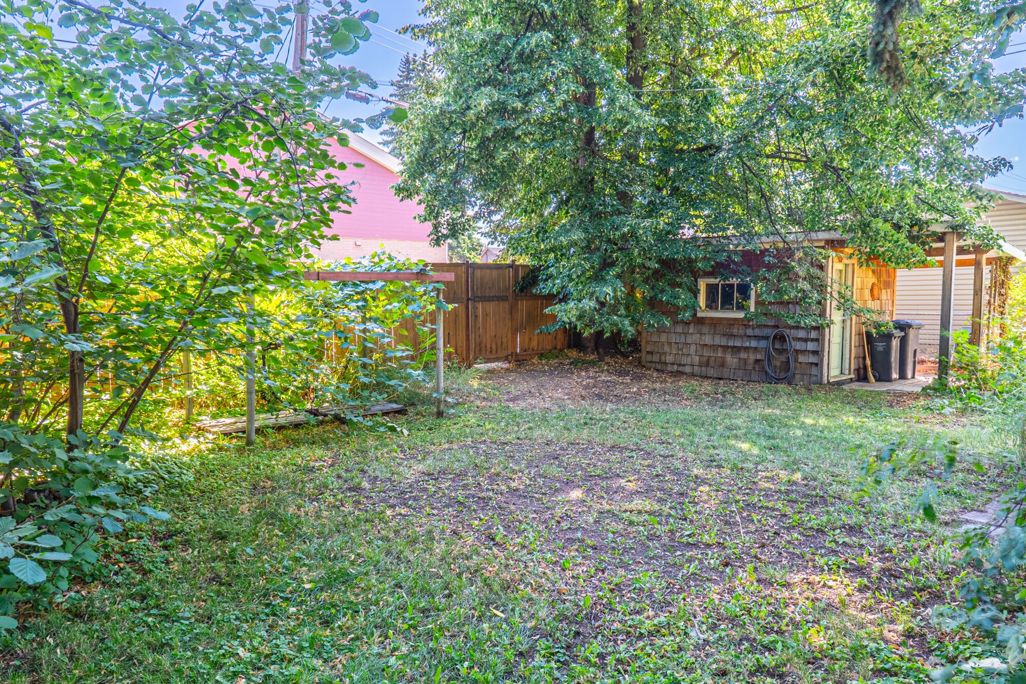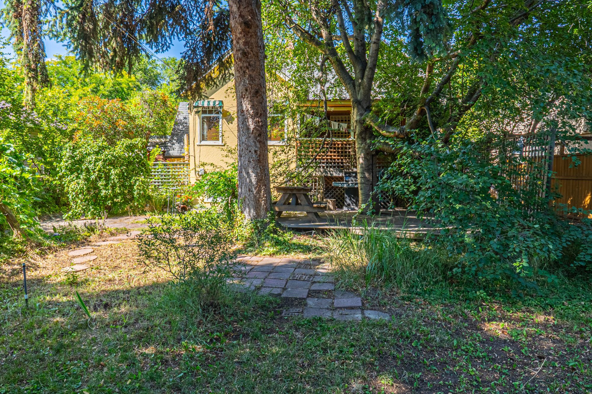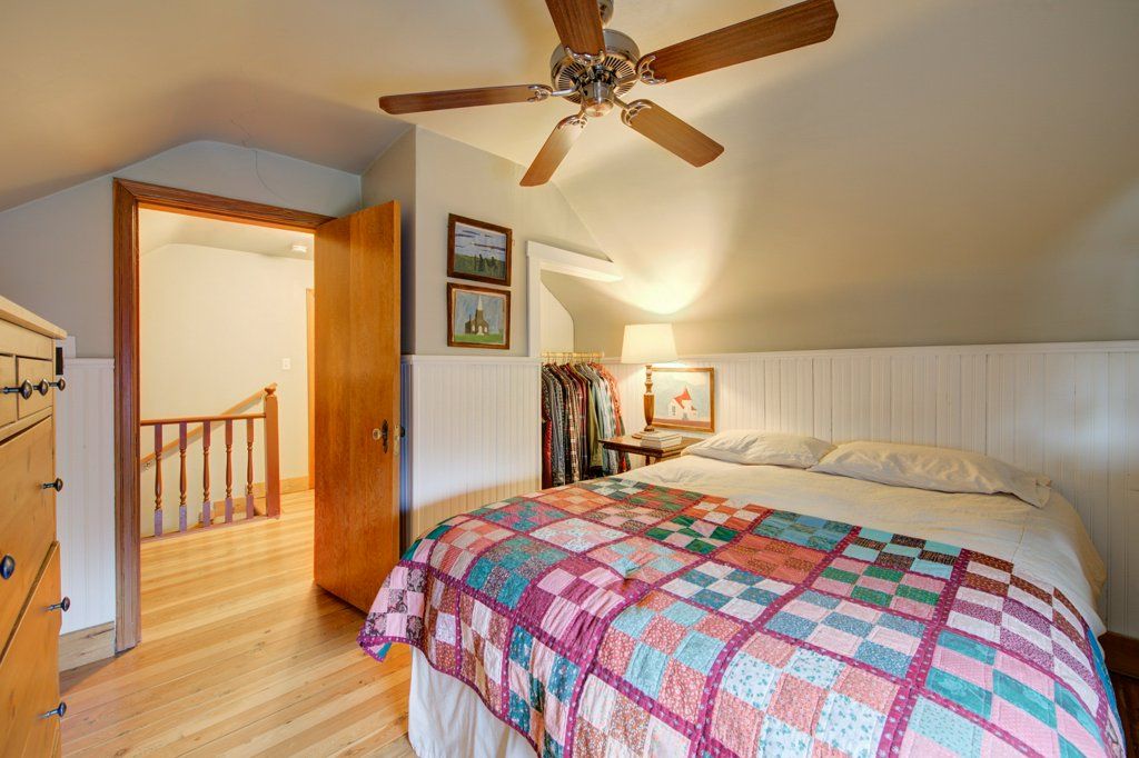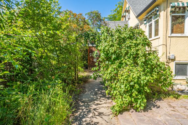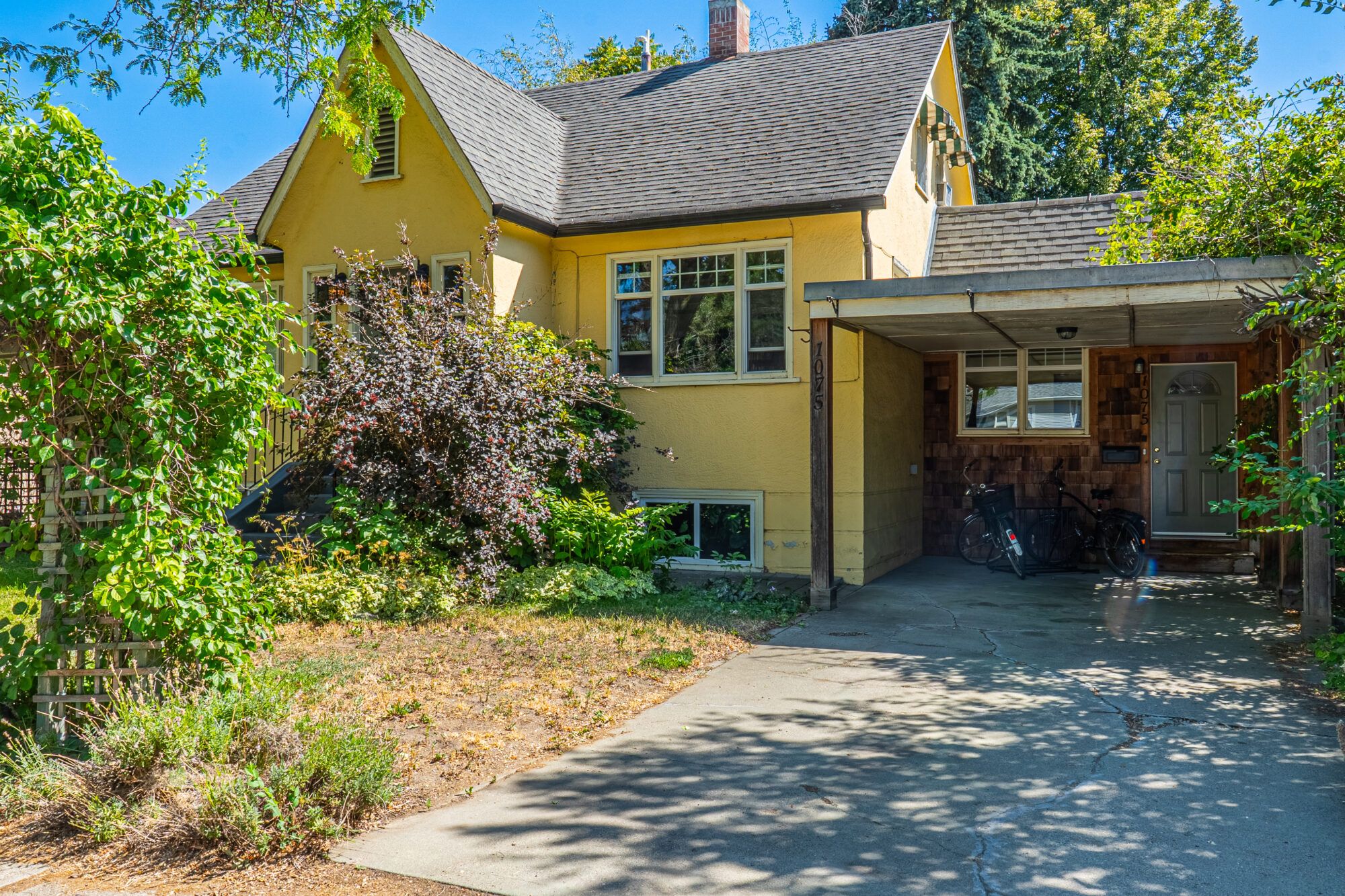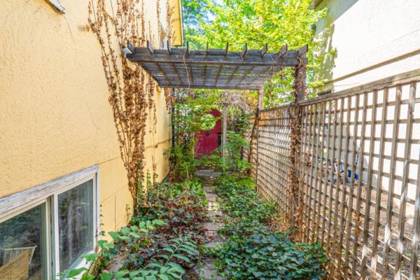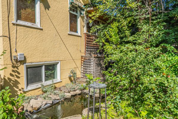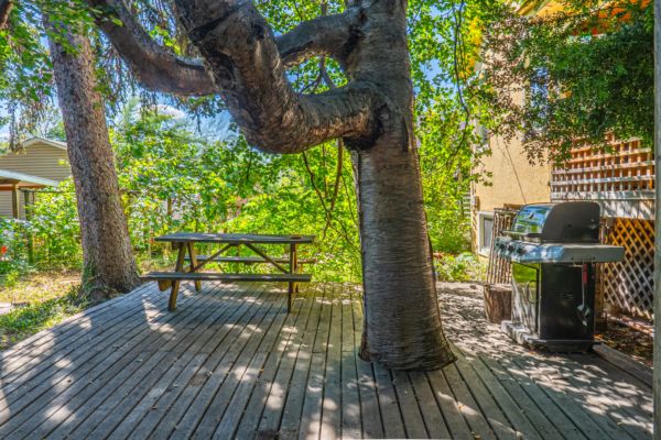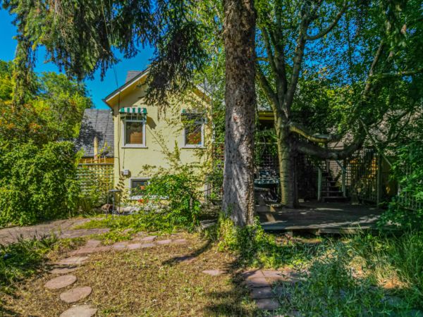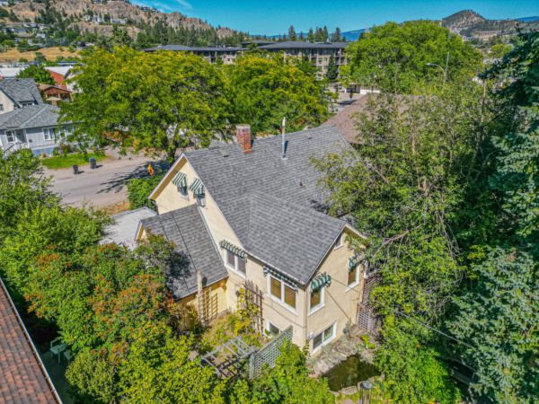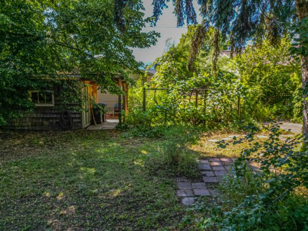 The upper level has an additional bedroom, a small home office or hobby room, and a full bathroom.  Angled ceilings in the upper level of the home add to the character of this Downtown Kelowna home. The lower level has ample storage room and could be converted into a suite.  Currently finished with a bedroom and large rec room with an unfinished workshop and cold storage.  The backyard is lush with vegetation featuring old lilac bushes, and 2 varieties of grape vines climbing the archways all surrounding the beautiful towering river birch tree.  This beautiful backyard was featured in a home and garden magazine, showcasing all the beauty this yard offers. This is a great opportunity to own a bit of Kelowna’s history, the possibilities are endless.