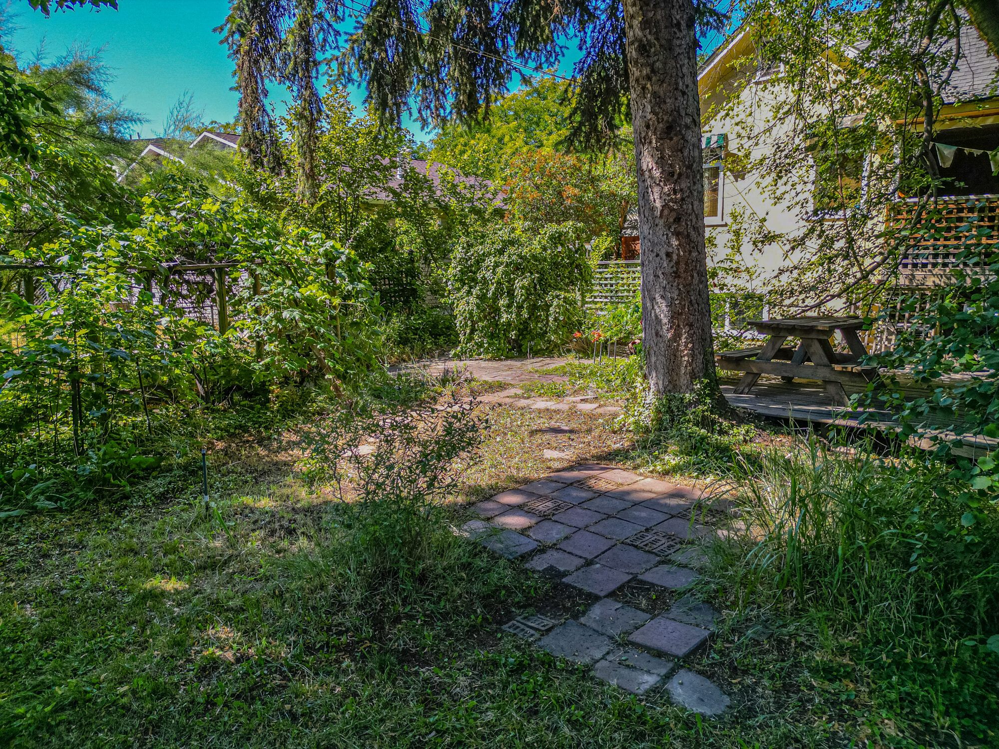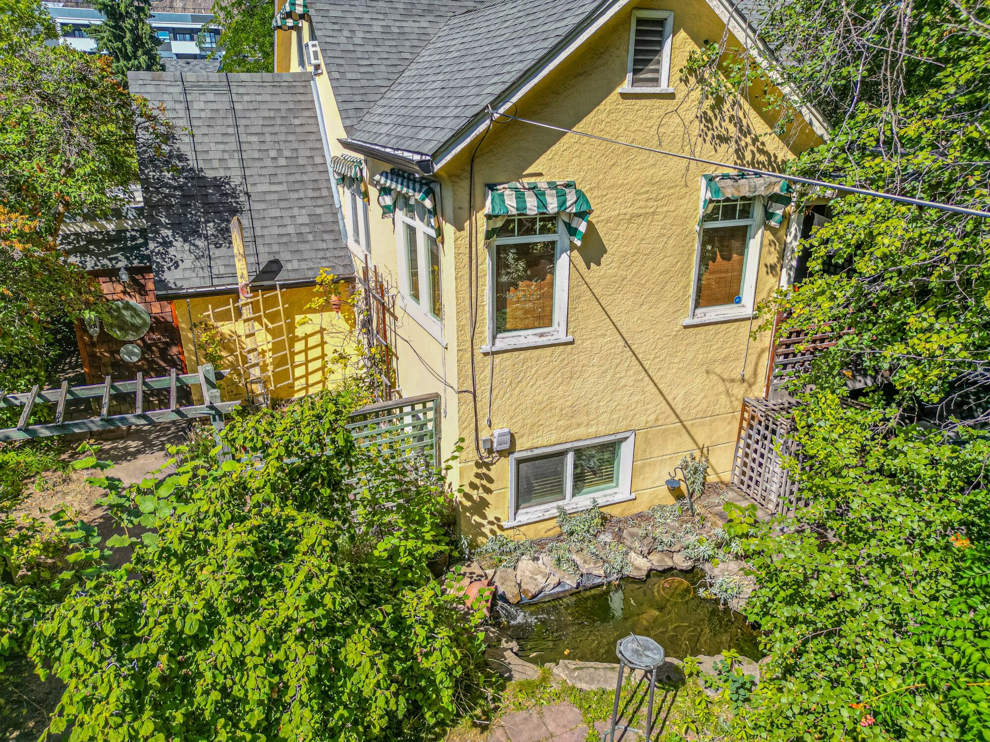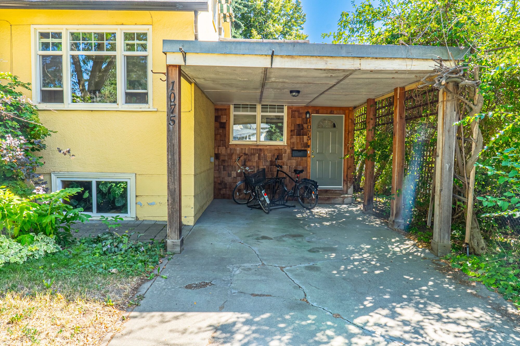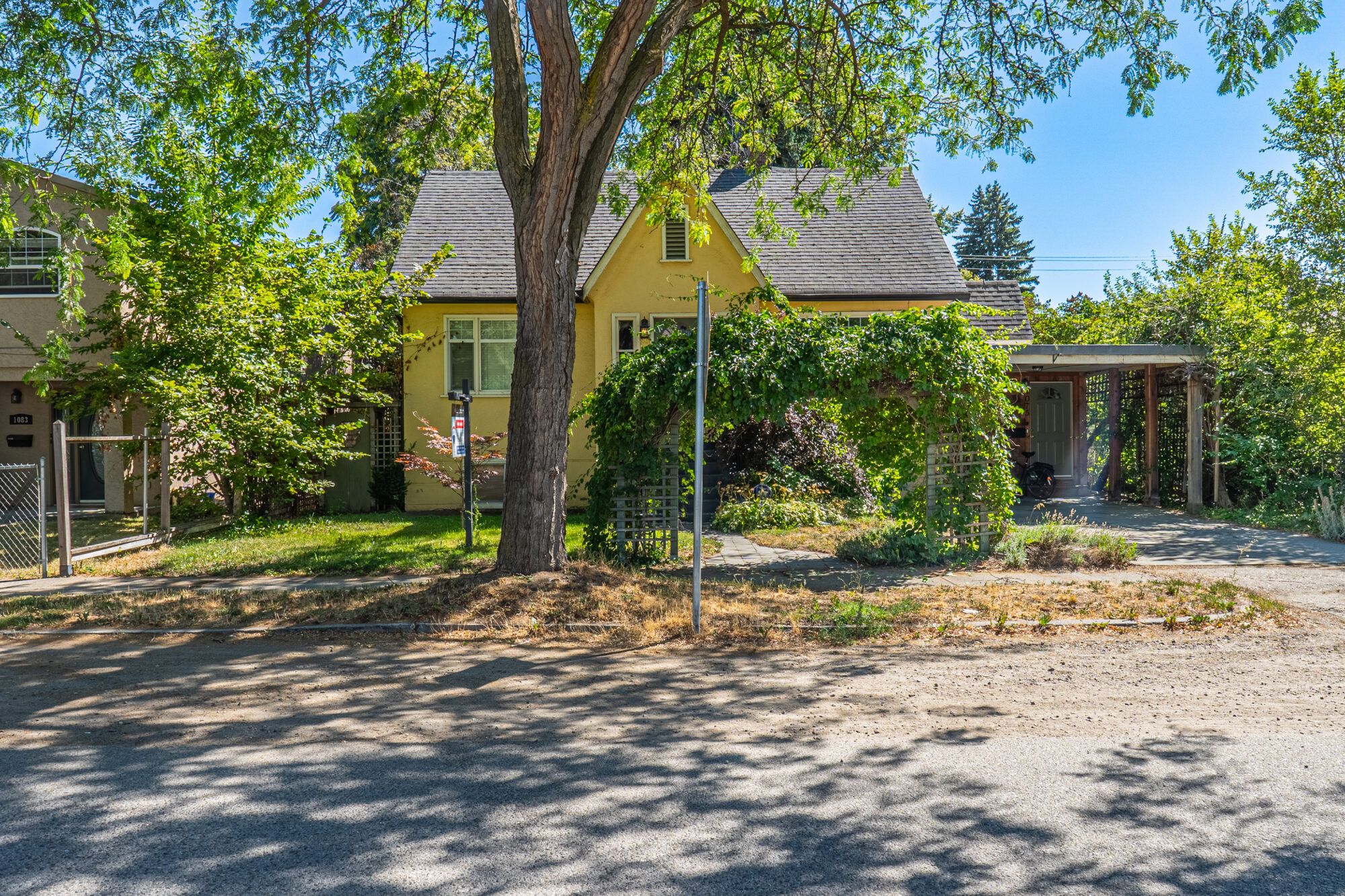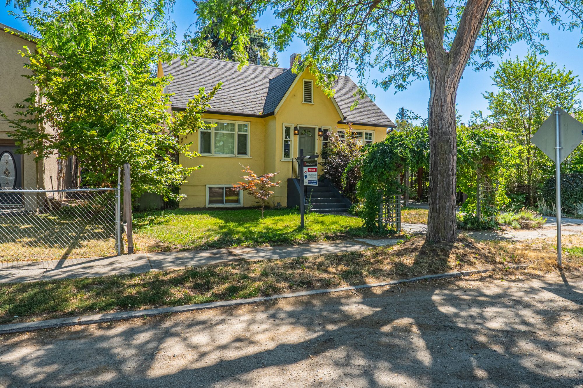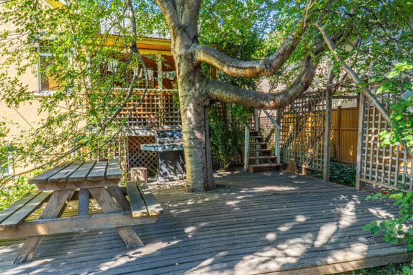 The upper level has an additional bedroom, a small home office or hobby room, and a full bathroom.  Angled ceilings in the upper level of the home add to the character of this Downtown Kelowna home. The lower level has ample storage room and could be converted into a suite.  Currently finished with a bedroom and large rec room with an unfinished workshop and cold storage.  The backyard is lush with vegetation featuring old lilac bushes, and 2 varieties of grape vines climbing the archways all surrounding the beautiful towering river birch tree.  This beautiful backyard was featured in a home and garden magazine, showcasing all the beauty this yard offers. This is a great opportunity to own a bit of Kelowna’s history, the possibilities are endless.