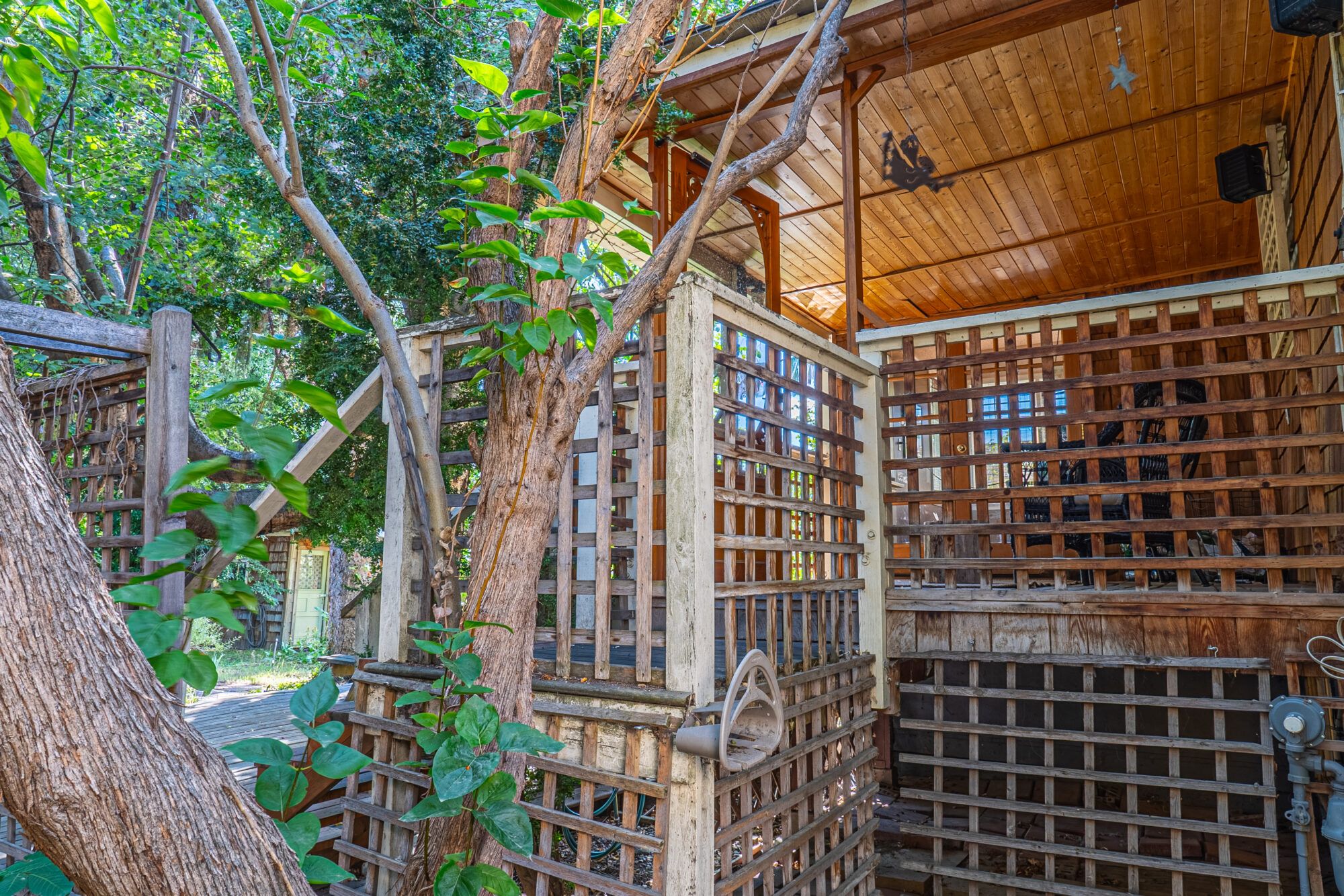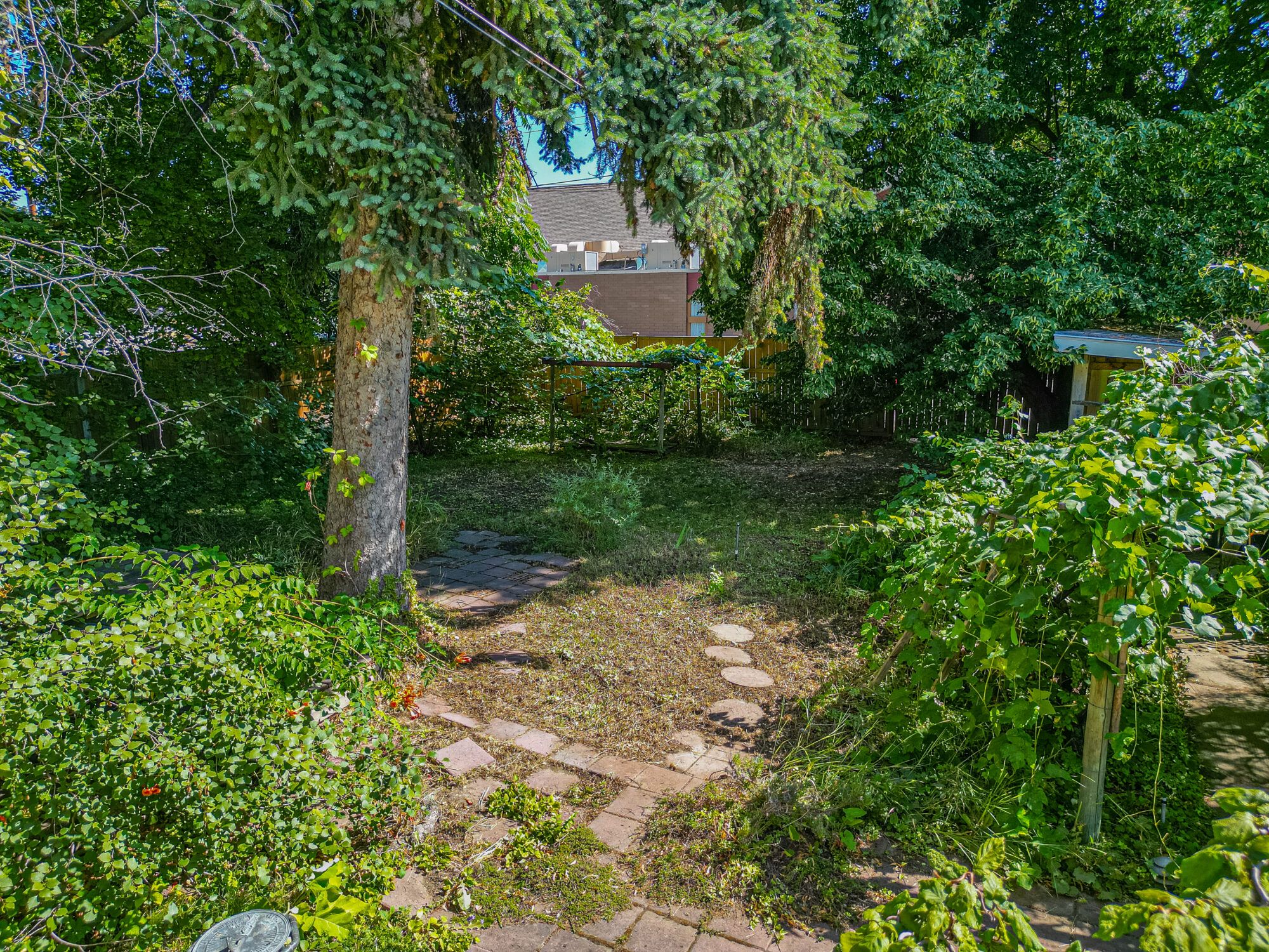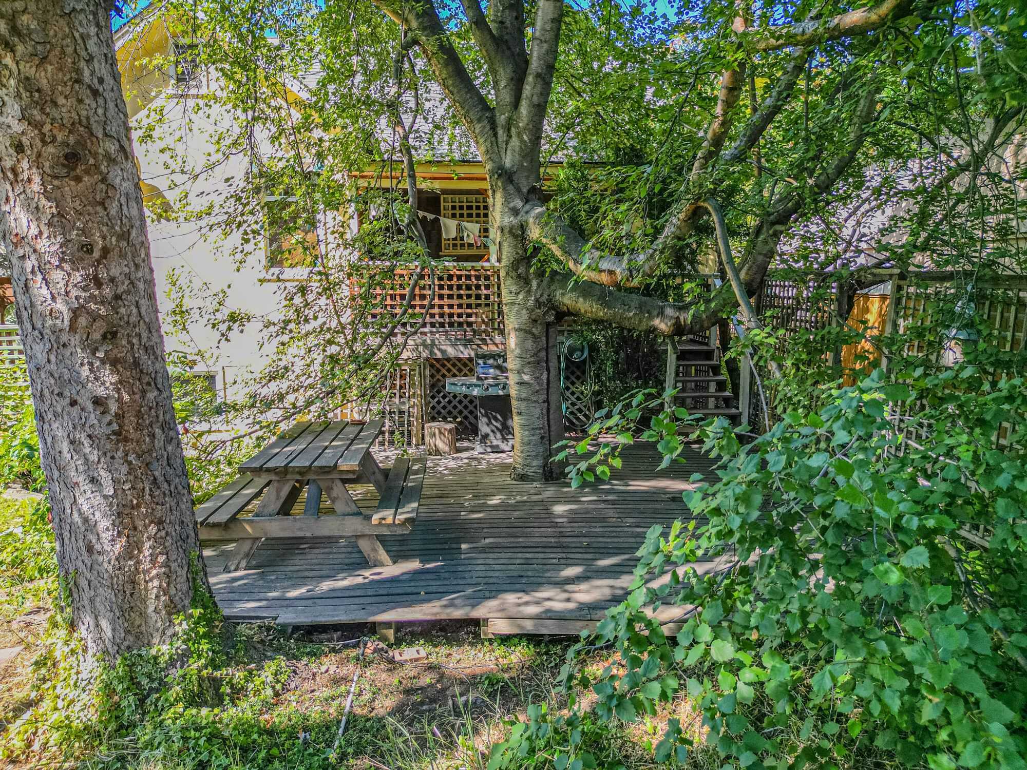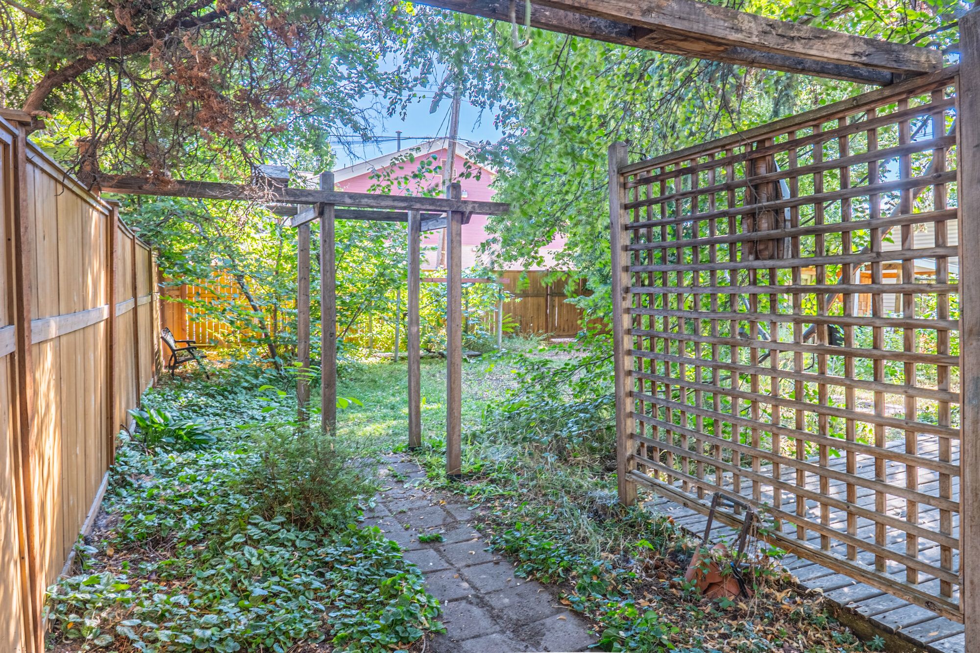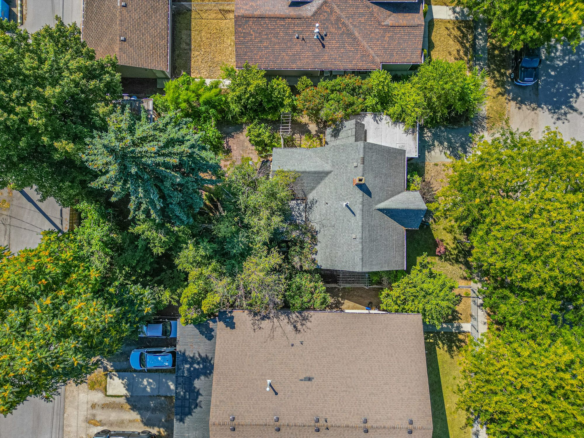 The upper level has an additional bedroom, a small home office or hobby room, and a full bathroom.  Angled ceilings in the upper level of the home add to the character of this Downtown Kelowna home. The lower level has ample storage room and could be converted into a suite.  Currently finished with a bedroom and large rec room with an unfinished workshop and cold storage.  The backyard is lush with vegetation featuring old lilac bushes, and 2 varieties of grape vines climbing the archways all surrounding the beautiful towering river birch tree.  This beautiful backyard was featured in a home and garden magazine, showcasing all the beauty this yard offers. This is a great opportunity to own a bit of Kelowna’s history, the possibilities are endless.