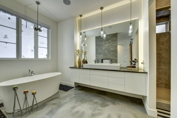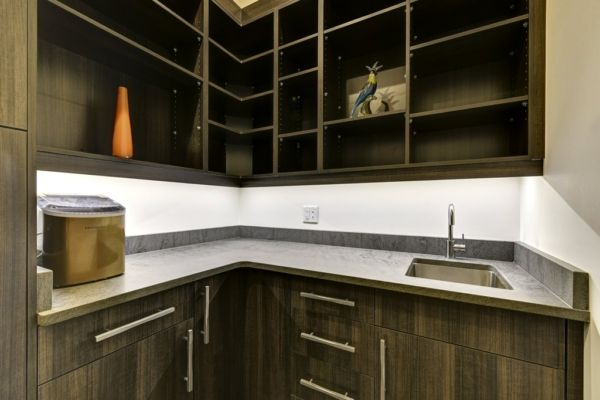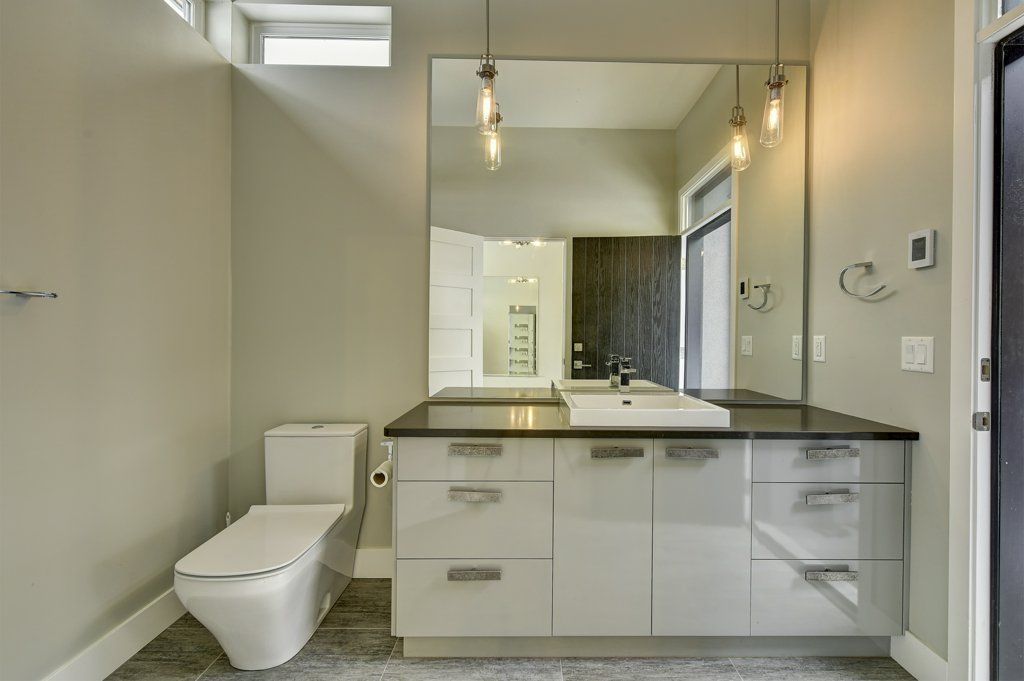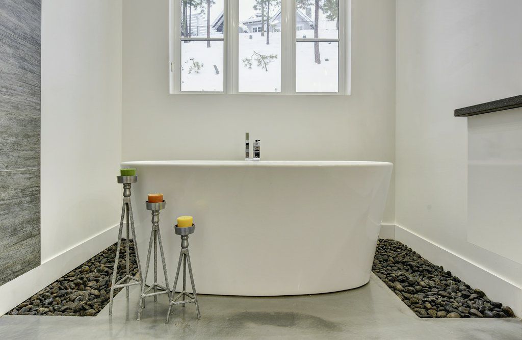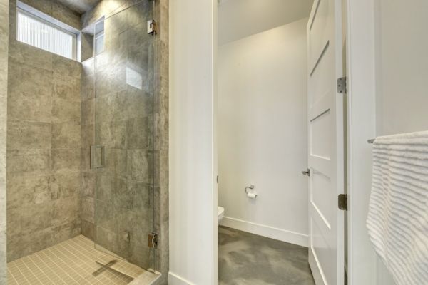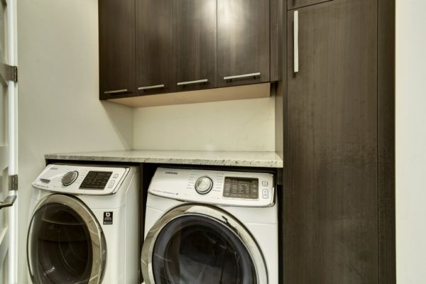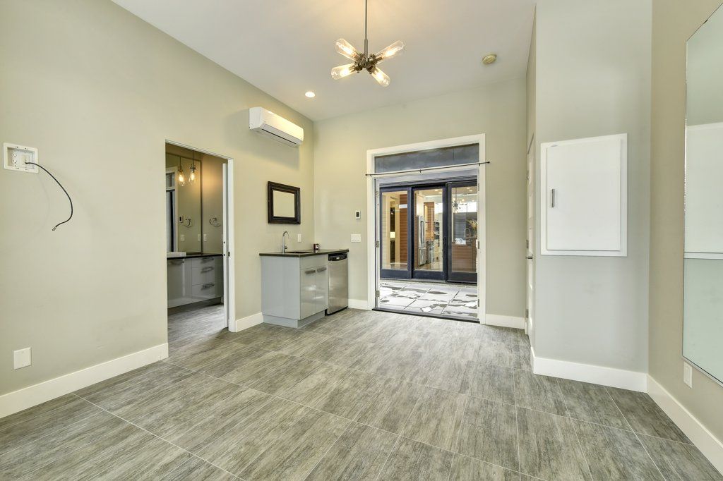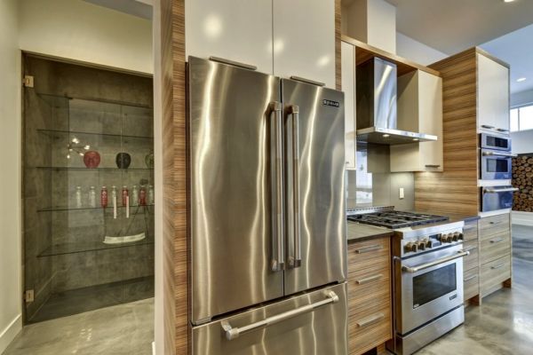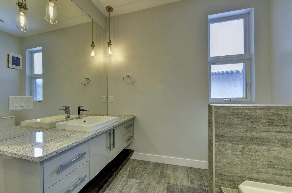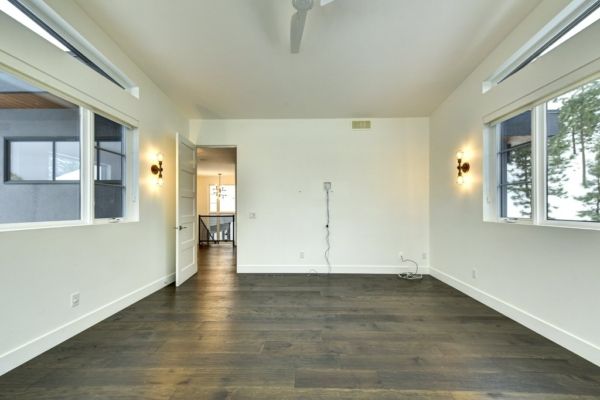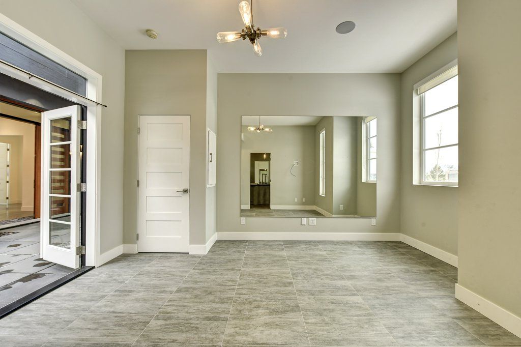 The main level of this luxury home opens to the spacious foyer with a show-stopping temperature-controlled wine cellar with a glass wall and cork detailing.  The one-of-a-kind gourmet kitchen features a connecting butler’s pantry and a climate-controlled glass cooler with concrete walls. The finishing details of the kitchen give a sleek modern look that features a live edge maple countertop, custom cabinetry, and Jen-Air stainless steel appliances. Walk to the sun-drenched living space with transom windows and a 12ft ceiling that compliments the stunning floor plan. Heated polished concrete floors run throughout this open-concept plan.  The Master Suite on the main floor is a true retreat with a double-sided fireplace, free-standing soaker tub & luxurious glass steam shower.