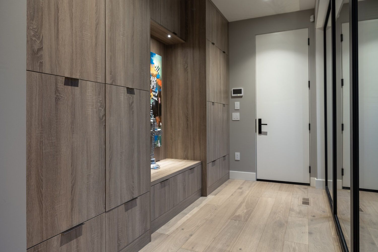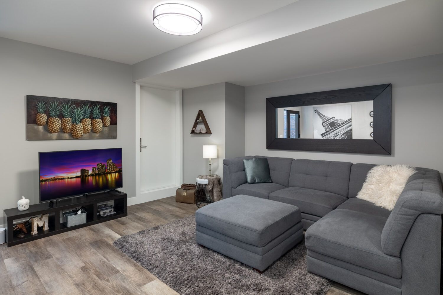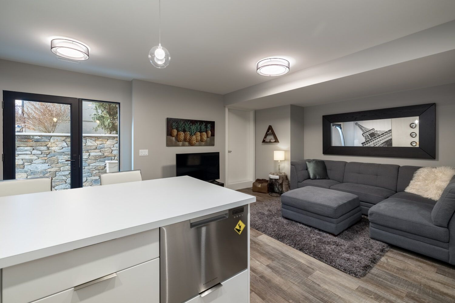 The lower level is divided between the main house and the guest/nanny suite. Currently set up as a home office, this award-winning space has so many possibilities. There is a space ready for your design ideas, a wine cellar, and room for a home theatre. The 591 sqft legal suite has a separate entrance and has been completely soundproofed with extra insulation, Donna Conna Board, and double drywall for extra sound privacy. This one-bedroom suite is complete with a full kitchen, large living room, full bathroom, and laundry. A preface space for the nanny, extended guests. family, student, or caregiver.