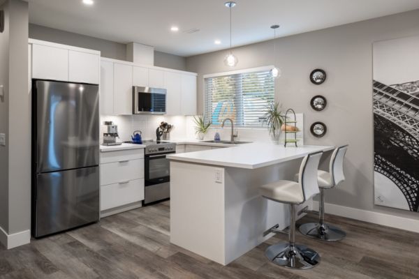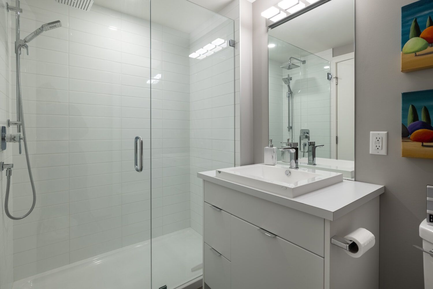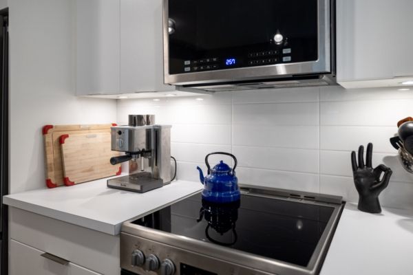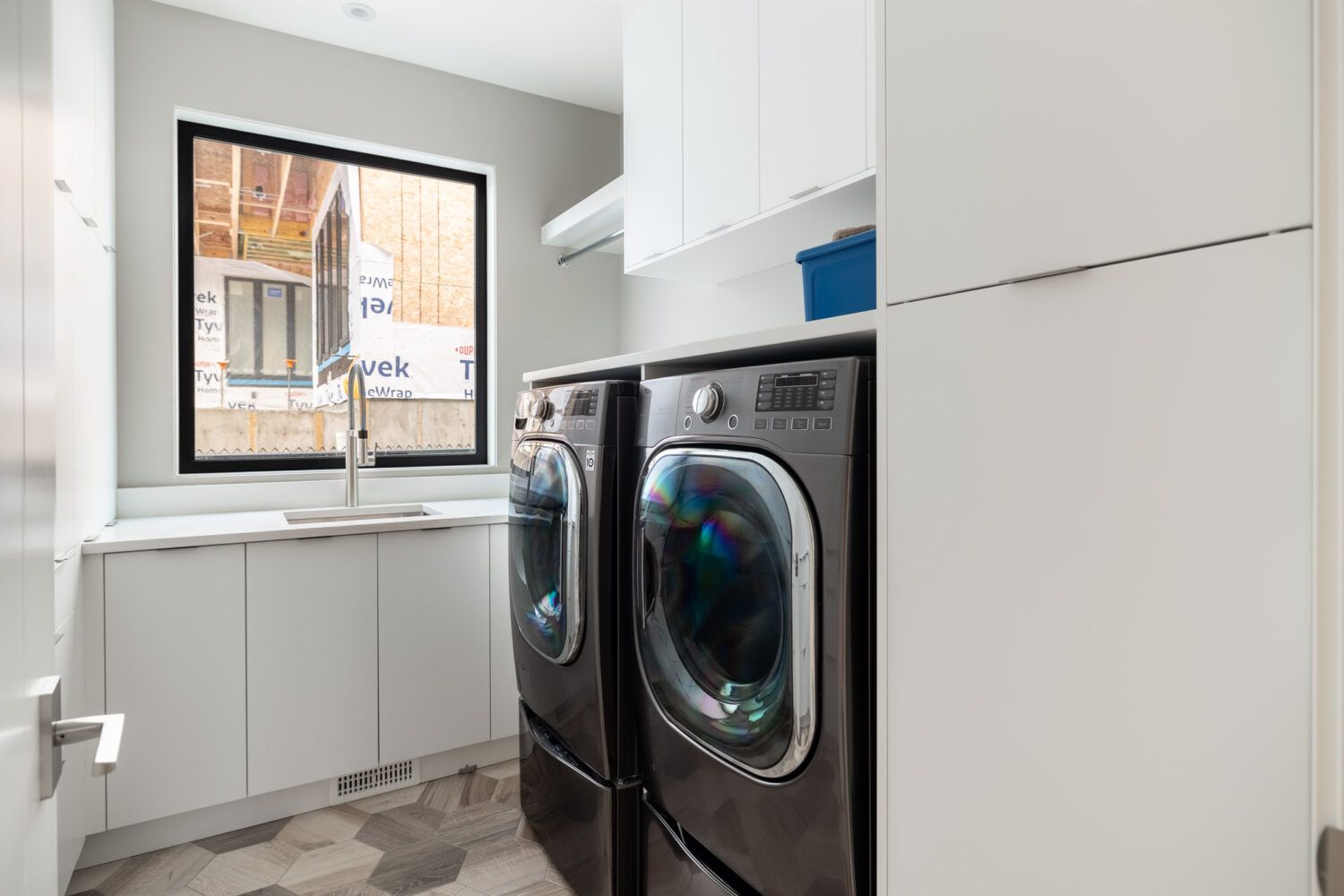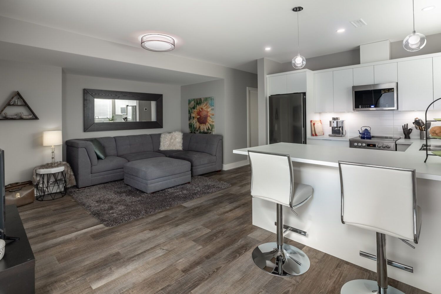 The lower level is divided between the main house and the guest/nanny suite. Currently set up as a home office, this award-winning space has so many possibilities. There is a space ready for your design ideas, a wine cellar, and room for a home theatre. The 591 sqft legal suite has a separate entrance and has been completely soundproofed with extra insulation, Donna Conna Board, and double drywall for extra sound privacy. This one-bedroom suite is complete with a full kitchen, large living room, full bathroom, and laundry. A preface space for the nanny, extended guests. family, student, or caregiver.