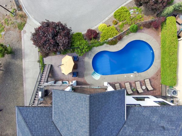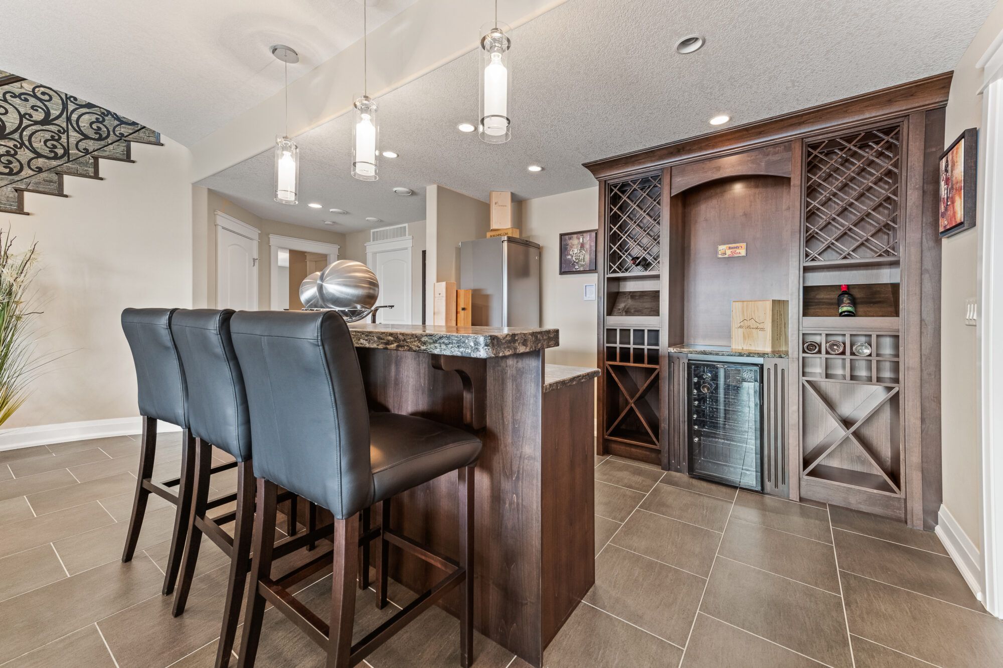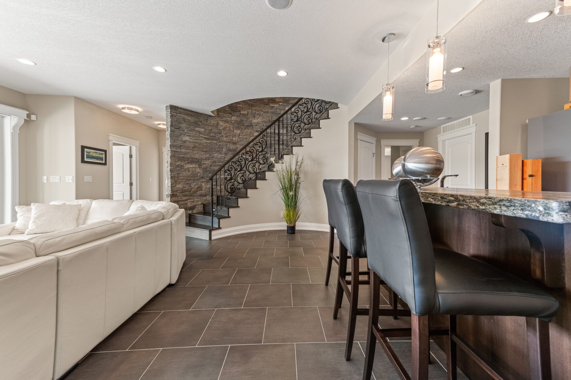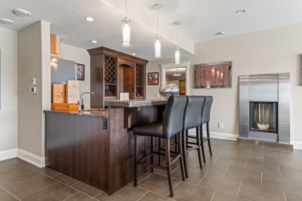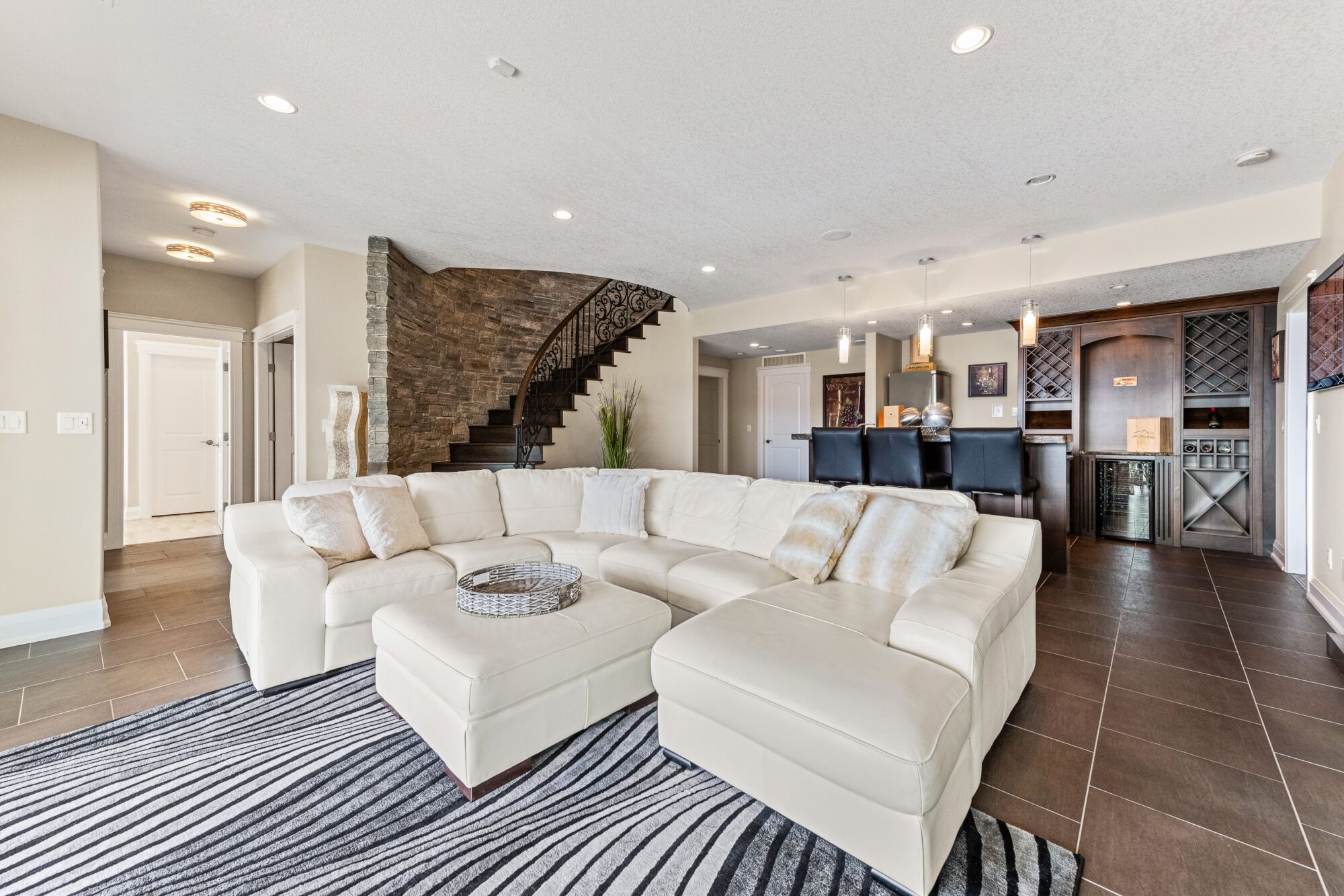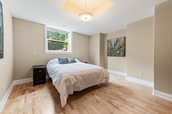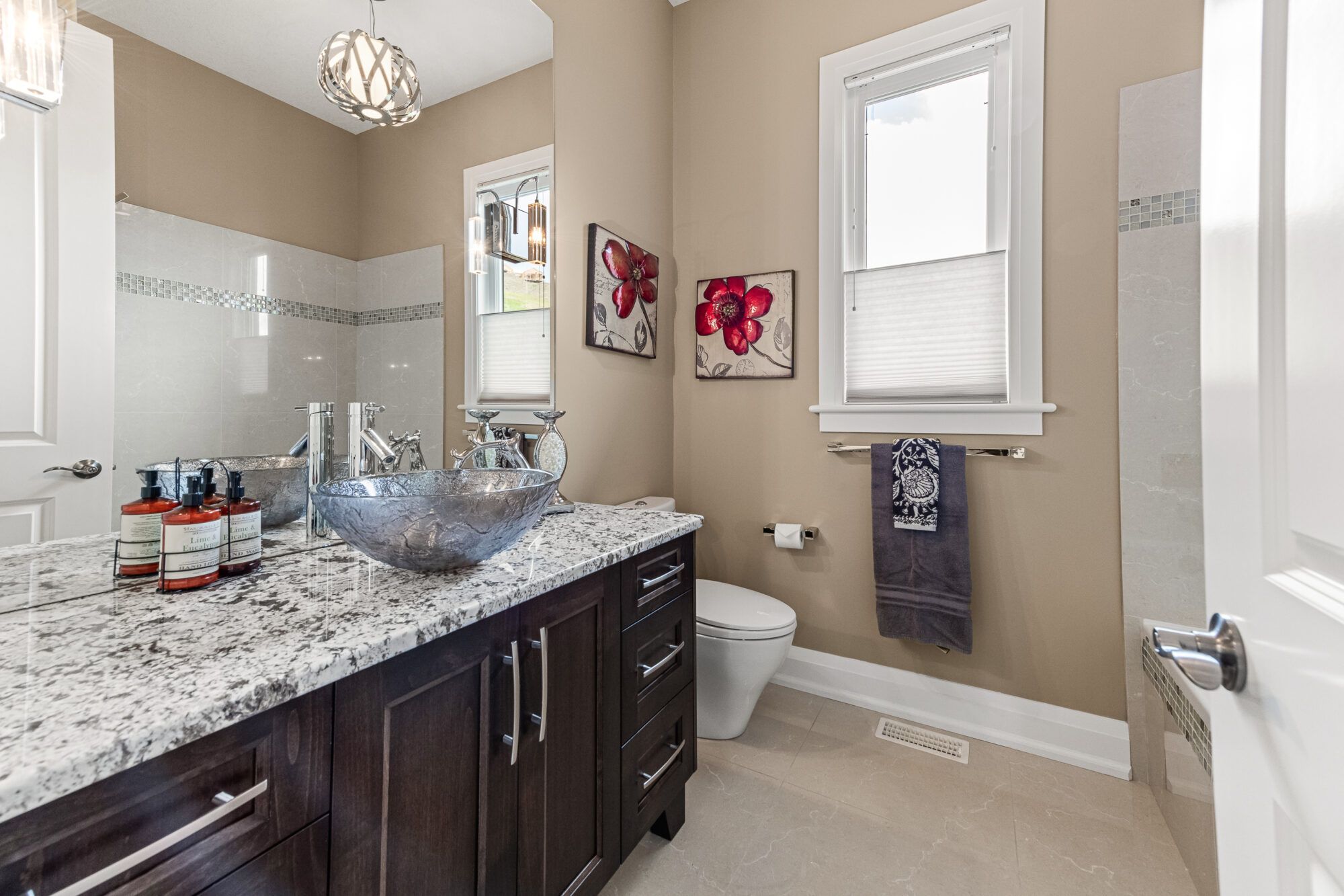 The lower walk-out level leads to a delightful pool deck, complete with a heated saltwater pool, sunken hot tub, and expansive patio area for basking in the sunshine.