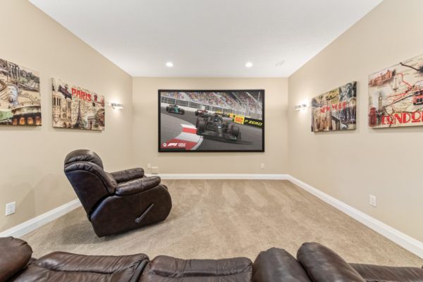 Descending the rounded staircase to the lower level, you’ll discover an expansive living area centered around a large family room and a stylish wet bar with built-in cabinetry, all overlooking the inviting pool deck. This level also encompasses three sizable bedrooms, two full bathrooms, a second laundry room, and a media room. Providing access to the lower level triple car garage, this space includes a deep bay, ideal for storing a boat.