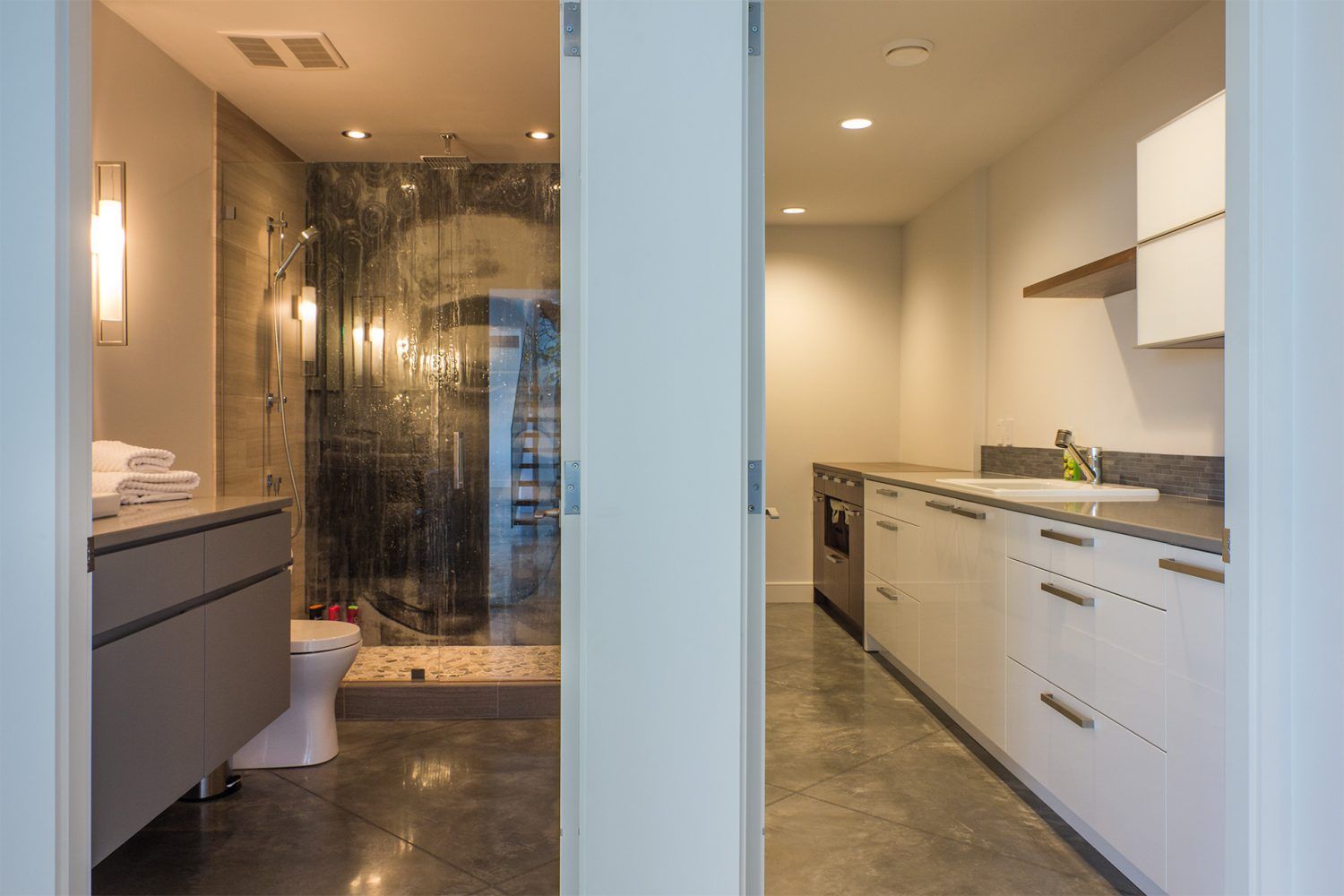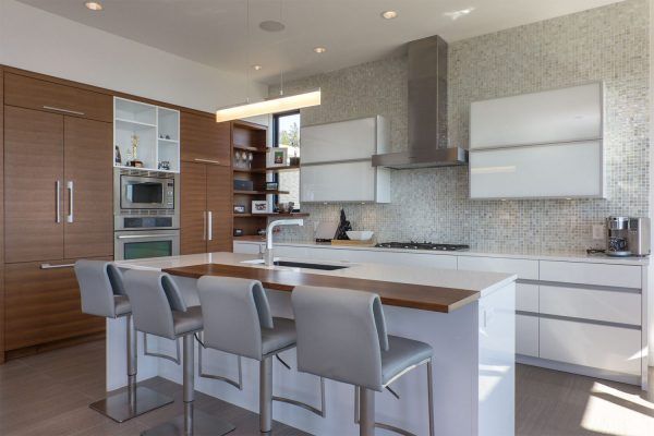 Upon entering the main level, you are greeted by a spacious formal dining room, a living room adorned with picture windows, and a kitchen nook that provides stunning views of the lake. The kitchen is equipped with luxurious wooden cabinetry, state-of-the-art appliances, and Quartz countertops. Adjacent to the kitchen, there’s a generously sized prep pantry, a powder room, the first of two laundry rooms, and access to the upper-level triple-car garage.