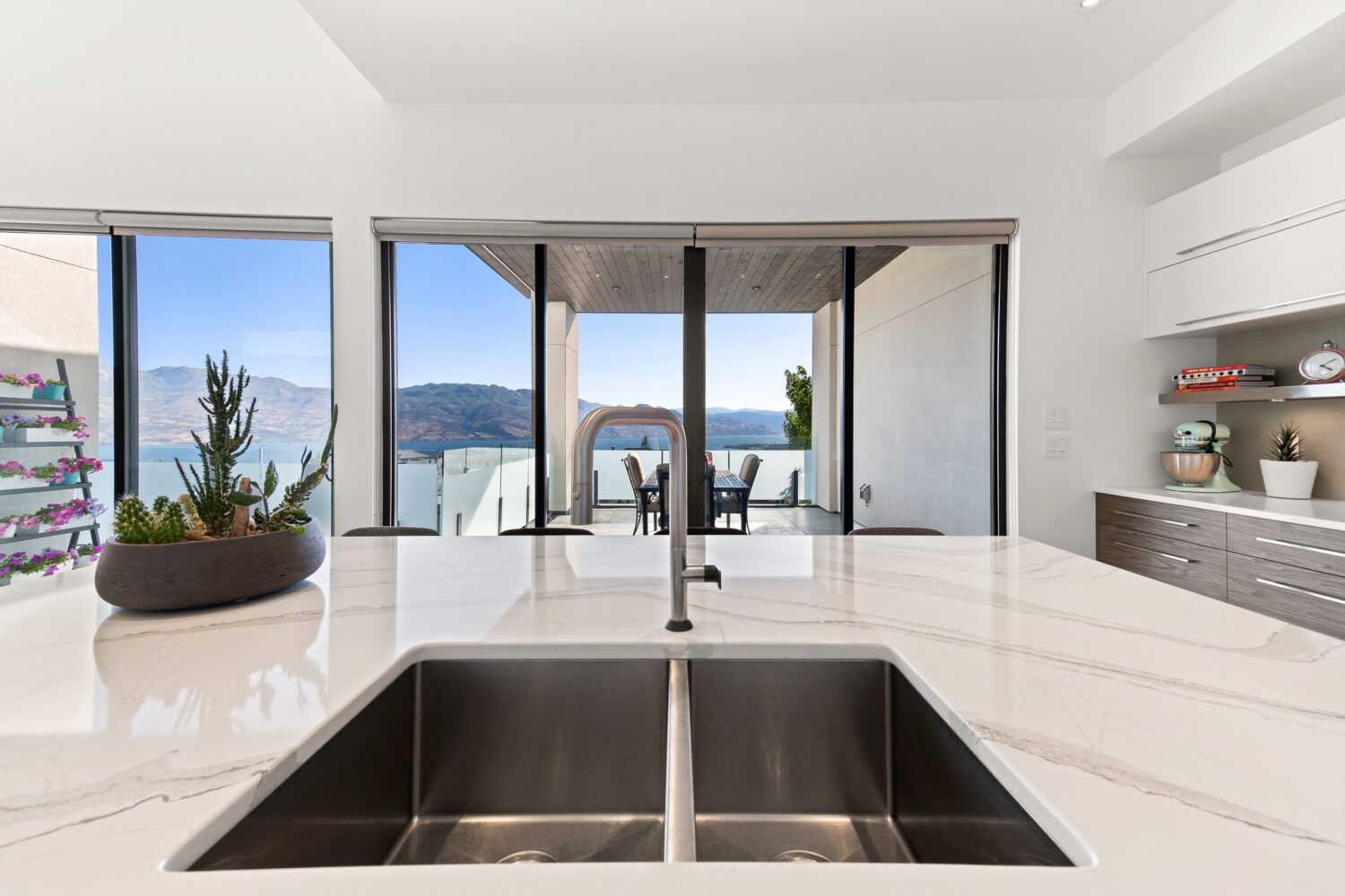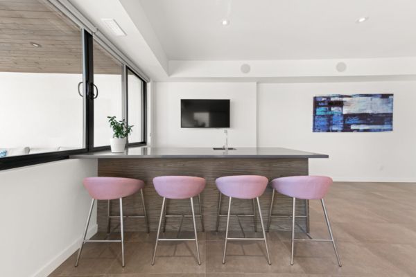 The sleek modern finishings were conceptualized by award-winning designers Lynn Archibald and Carolyn Walsh. This dynamic duo created a masterpiece with the perfect combination of materials to complement the space and highlight the beautiful setting.