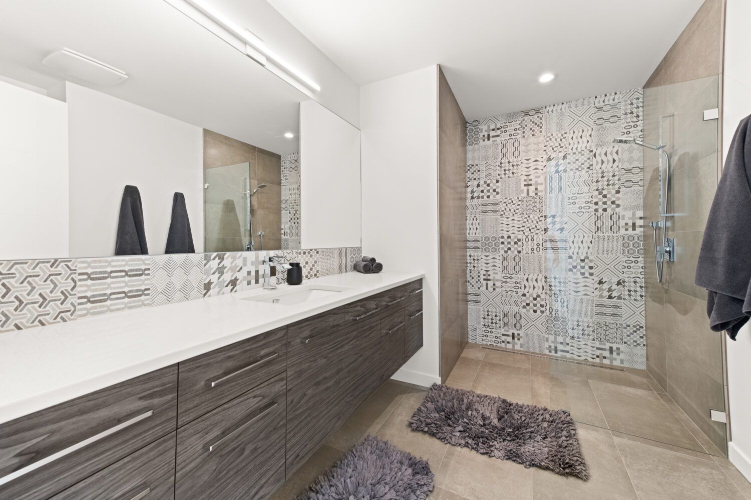 - floor-to-ceiling tile surround
