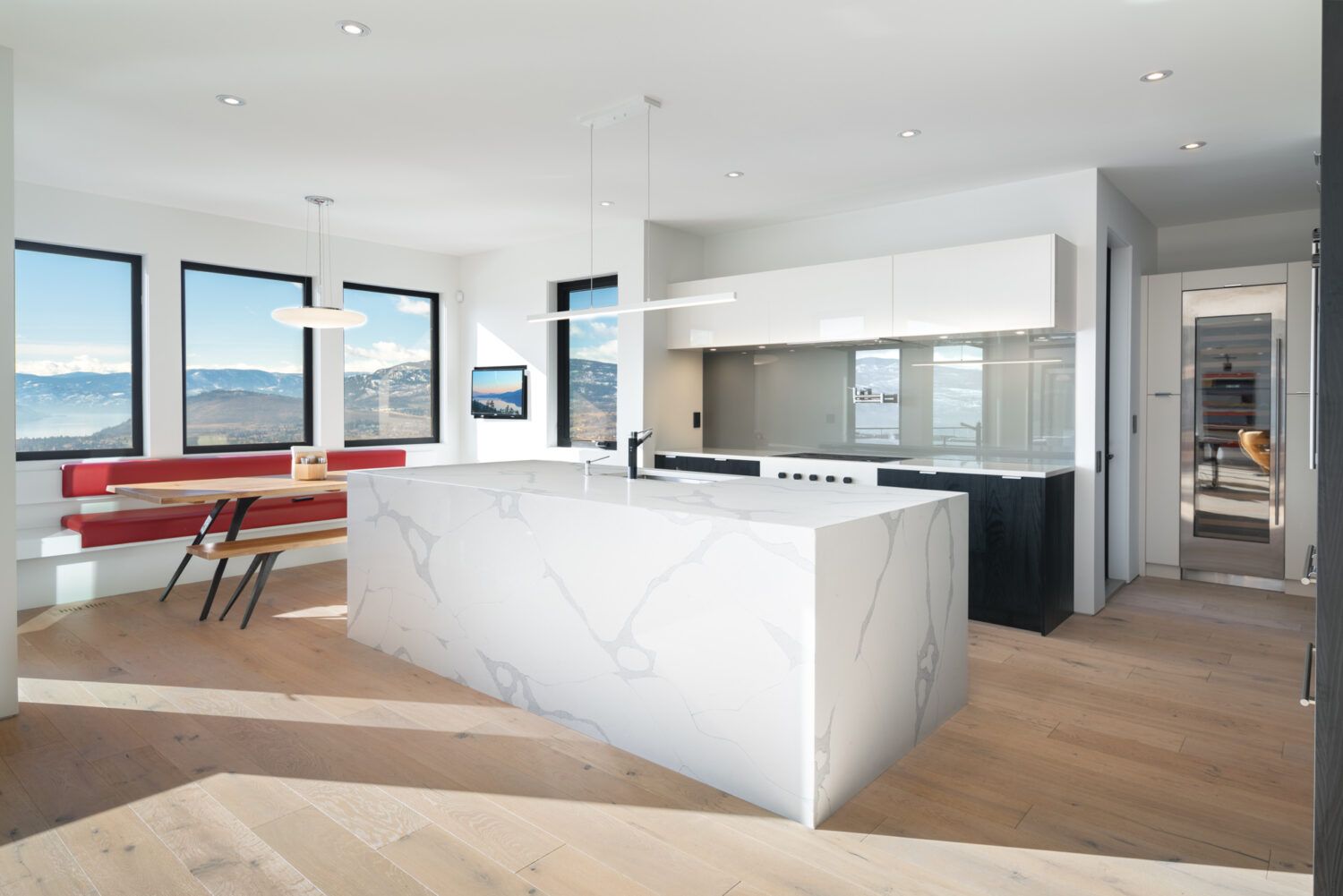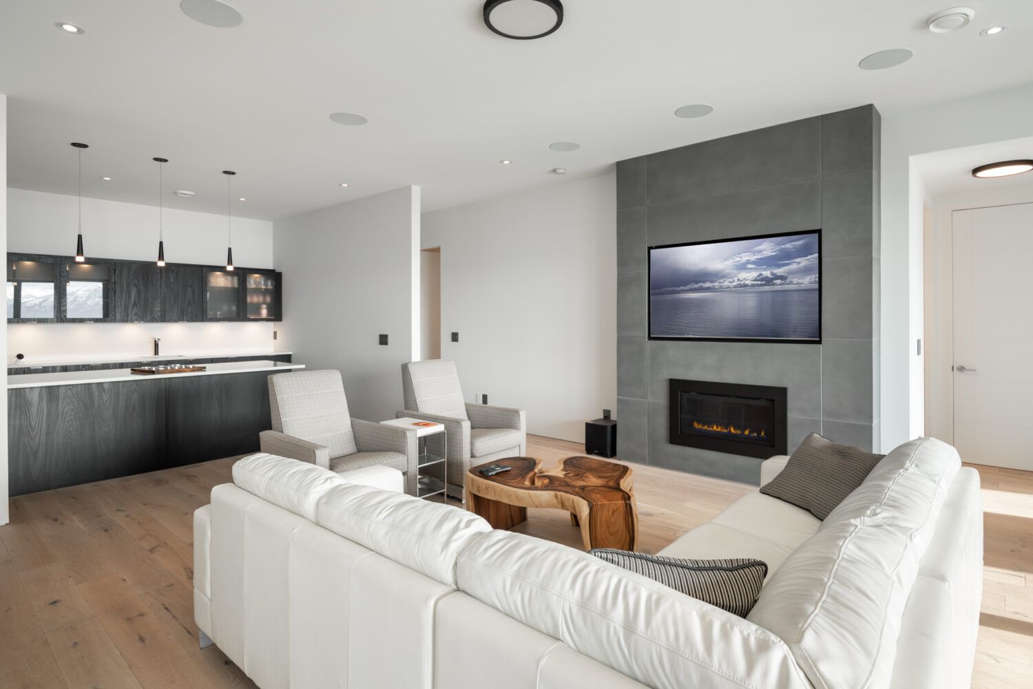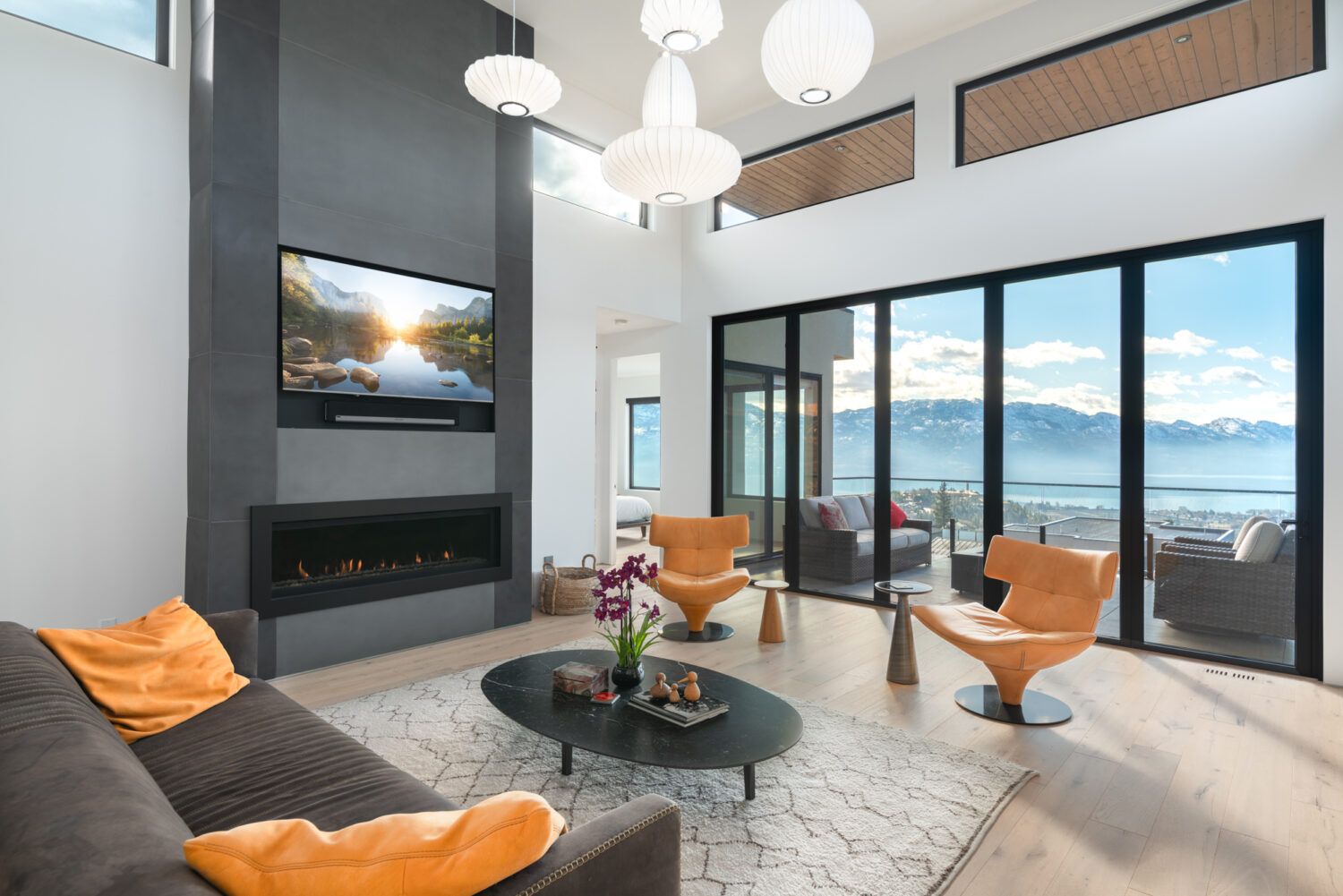 Custom built by Lenarcic Brothers, the connection between layout, design, and finishings makes this home one of the most spectacular Lake view homes in Lakeview Heights. The grand living room features 15 ft ceilings framed by windows with a wall of nano doors that fold open to the upper deck extending your living space. This space offers ample sunlight throughout the day and flows perfectly into the dining area boasting expansive views.