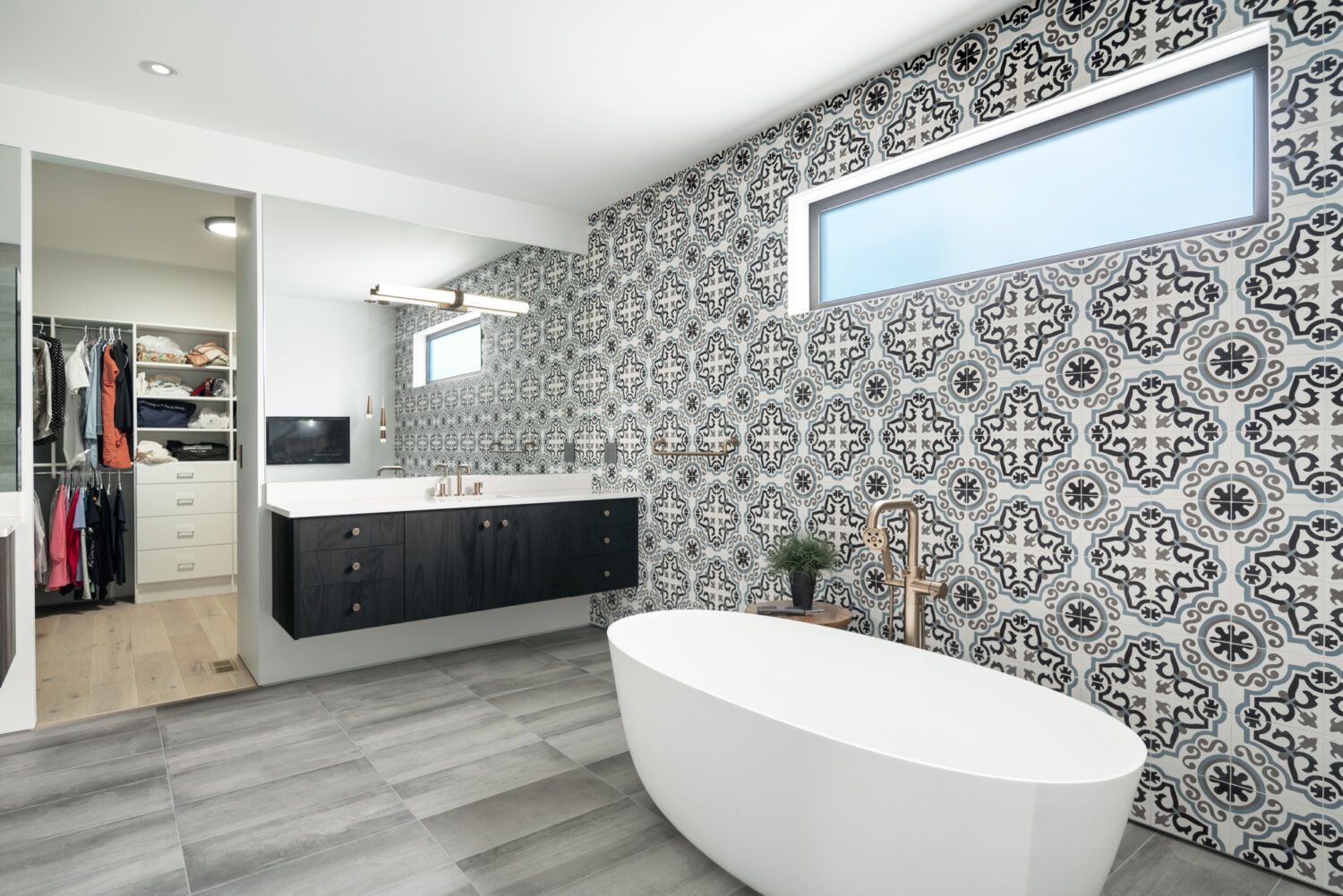 The main floor master suite has a spacious ensuite with an oversized tub, tiled feature wall, built-in television, and a walk-in closet with private laundry. This level is complete with a large office and a full bathroom with a glass stand-alone shower.