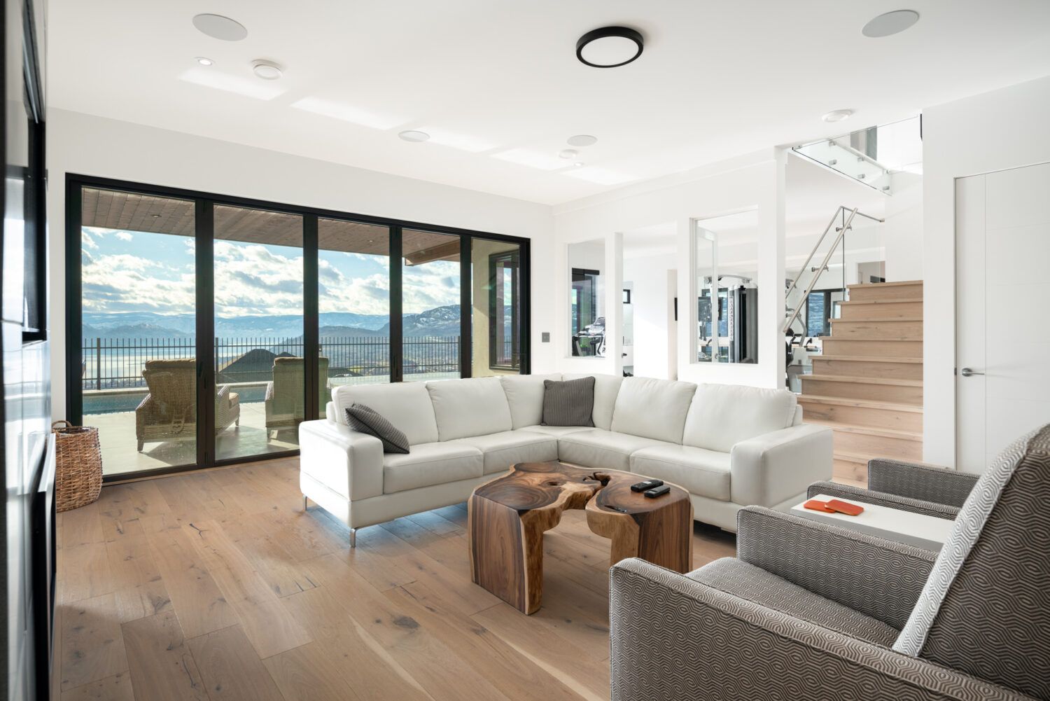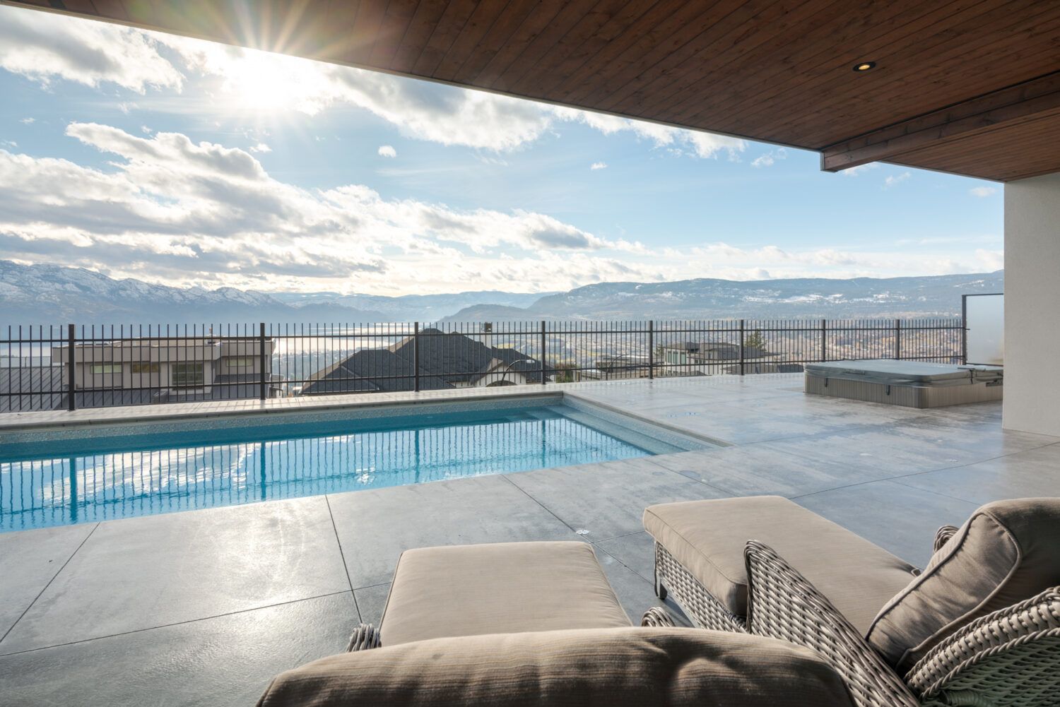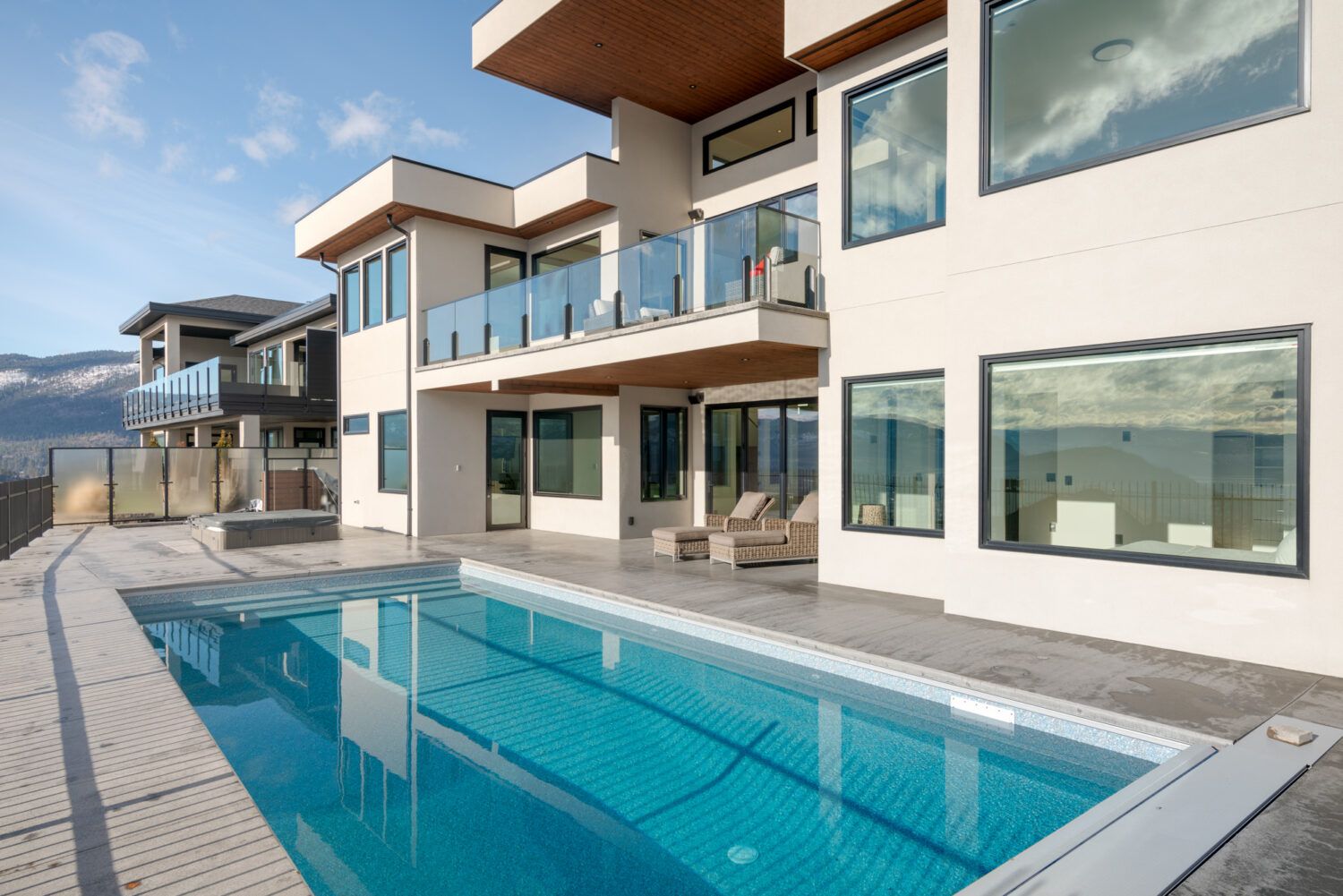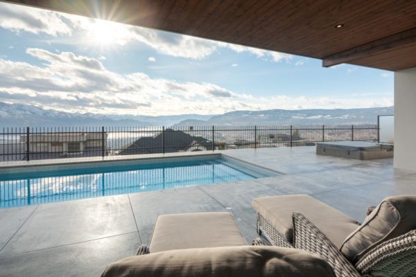 The lower level has a beautiful open-concept living room with 20 Ft nano doors that replicate the upstairs living room. This level also includes 2 additional bedrooms with Jack and Jill bathroom, second laundry, full wet bar, home gym, and studio with a large storage closet and double sink. There is an additional 550 sq. ft of unfinished space under the garage perfect for a home theatre. Lenarcic Brothers do not disappoint with a pool deck overlooking the vast views of Lake Okanagan and features an in-ground UV pool with an electric cover, a sunken hot tub, and a covered seating area. Additional features of this home include; shadow line wall finishing throughout, 8ft interior doors, touchless toilets, built-in sound, privacy glass garage doors, Legrand Adorne lights and electrical outlets, and top-of-the-line designer lighting.