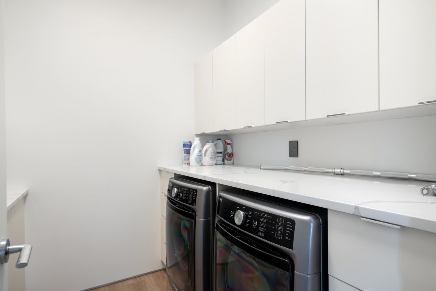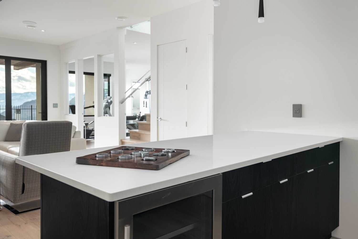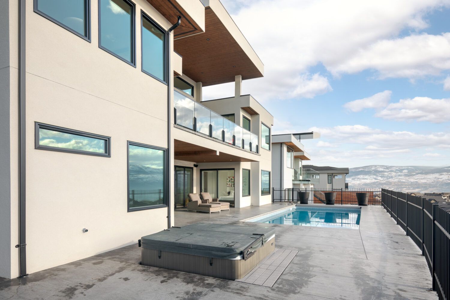 The lower level has a beautiful open-concept living room with 20 Ft nano doors that replicate the upstairs living room. This level also includes 2 additional bedrooms with Jack and Jill bathroom, second laundry, full wet bar, home gym, and studio with a large storage closet and double sink. There is an additional 550 sq. ft of unfinished space under the garage perfect for a home theatre. Lenarcic Brothers do not disappoint with a pool deck overlooking the vast views of Lake Okanagan and features an in-ground UV pool with an electric cover, a sunken hot tub, and a covered seating area. Additional features of this home include; shadow line wall finishing throughout, 8ft interior doors, touchless toilets, built-in sound, privacy glass garage doors, Legrand Adorne lights and electrical outlets, and top-of-the-line designer lighting.