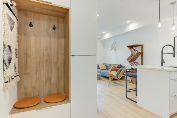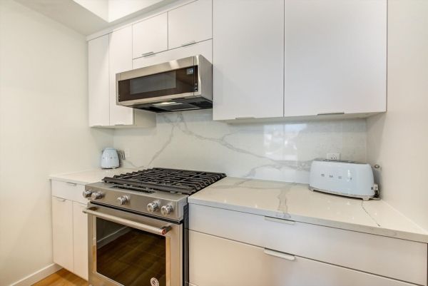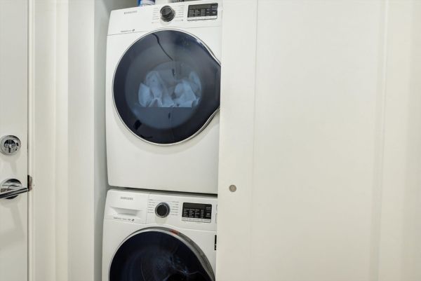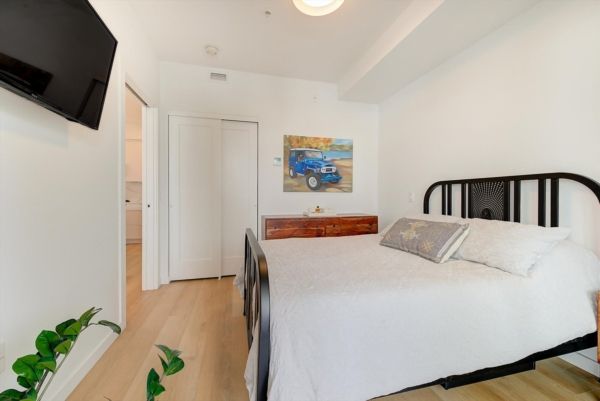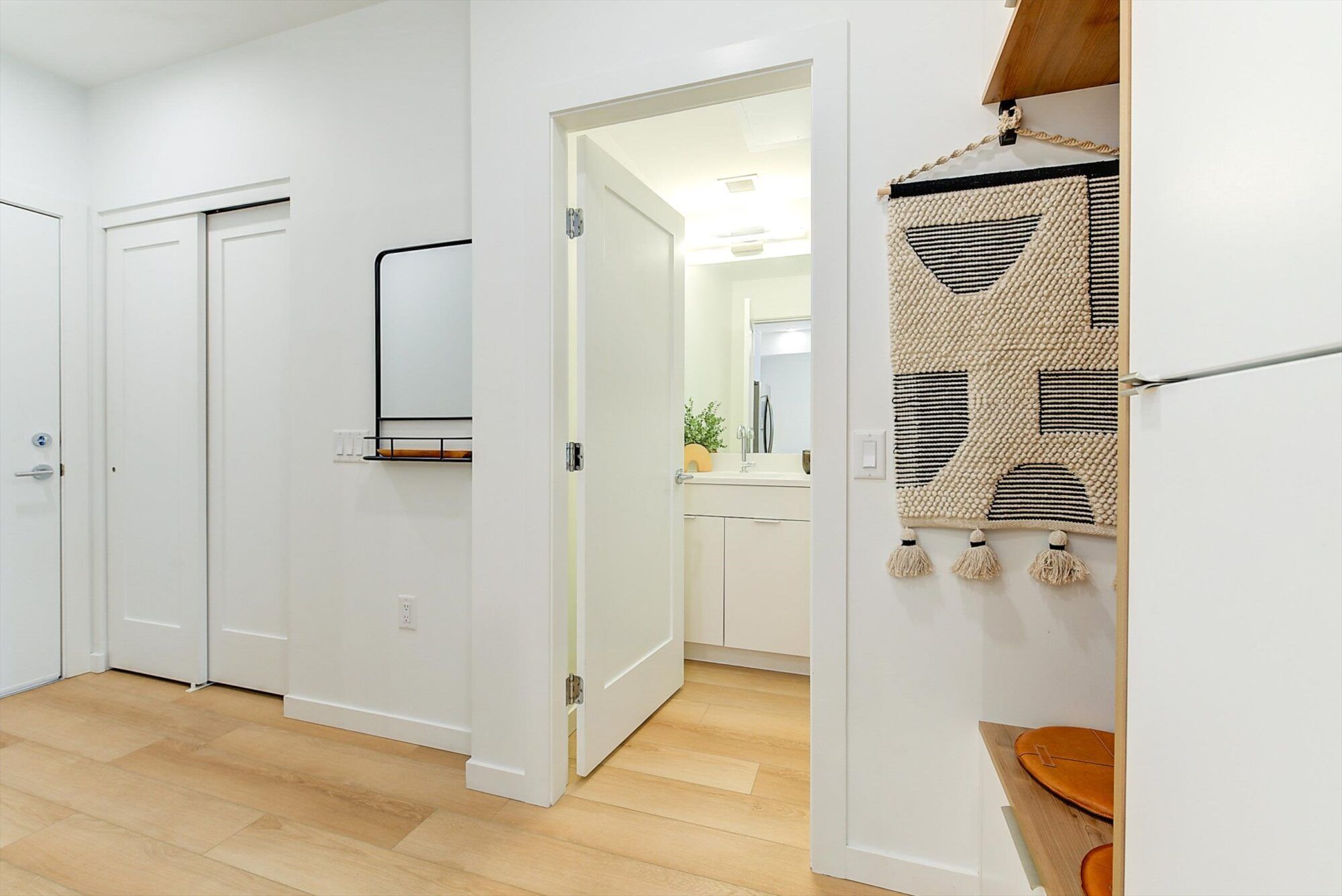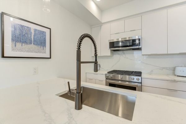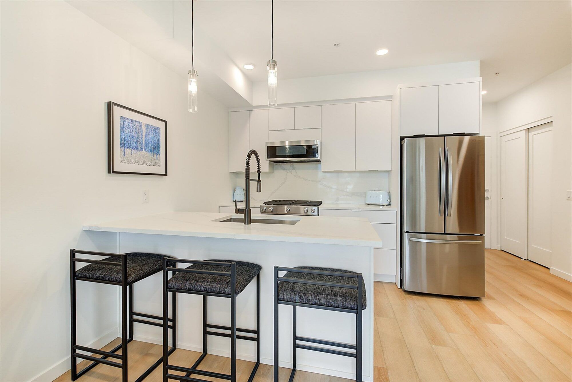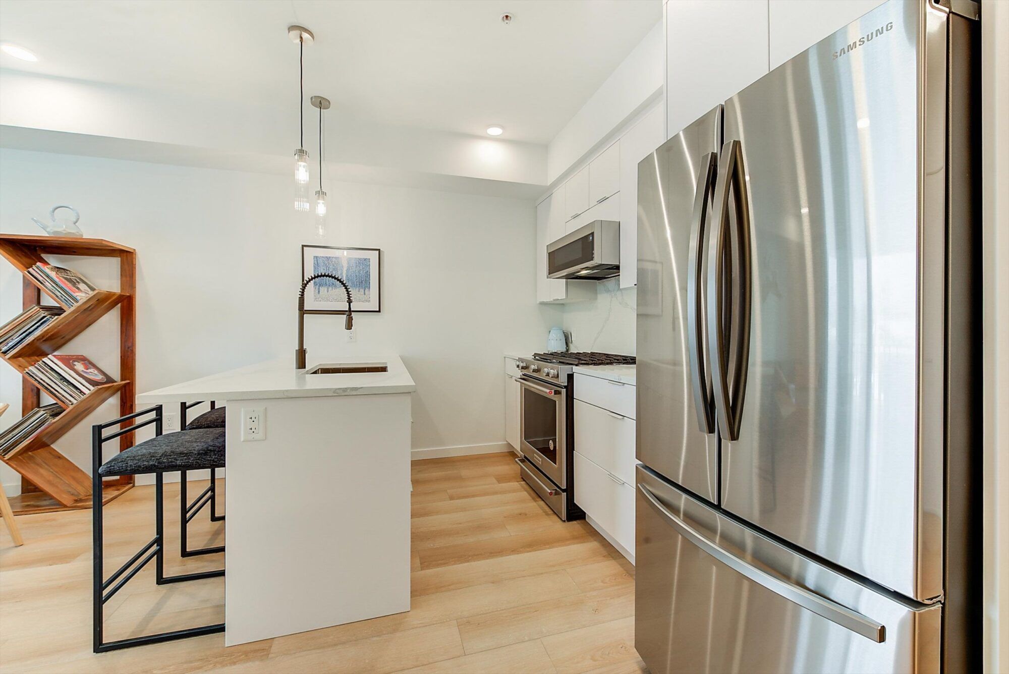 Built-in 2021, the unit offers 2 parking stalls and is strategically laid out to maximize space and features a large outdoor patio area accessed from both the living room and bedroom. Enjoy the Okanagan sun, lounging on the large deck with a BBQ hookup perfect for entertaining with plenty of room for a patio table and chairs. The unit is tastefully finished with vinyl flooring, white cabinetry, quartz countertops, and a custom front entry cabinet and coat rack. The kitchen is equipped with a 5-burner gas stove, a built-in microwave, and plenty of cabinet and counter space. The bedroom has a large sliding glass door to the patio and the unit is complete with a full bathroom and laundry.