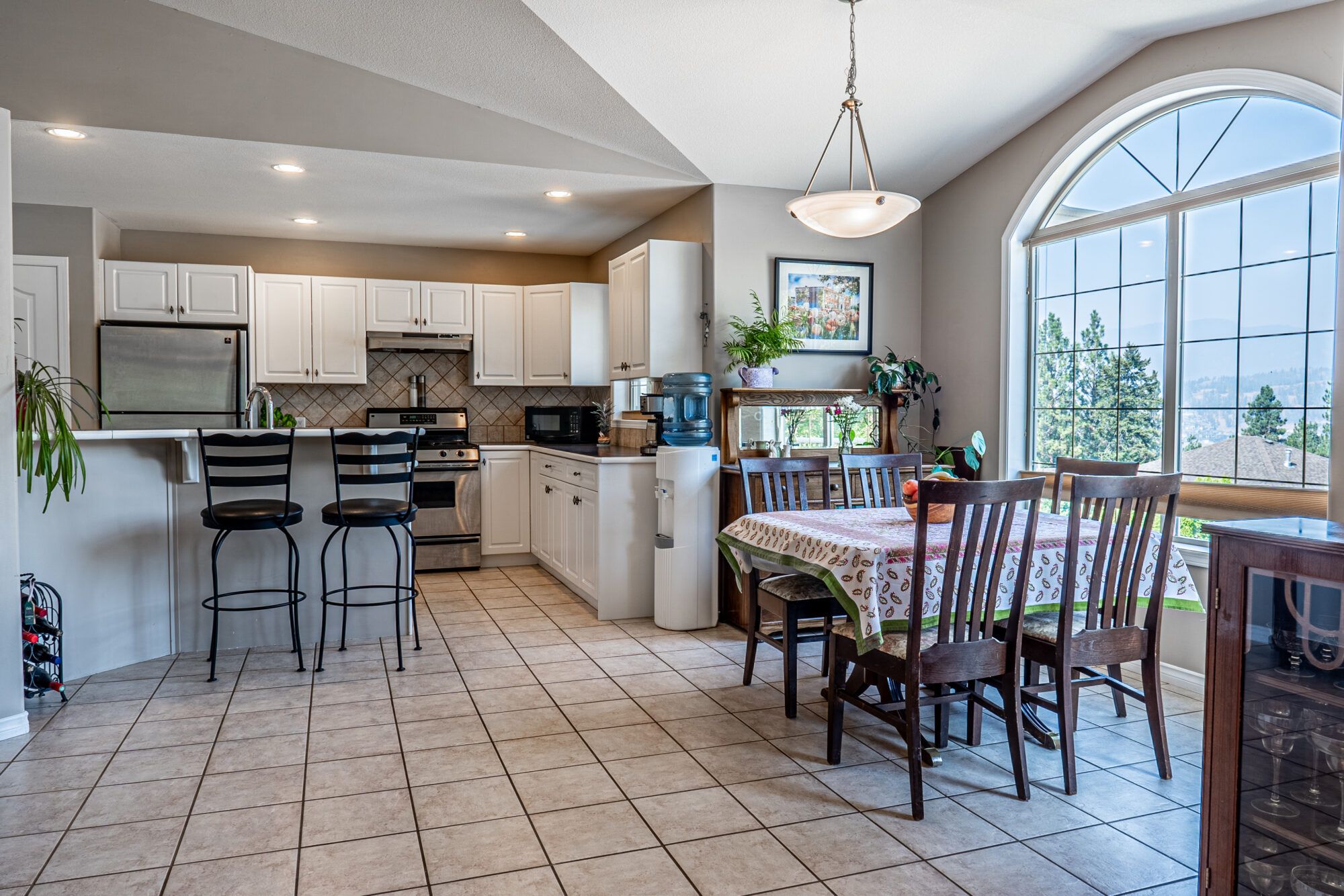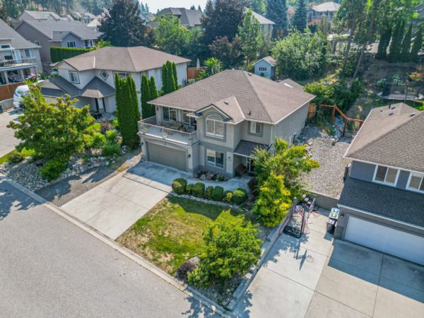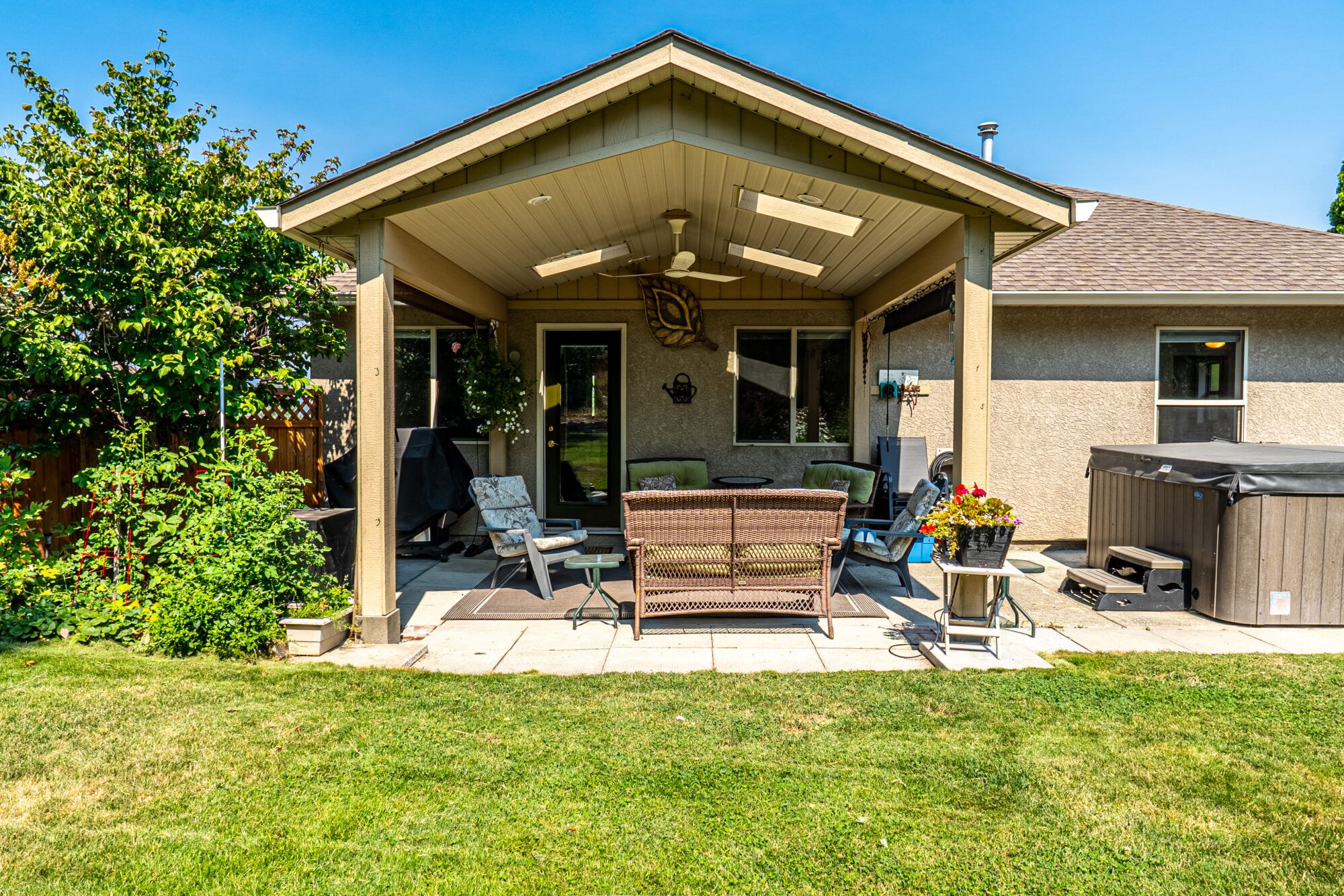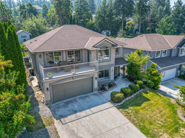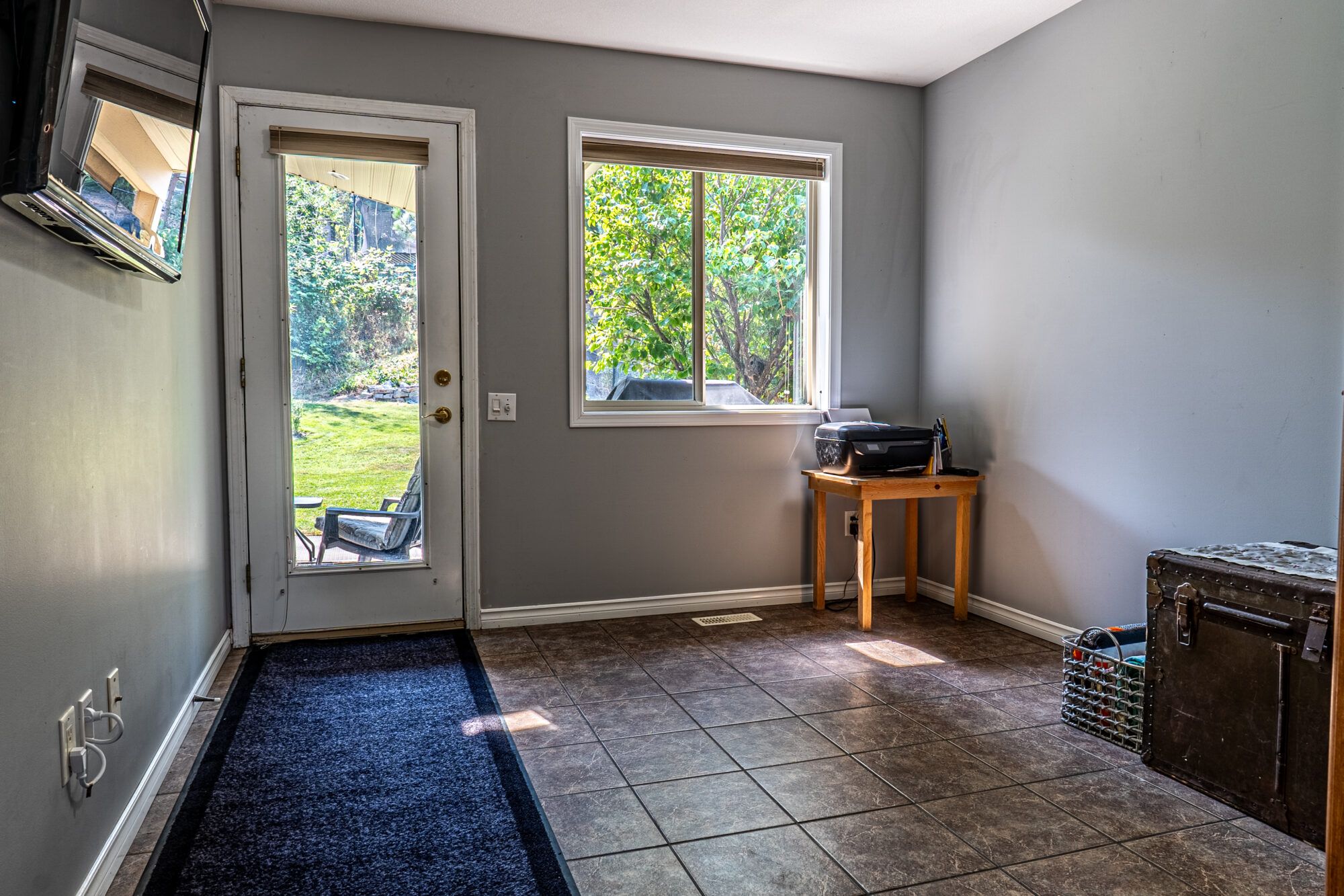 The allure of the main level extends beyond its interiors, flowing into the expansive backyard. Recently enhanced by the addition of a covered patio, this outdoor space becomes an extension of your living area. It provides the ideal setting to savor the balmy Okanagan summers, creating cherished moments with friends and family against the backdrop of a thriving garden.