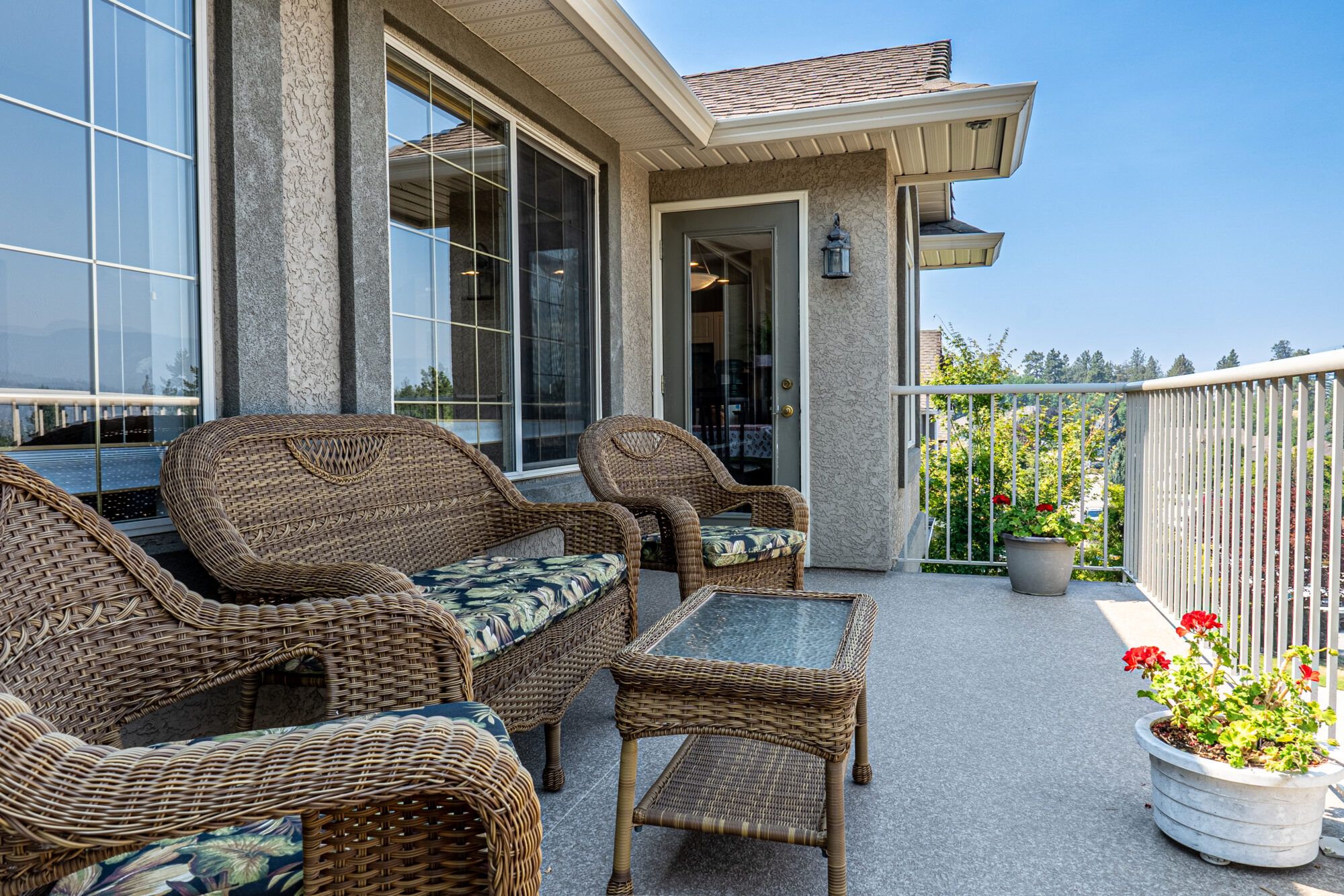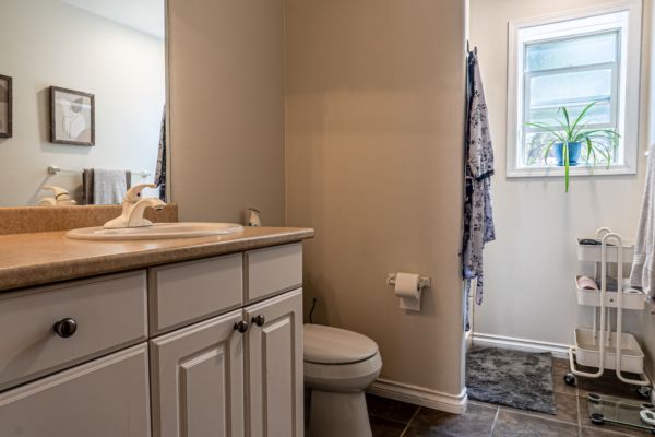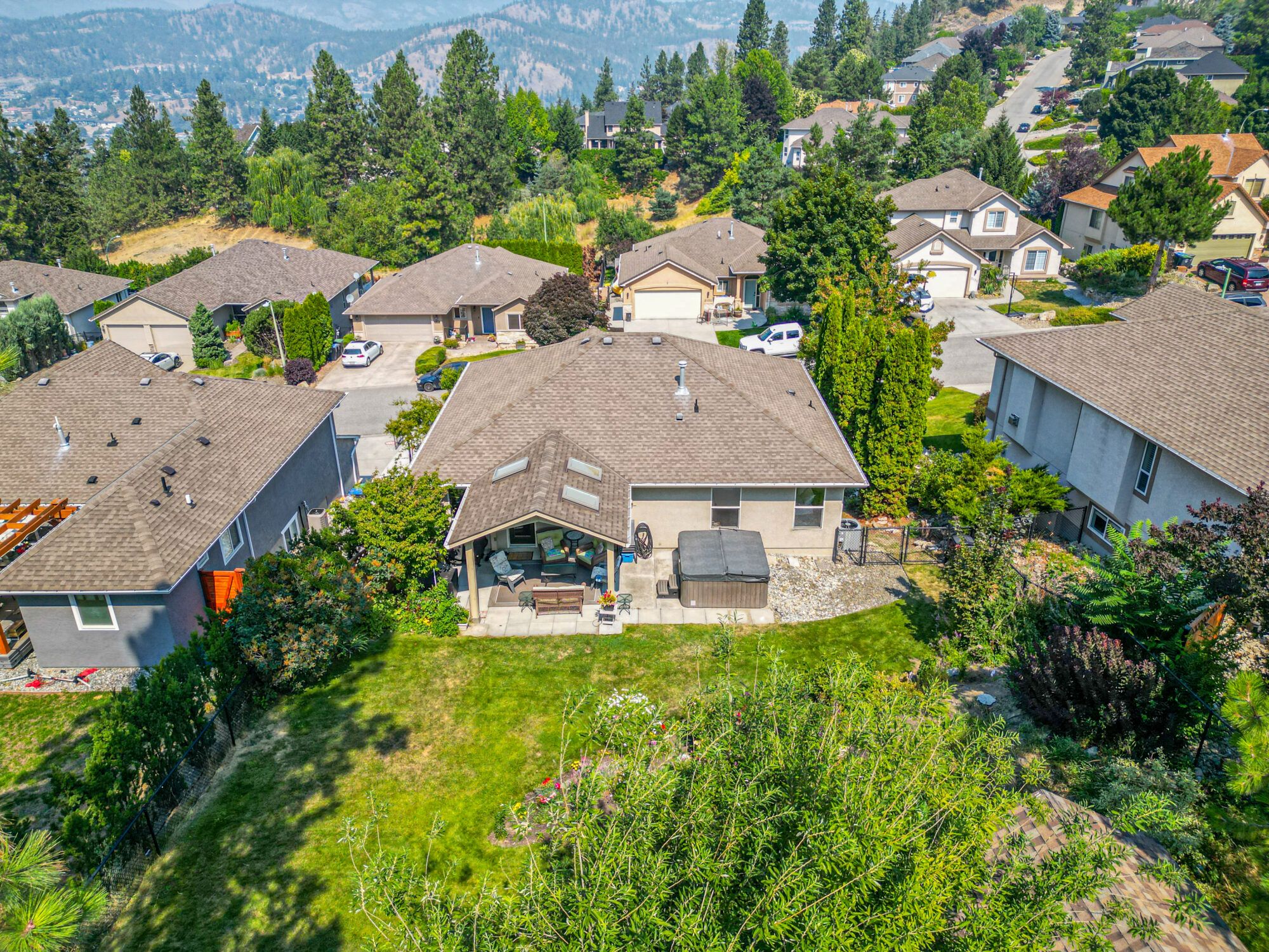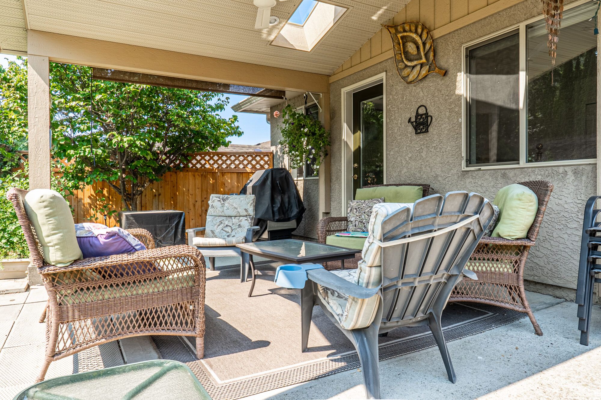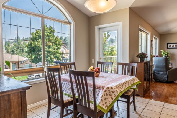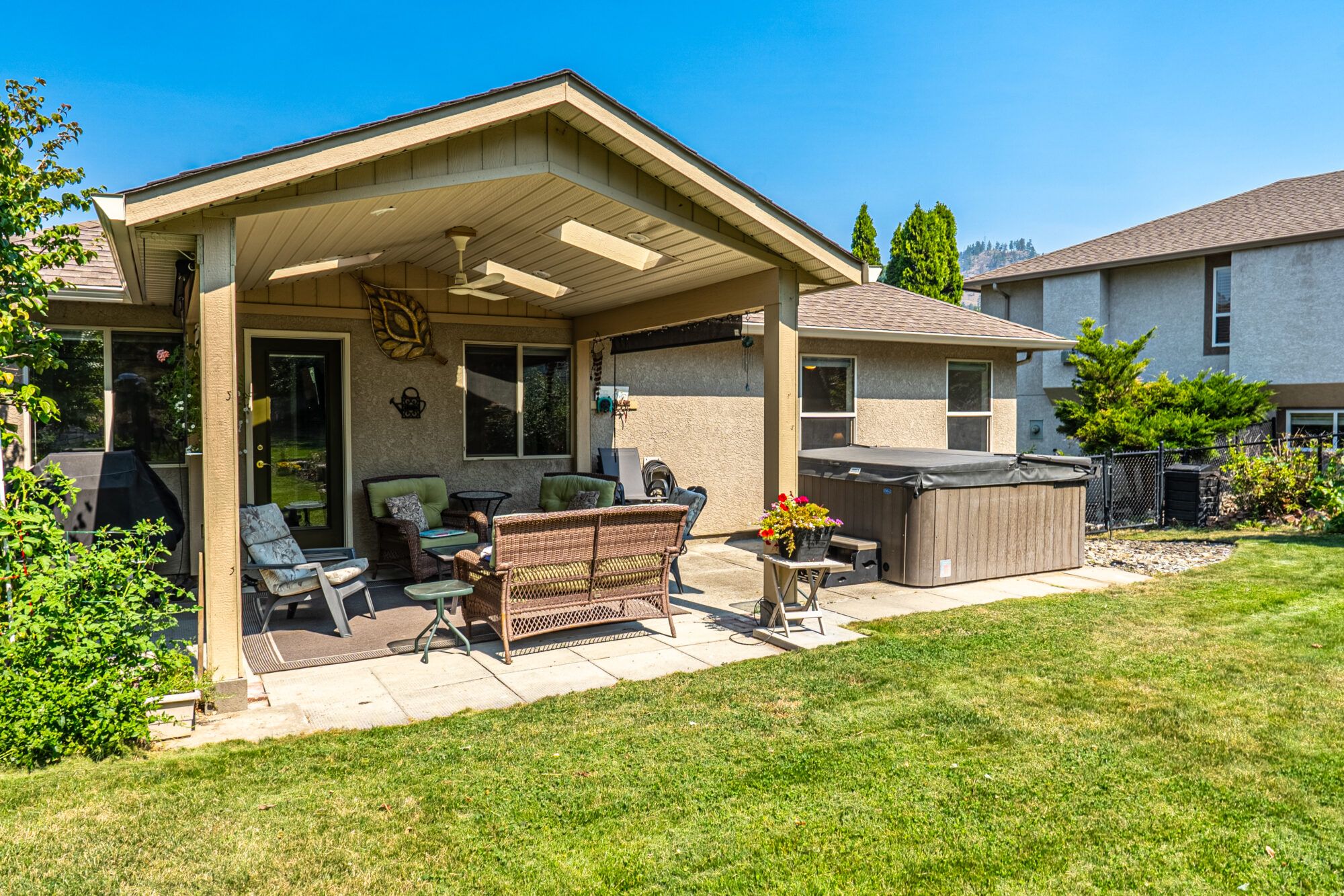 The allure of the main level extends beyond its interiors, flowing into the expansive backyard. Recently enhanced by the addition of a covered patio, this outdoor space becomes an extension of your living area. It provides the ideal setting to savor the balmy Okanagan summers, creating cherished moments with friends and family against the backdrop of a thriving garden.