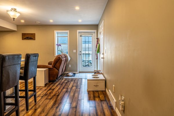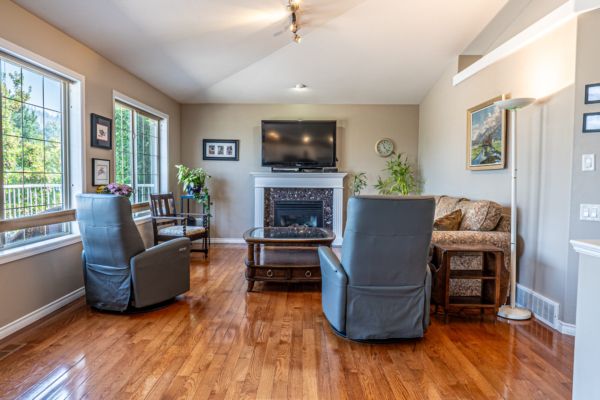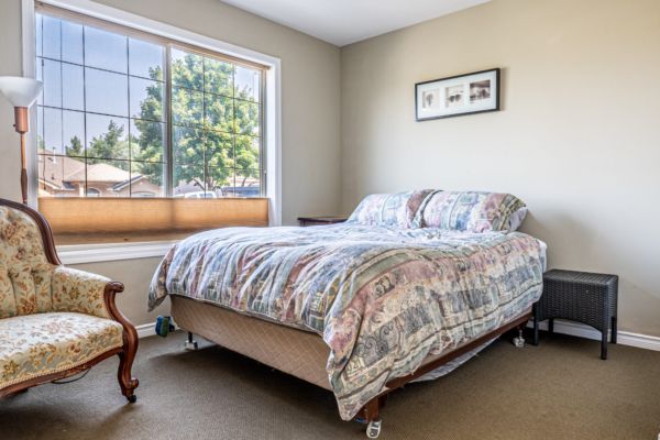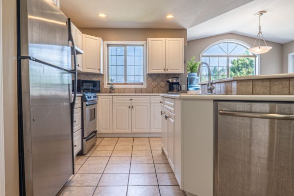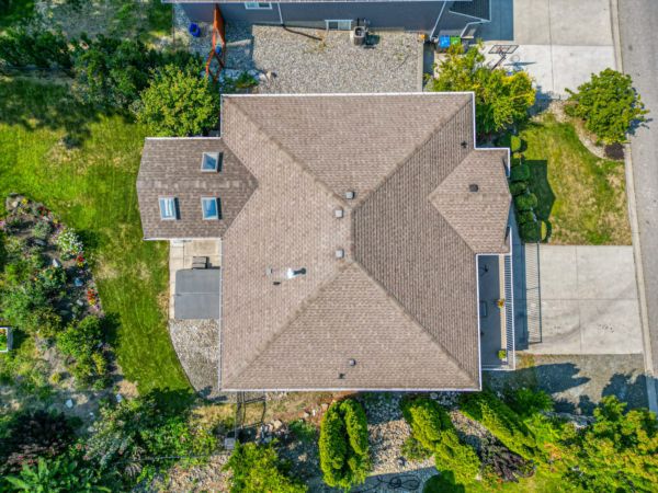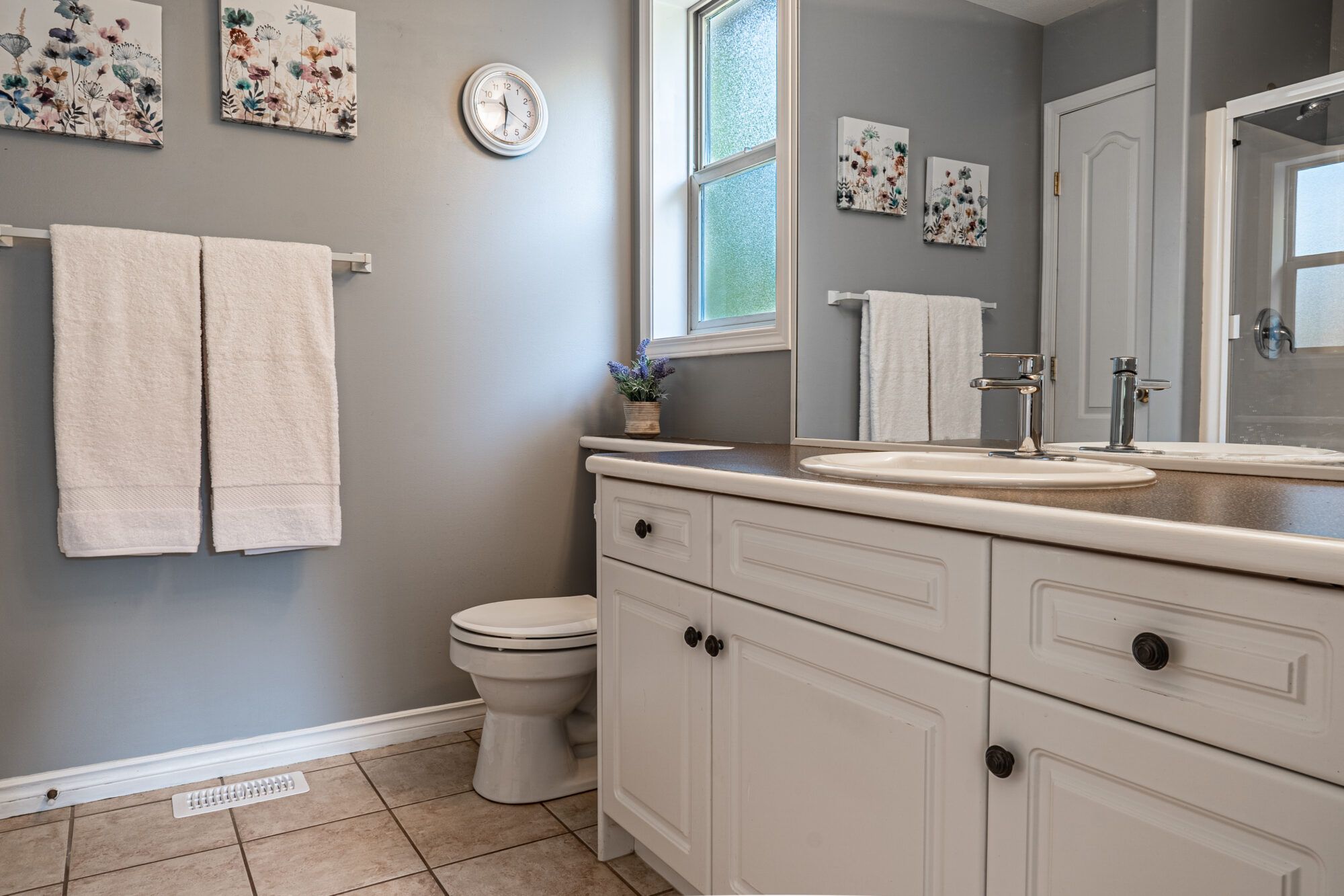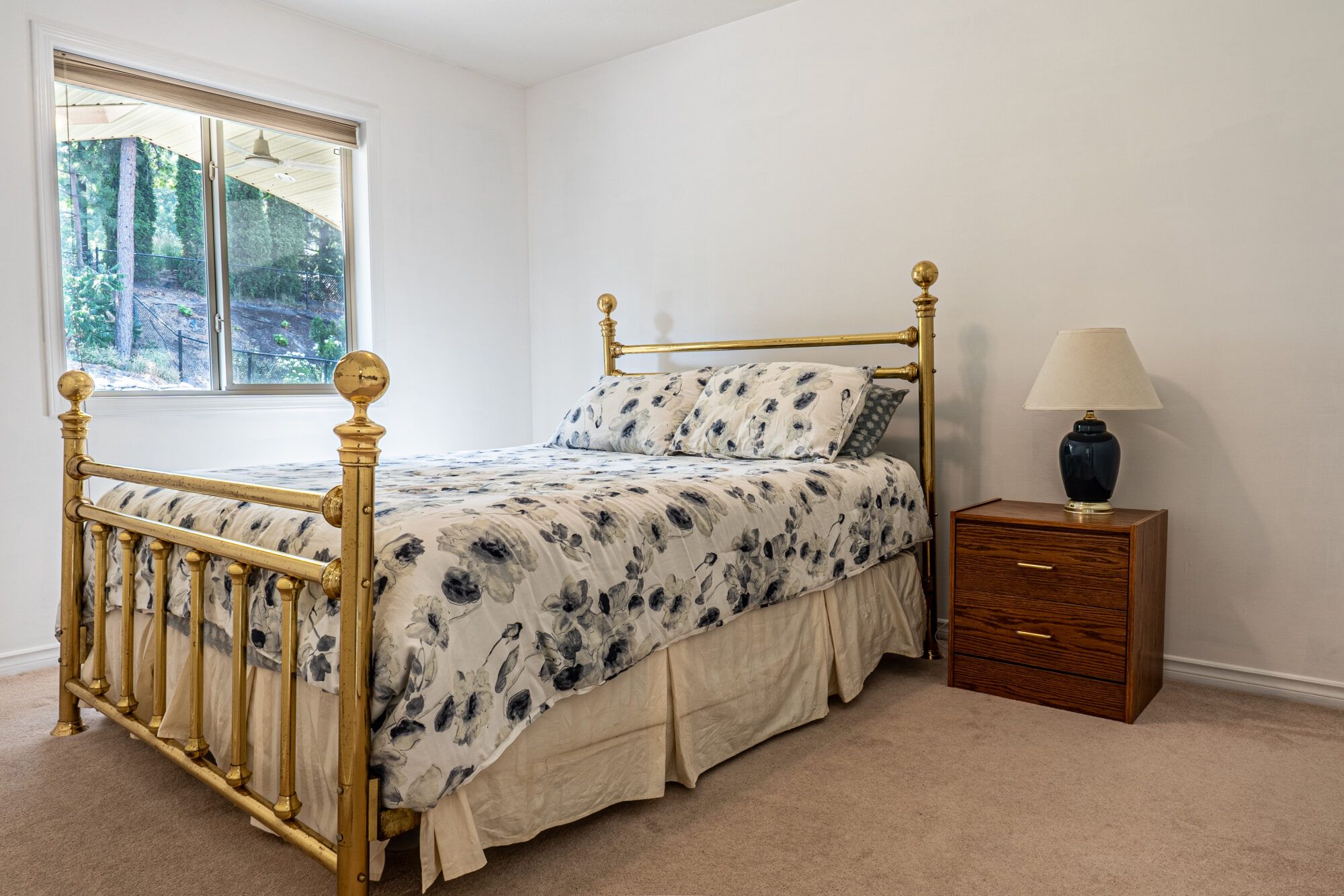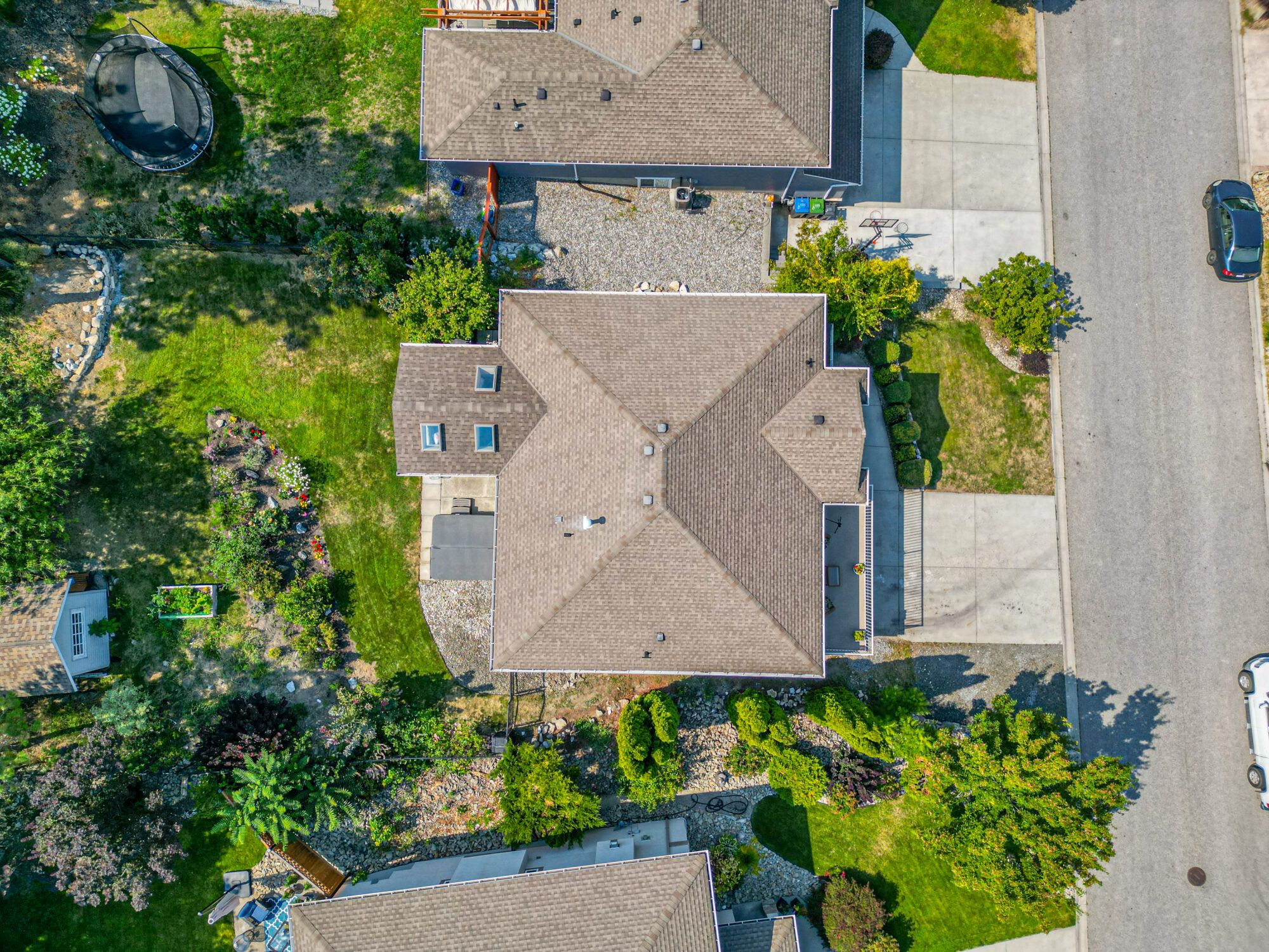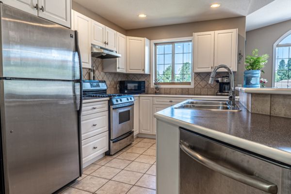 The allure of the main level extends beyond its interiors, flowing into the expansive backyard. Recently enhanced by the addition of a covered patio, this outdoor space becomes an extension of your living area. It provides the ideal setting to savor the balmy Okanagan summers, creating cherished moments with friends and family against the backdrop of a thriving garden.