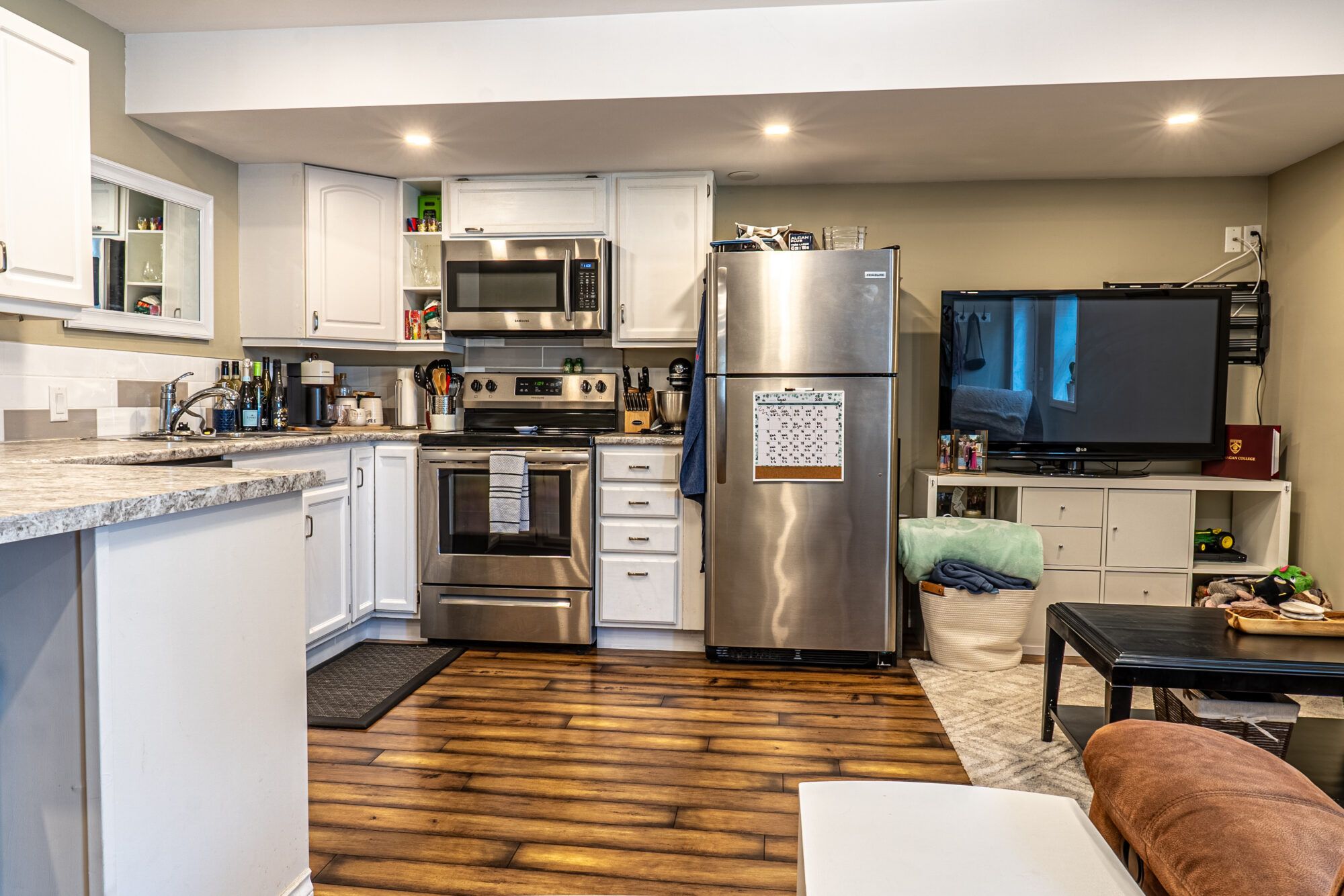 One of the highlights of this property is the fully contained one-bedroom Dilworth suite, a true asset with its own private entrance. Spread across 900 sq.ft, this supplementary suite is a world of privacy and convenience. The spacious living area seamlessly connects to a well-designed kitchen, with pristine white cabinetry and complemented by full-size appliances. The bedroom offers a spacious area for all your needs. The thoughtful inclusion of a separate full-size laundry room adds a practical edge, making daily life in the suite a breeze. This suite not only offers additional living space but also serves as a source of instant income, a noteworthy advantage for any homeowner.