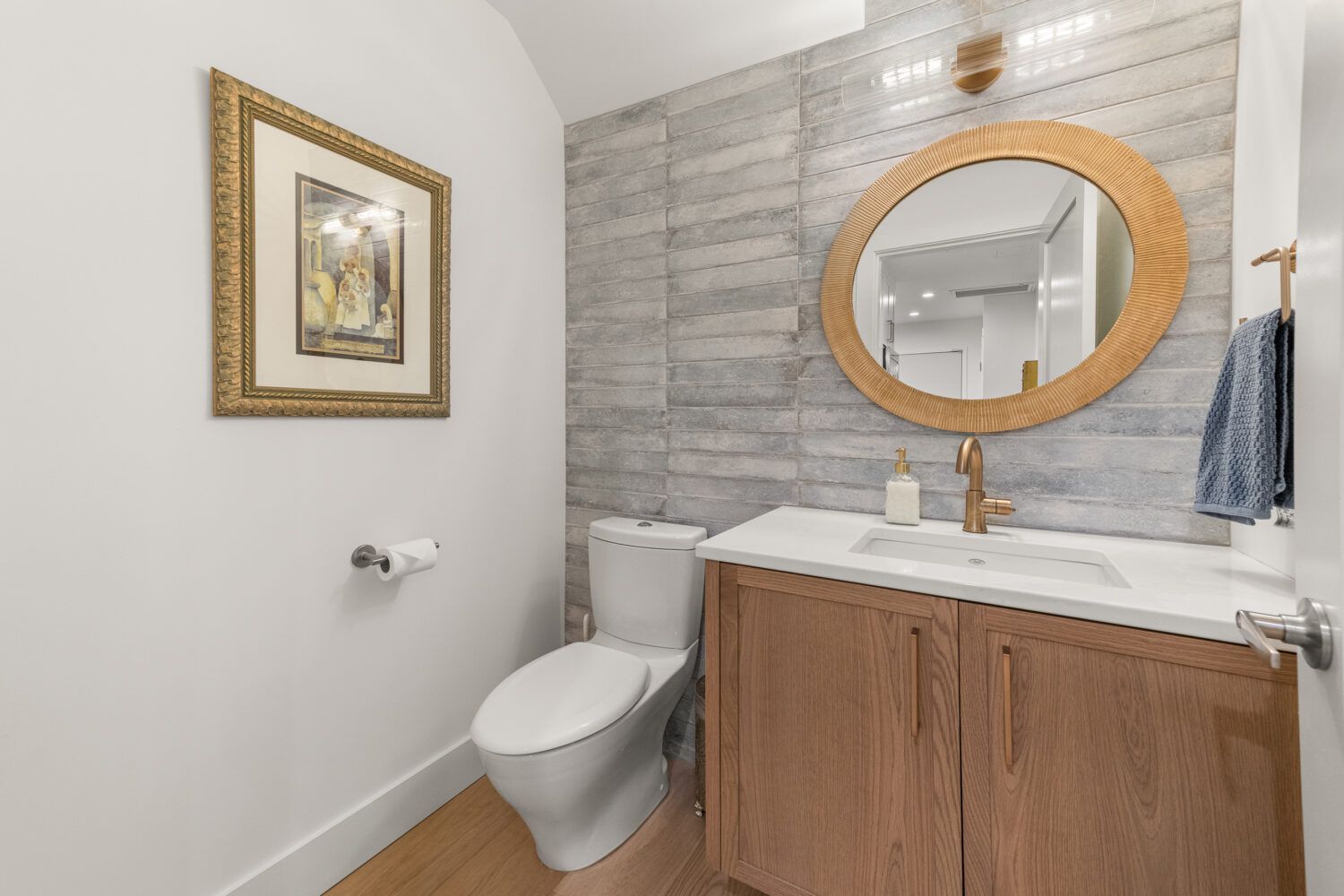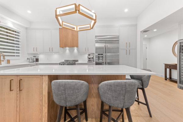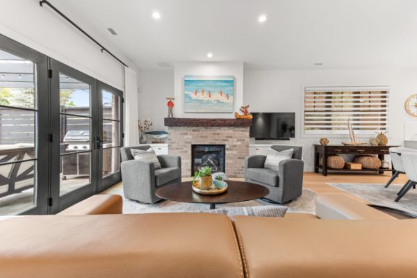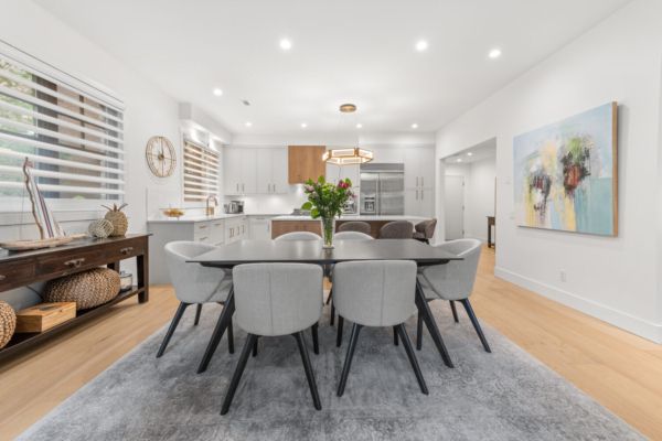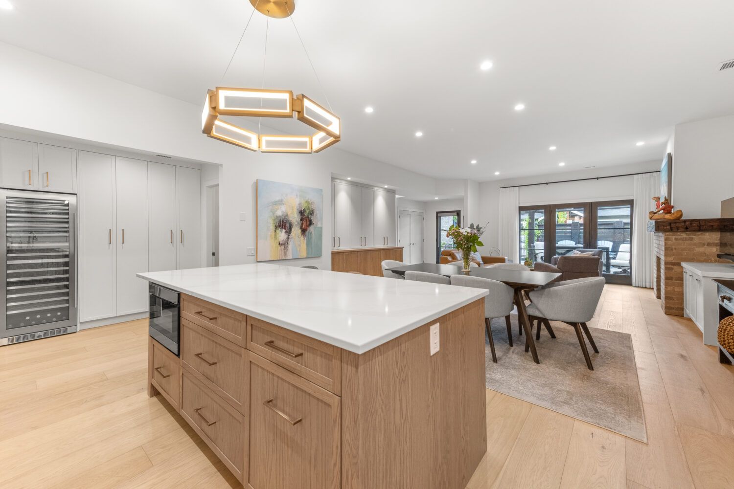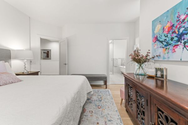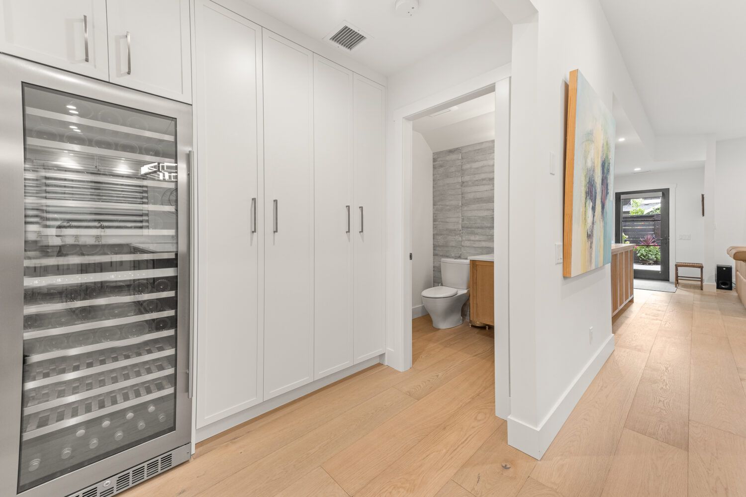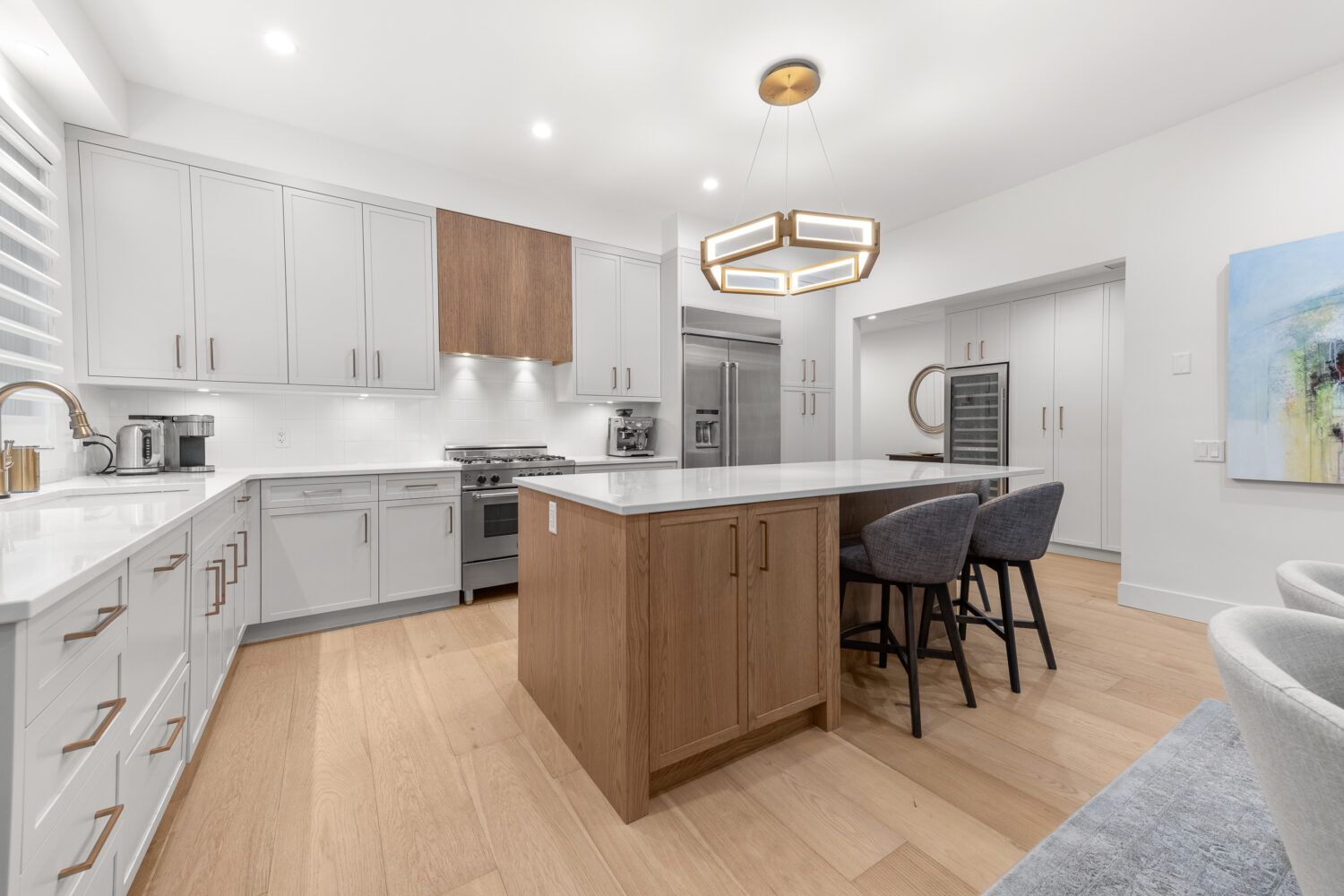 The newly renovated kitchen is equipped with top-of-the-line appliances, including Fisher&Paykel dual drawer dishwashers, a Jennair 42” fridge freezer, a Bertazzoni 4 burner gas stove, and a silhouette 130-bottle wine fridge. The large center island makes this the perfect space to entertain.