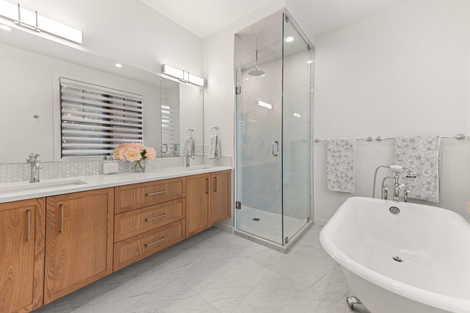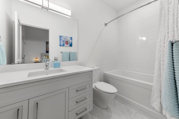 The upper level of this Brownstone offers 2 bedrooms, 2 full bathrooms, and a flex room perfect for a home office or TV space. The primary bedroom emphasizes a large ensuite with new stunning marble tile, a glass tiled shower, and a freestanding claw tub. The walk-in closet to this beautiful primary features a window to let in natural light. The second bedroom of this home features its own private 4PC Bathroom. The laundry room is just across the hall from the flex room, providing convenience to the upstairs bedrooms.