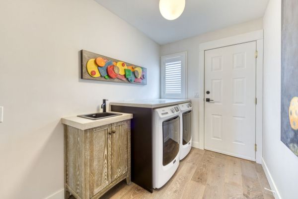 - A separate laundry area right next to the suite has Maytag front-load units and a sink.