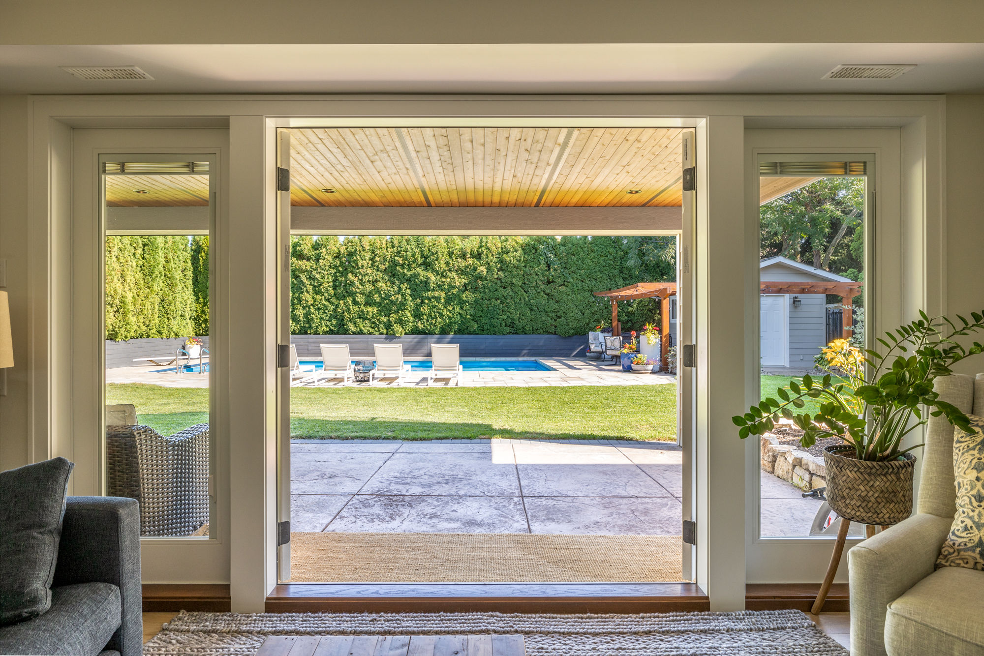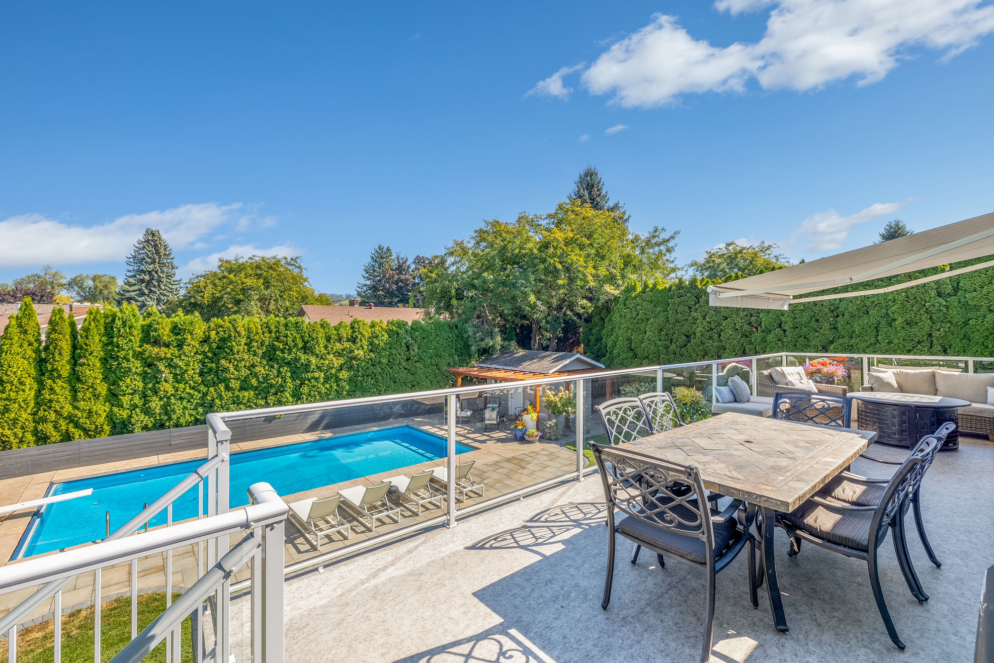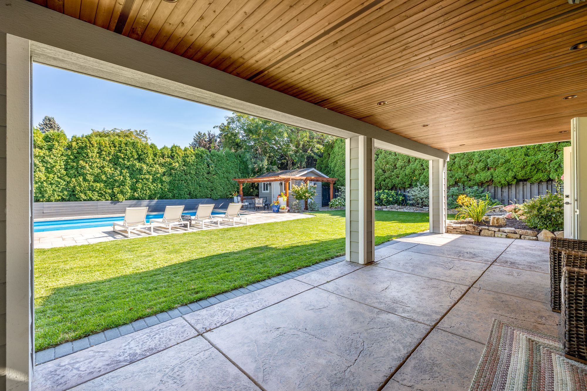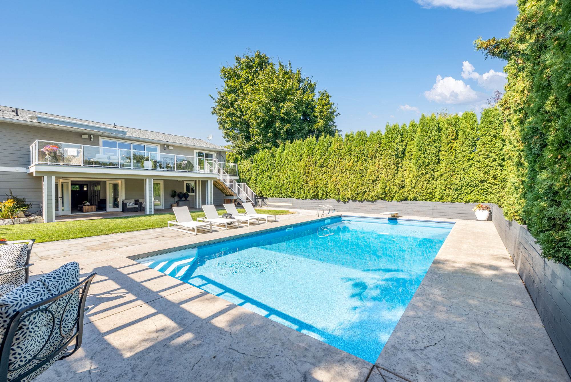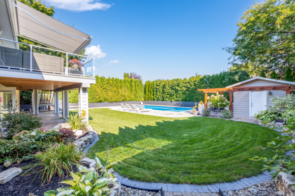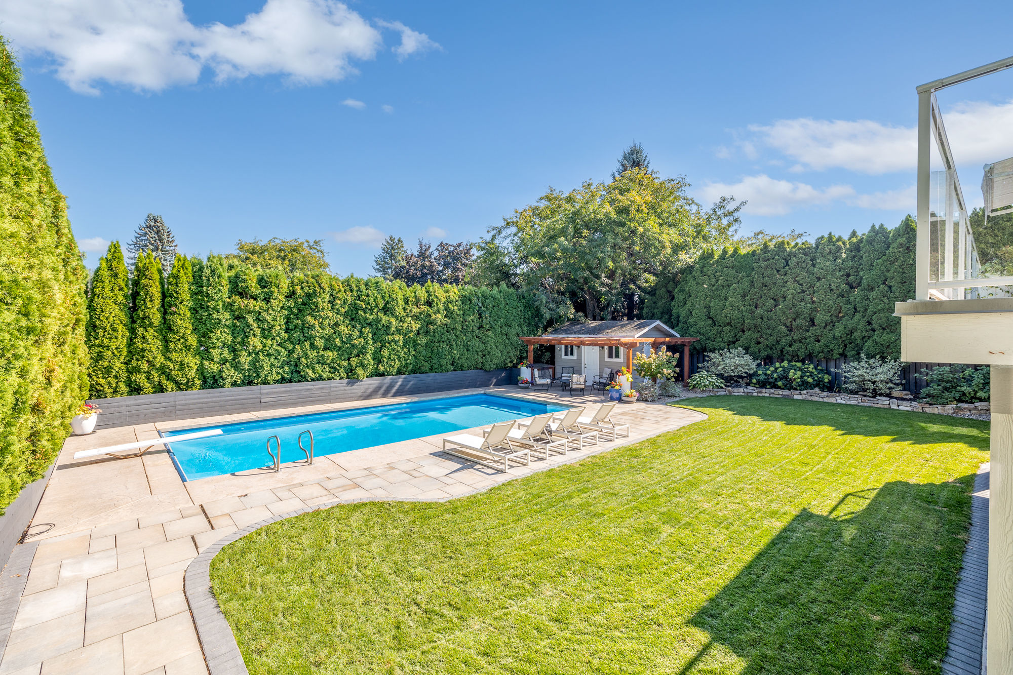 - Lush landscaping enclosed by mature cedars for total privacy