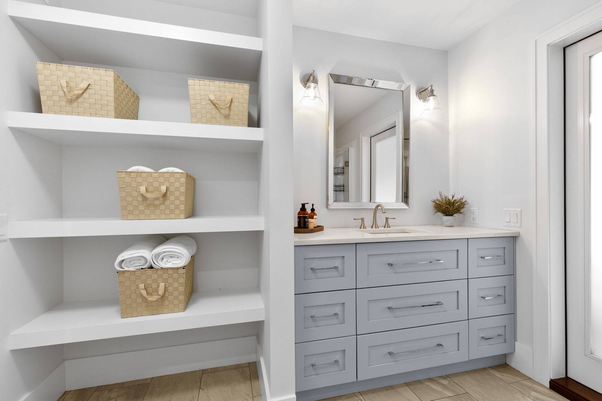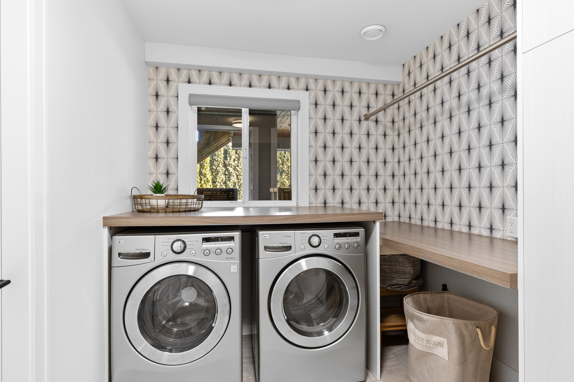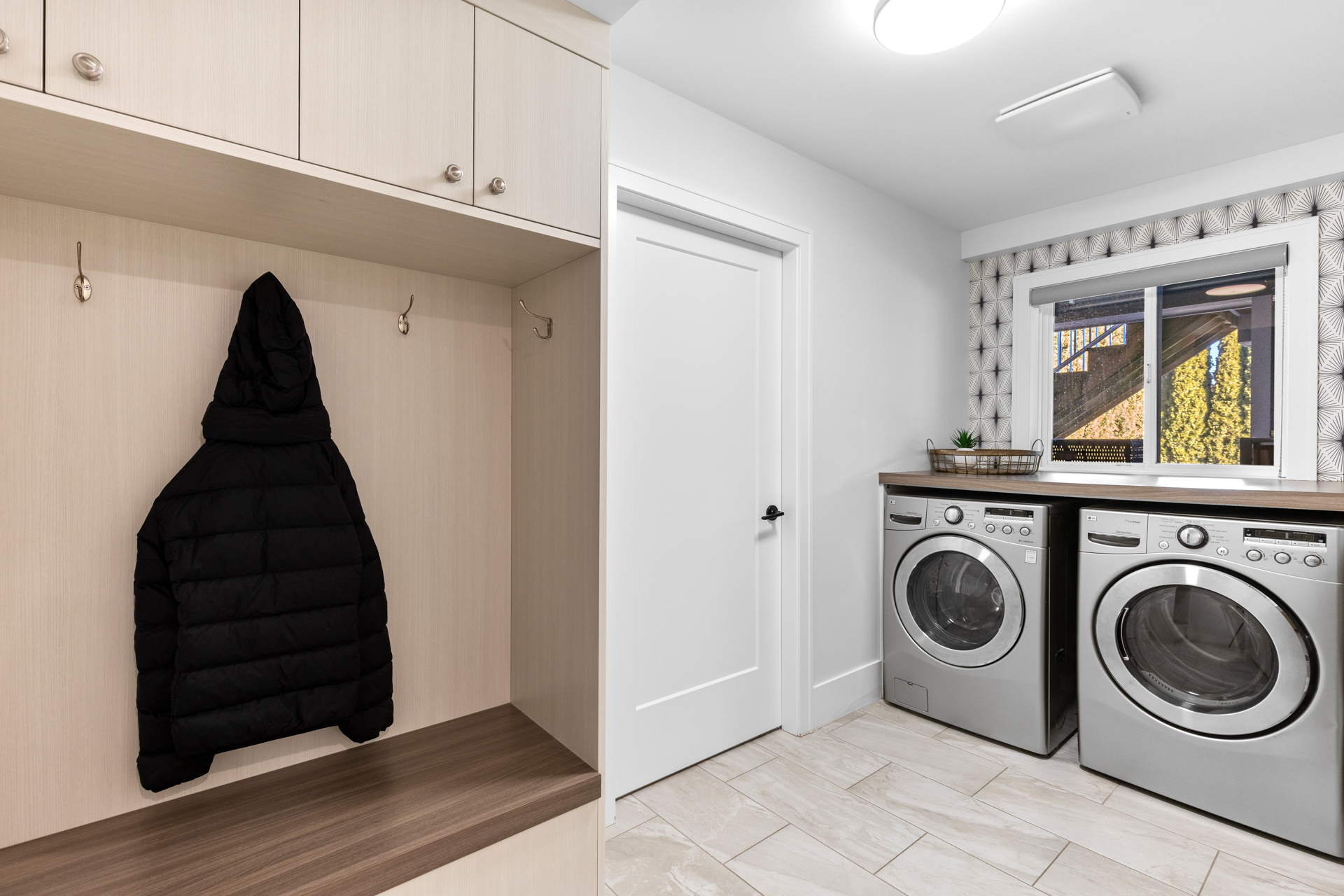 - A large laundry room with extra storage