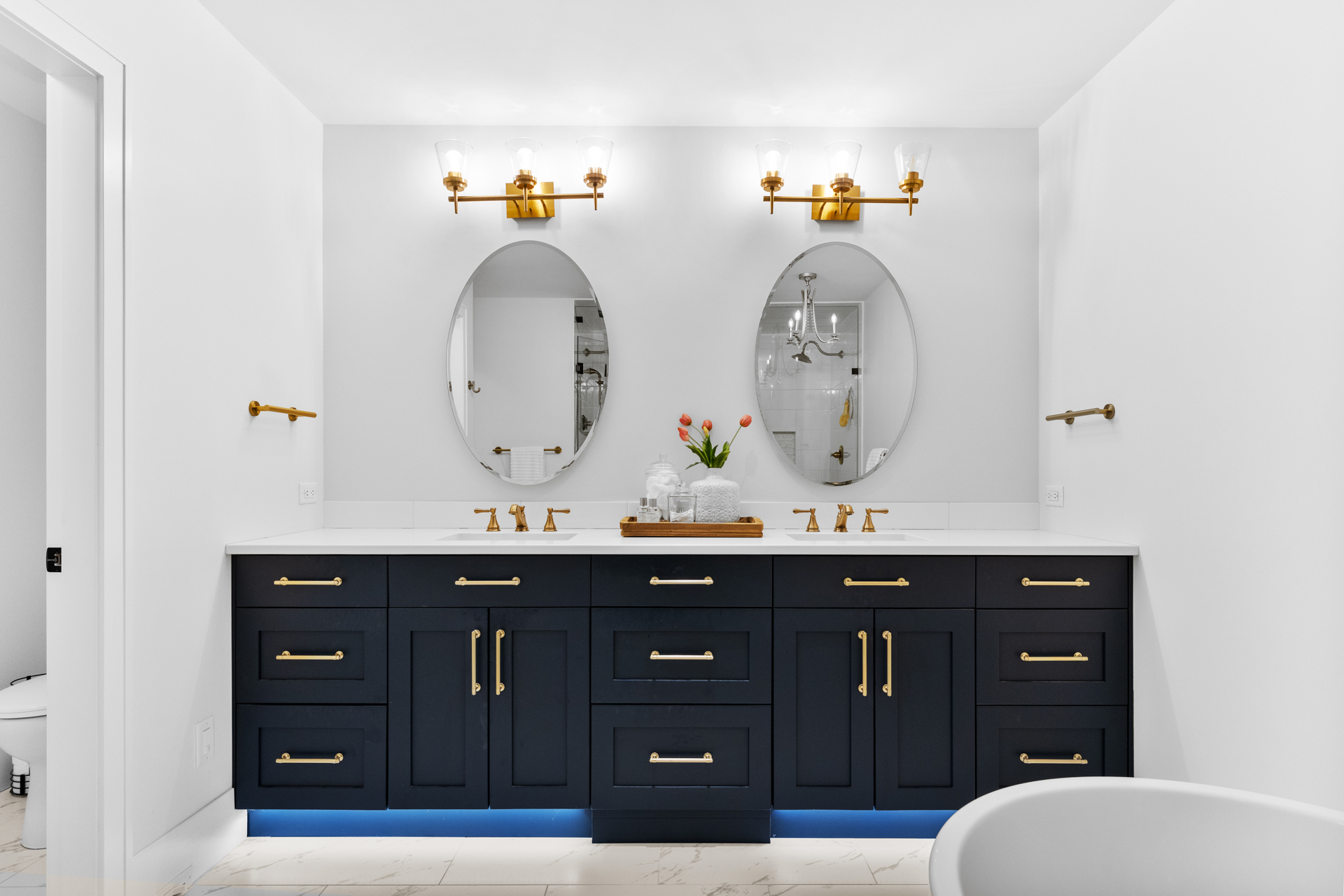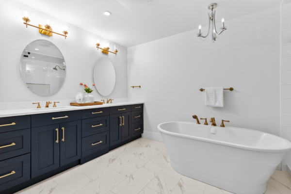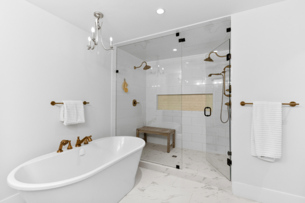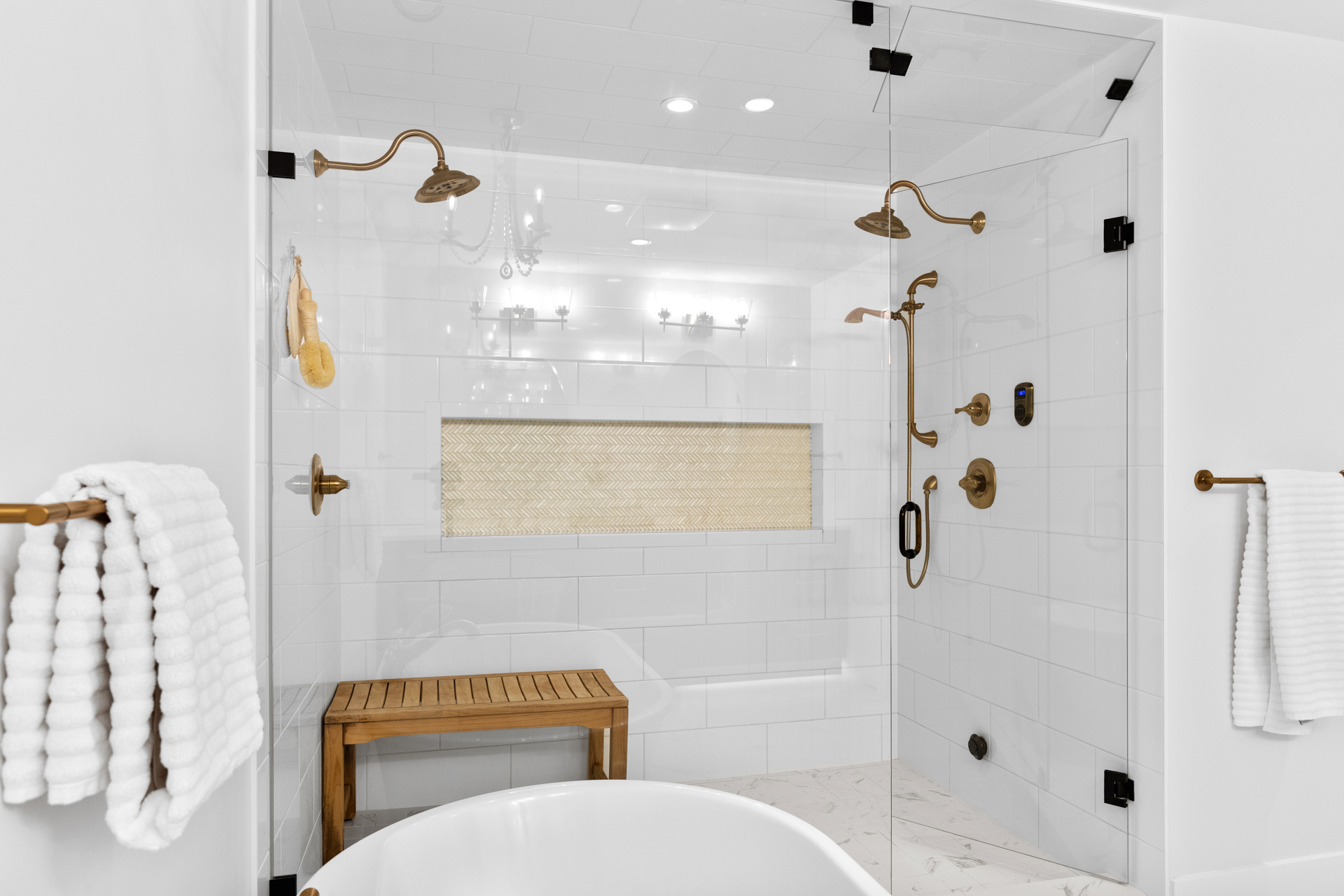 - A spa-like ensuite with a steam shower, double shower heads, a soaker tub, and champagne fixtures