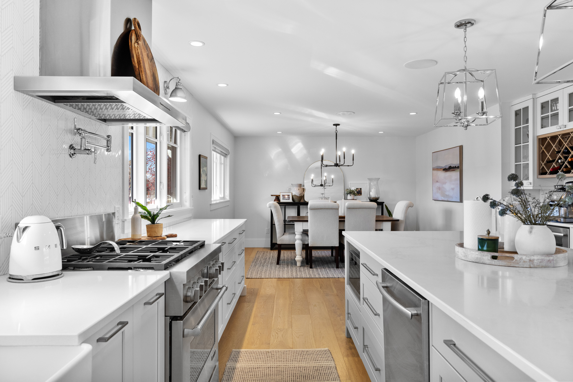 - JennAir commercial appliances, including a gas stove with pot filler and steam oven