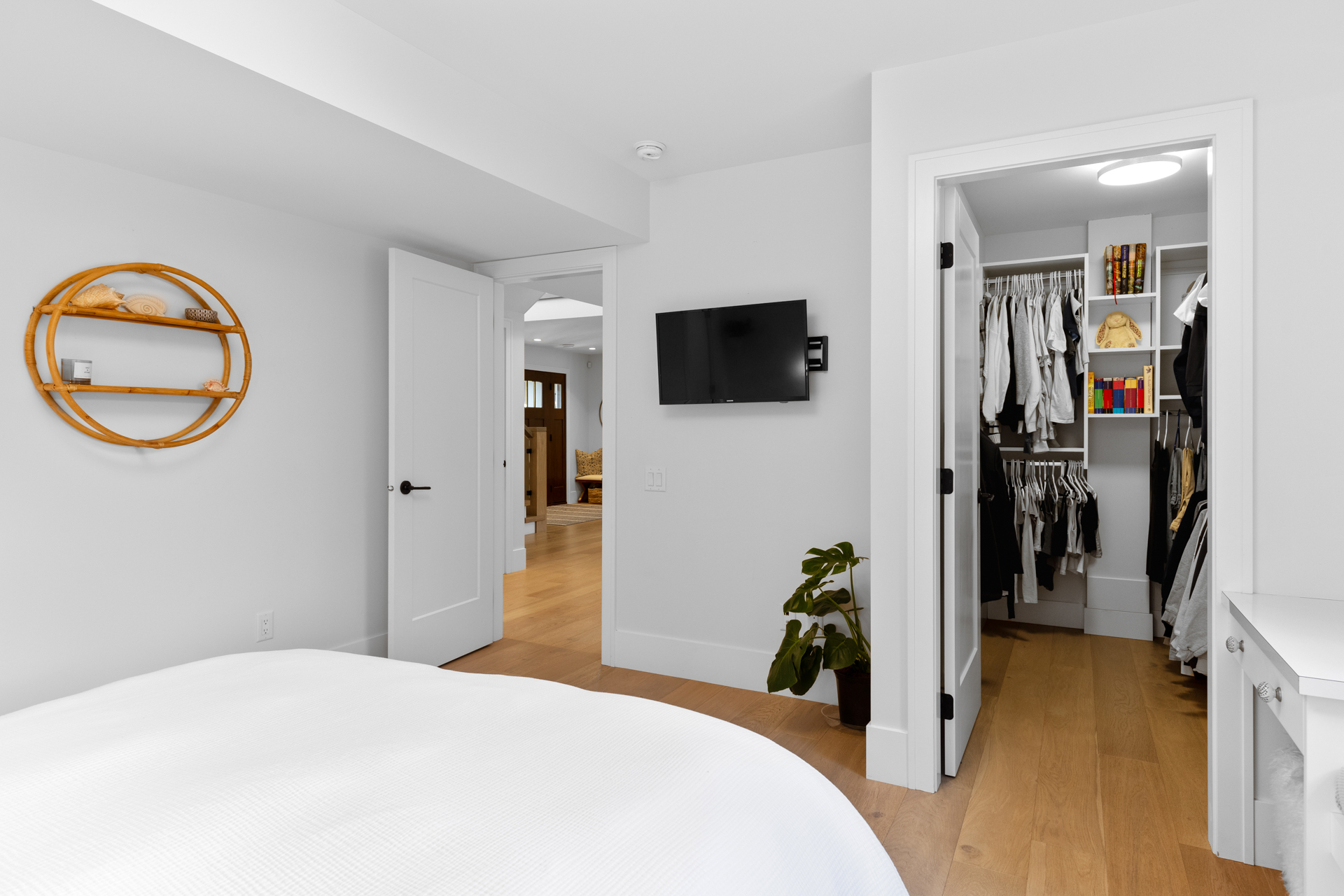 - A walk-in closet with custom organizers