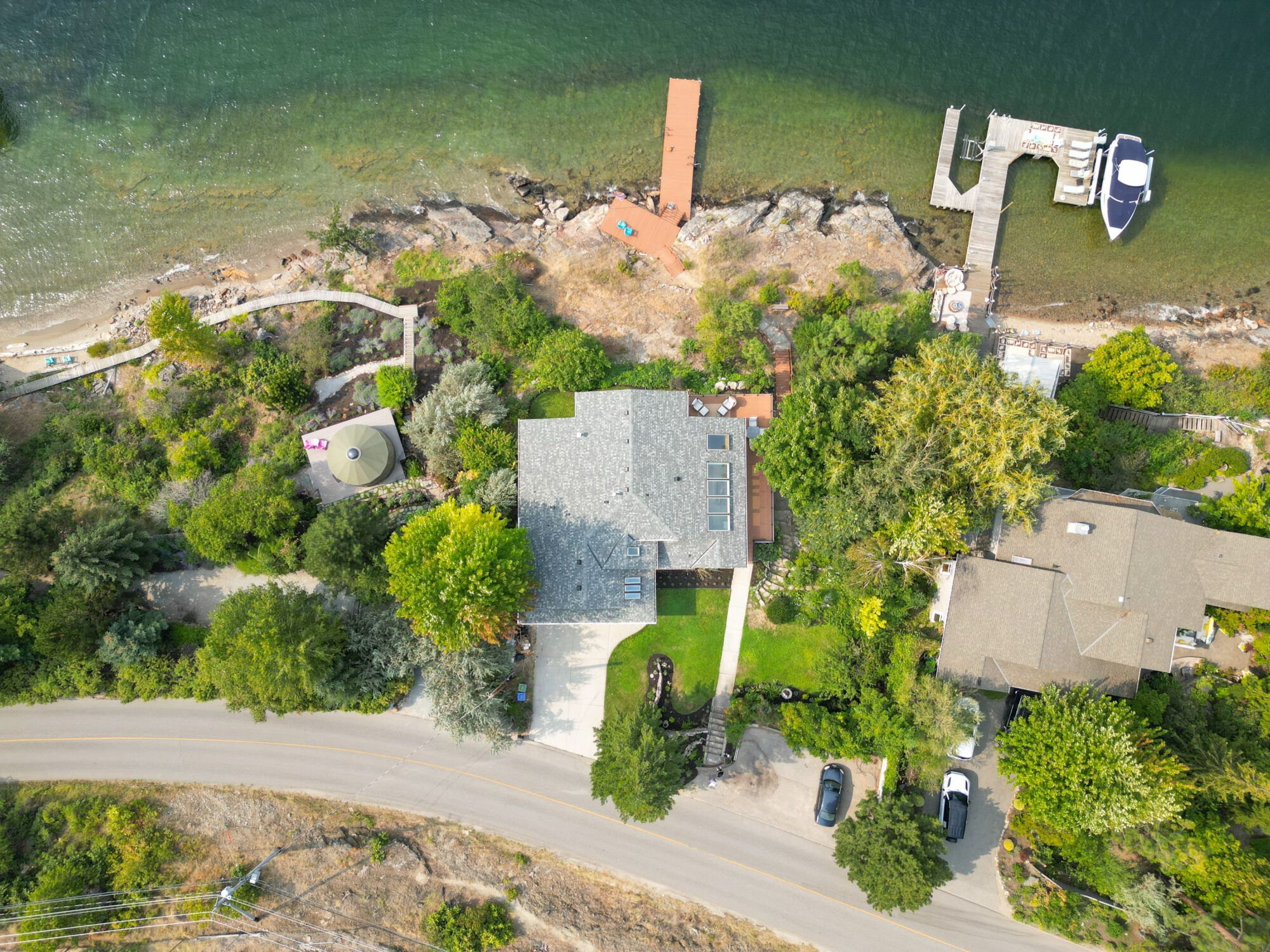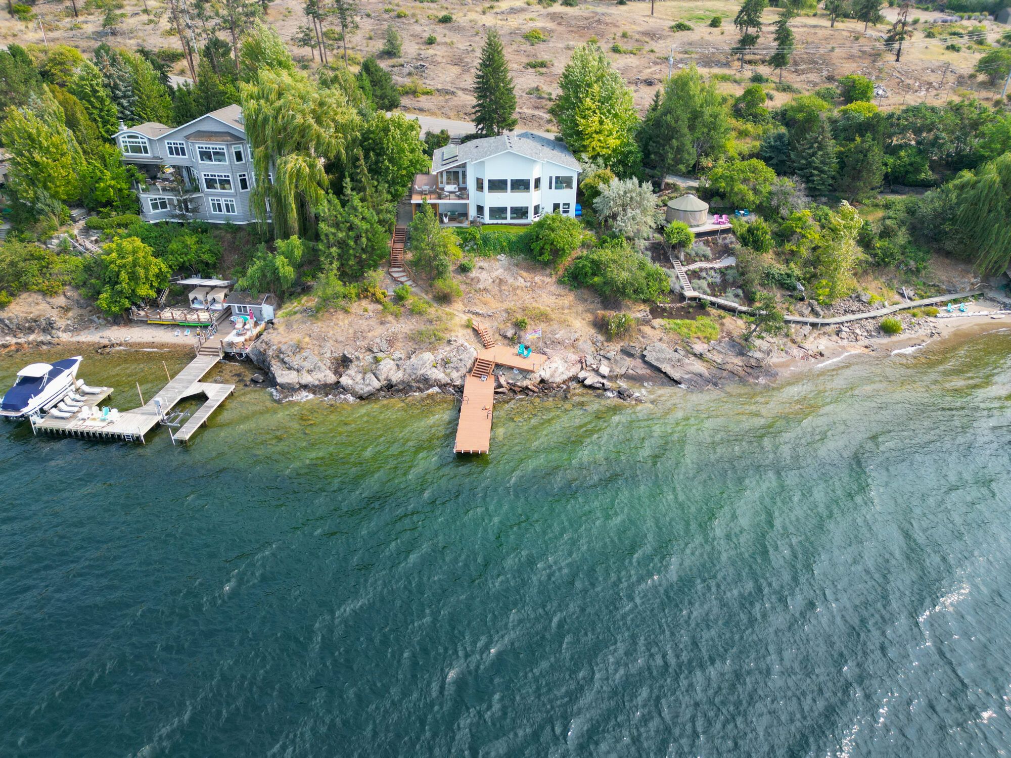 This lakeshore property is located in the rolling hills of Kelowna’s Mission neighborhood, just minutes from the award-winning Cedar Creek Winery and fine dining at Home Block. The setting is private and serene with hiking and biking trails just out the front door. Surrounded by nature just minutes to amenities. This area of the lake is quiet and allows for deep water moorage to enjoy your boat any time of the year.