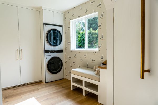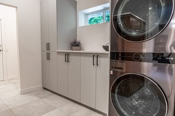The home is built for the Lakeshore lifestyle. Off the lower patio, you will find a changing room with a half bathroom and access to the second laundry perfect for all your beach towels. This area twinkles at night with patio lights suspended from the upper deck.