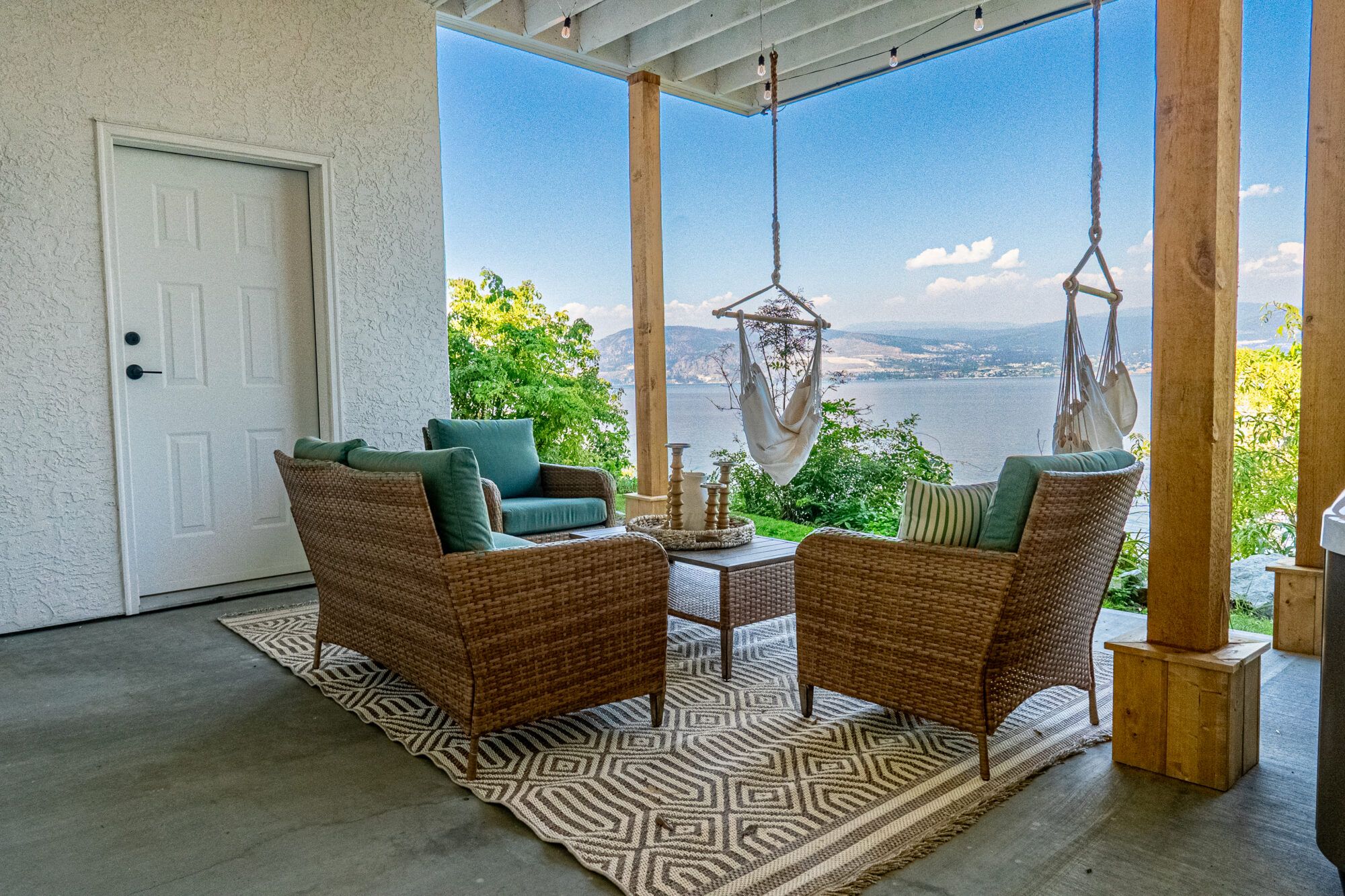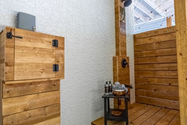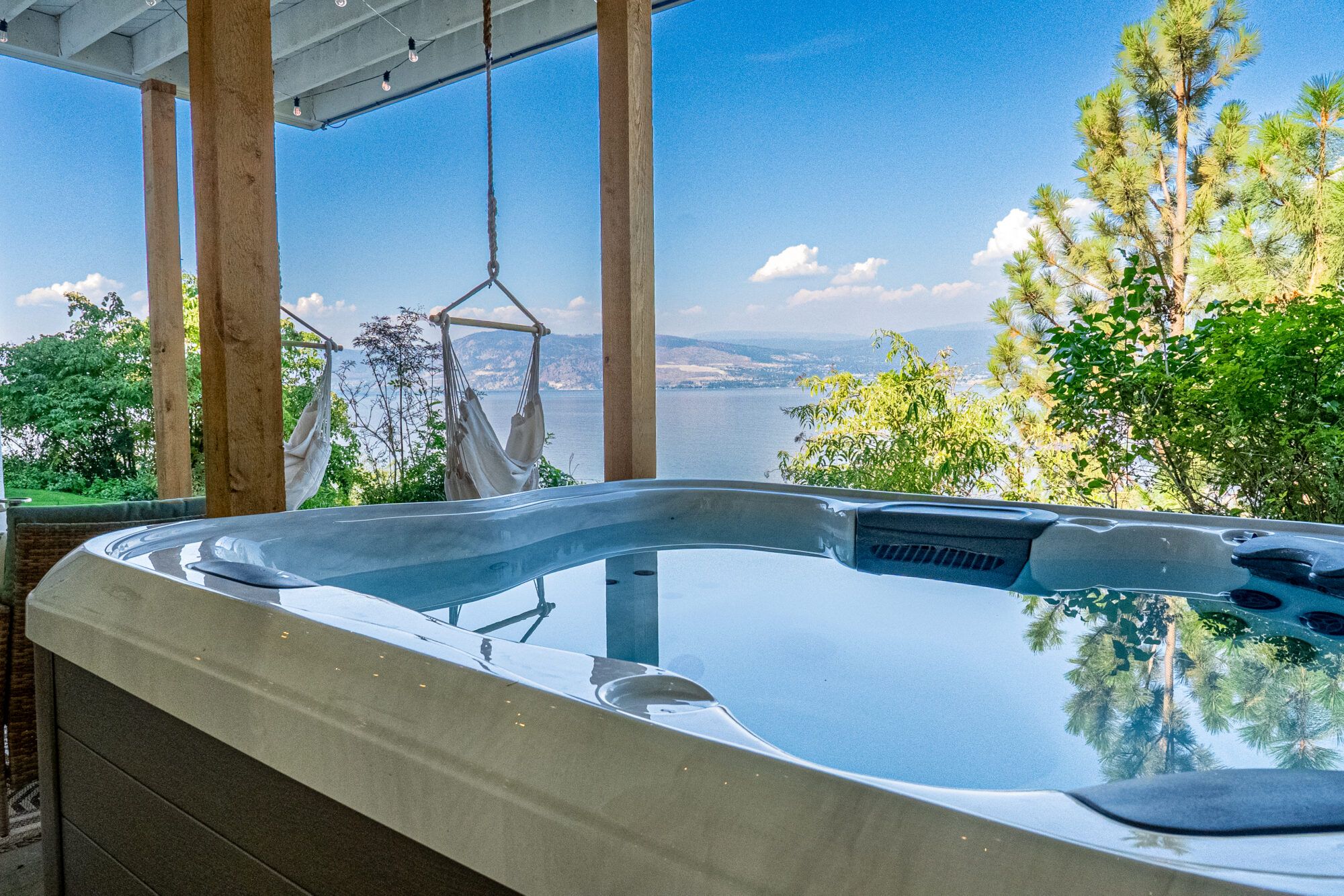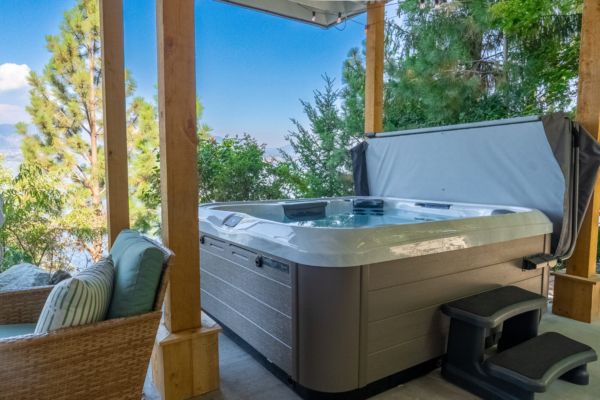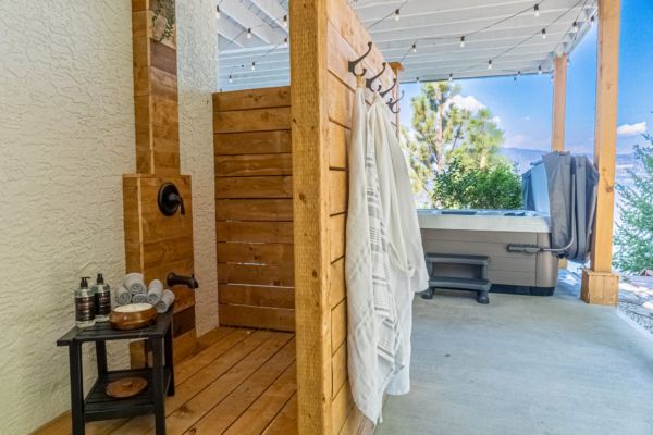 After a day on the lake, rinse off in the private outdoor shower and then enjoy the heat of an infrared sauna or a dip in the hot tub. This is how you live in the Okanagan.
