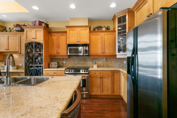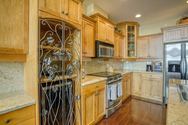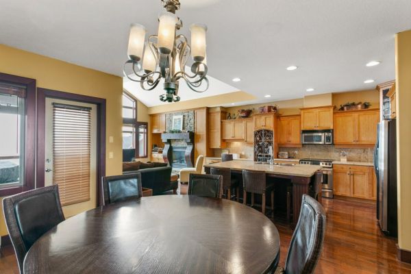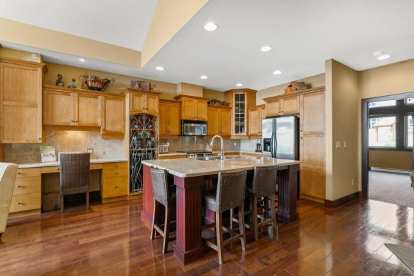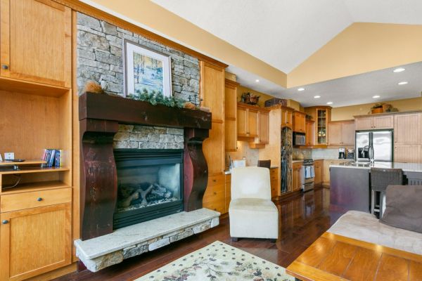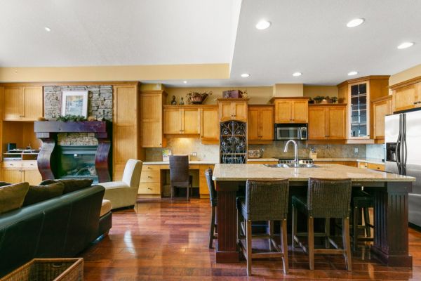 A perfect getaway to play and relax. Soak in your hot tub on the private deck, then cozy up to the fireplace or after a full day of skiing. The main living area is an open concept with spectacular views of the Monashee Mountains. The spacious kitchen has a large island perfect for entertaining. Just off the kitchen is a built-in desk and beverage center with a wine fridge.