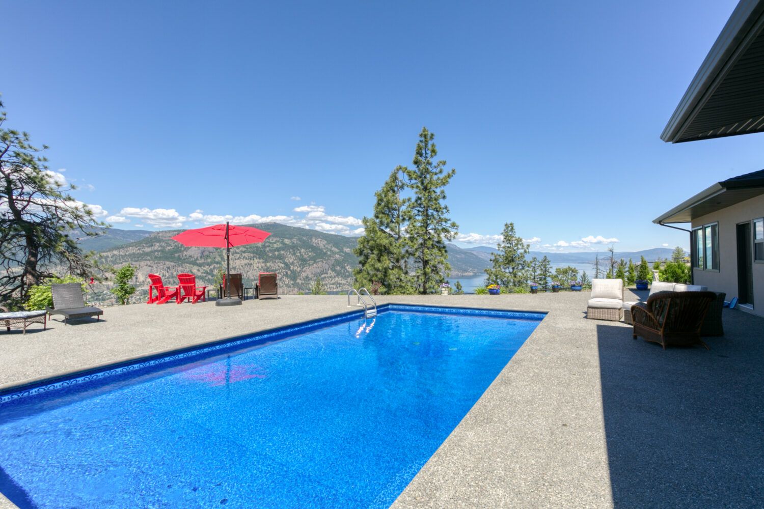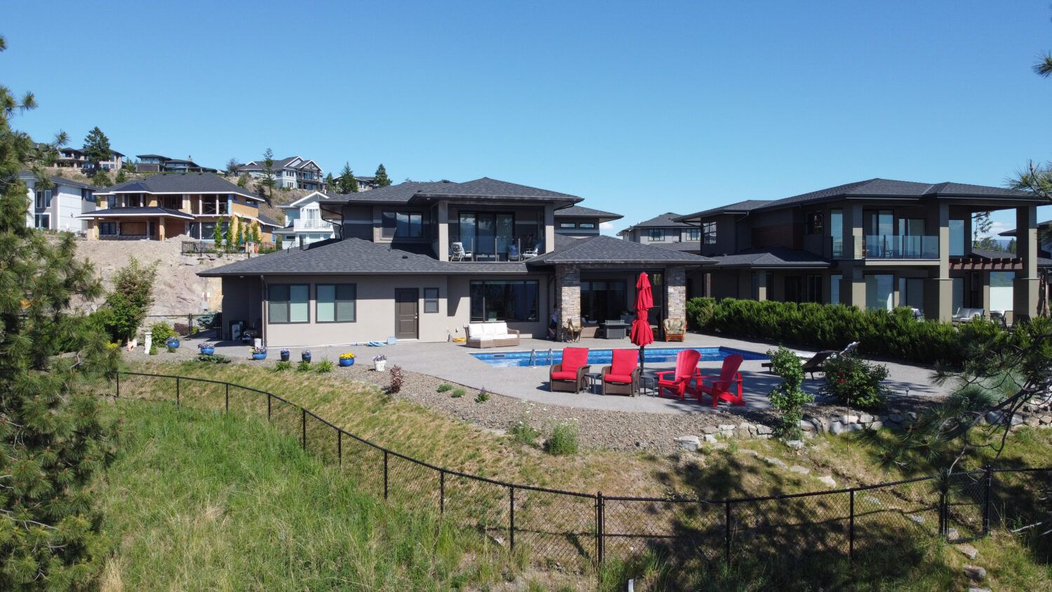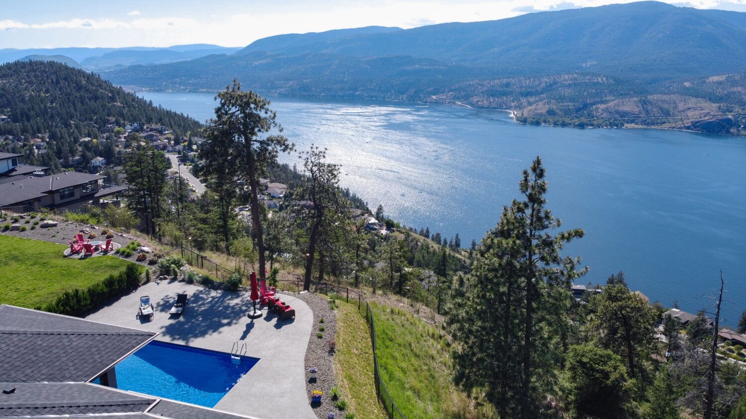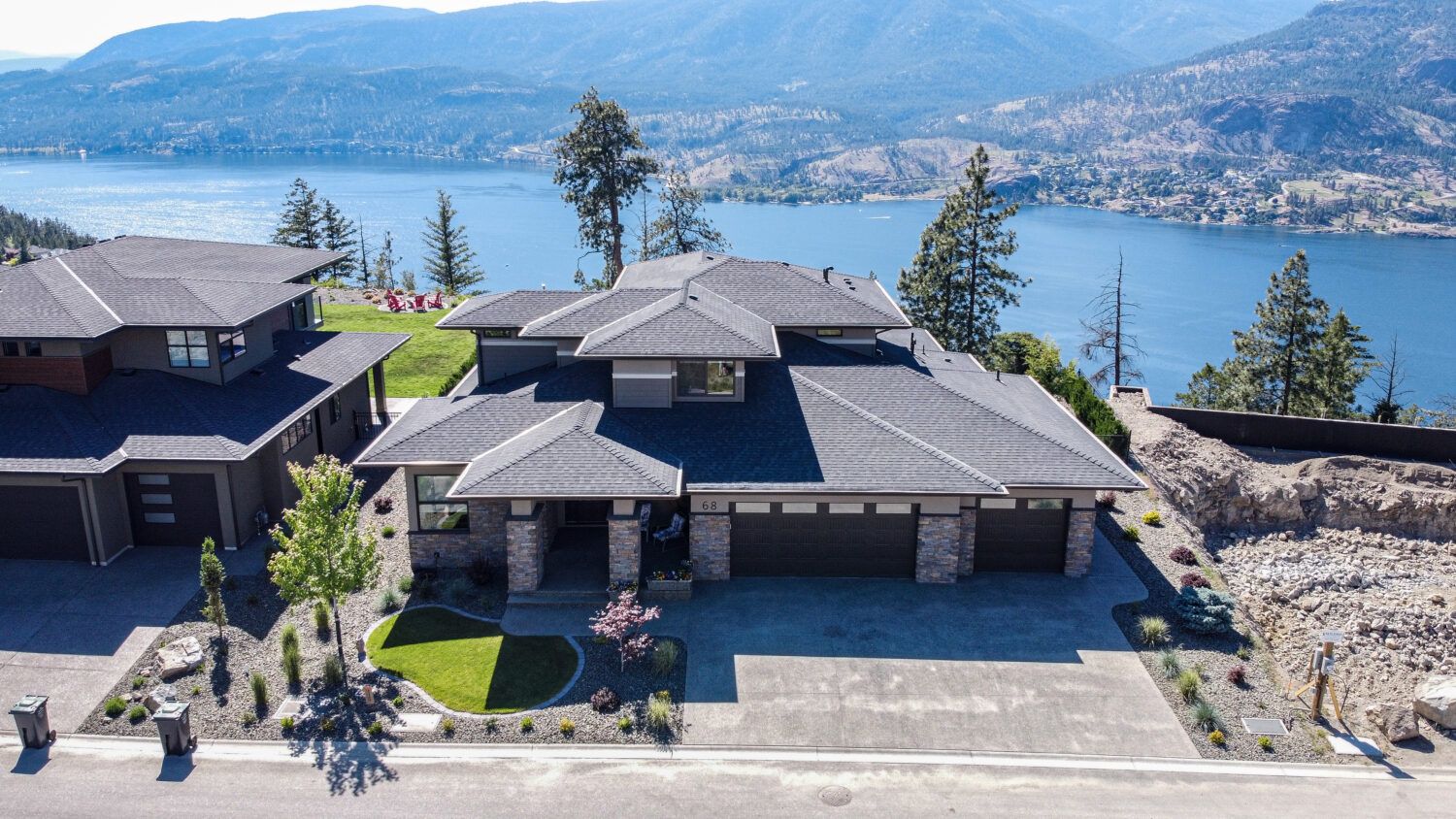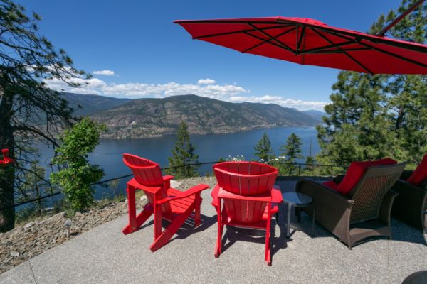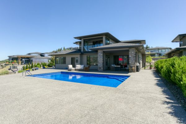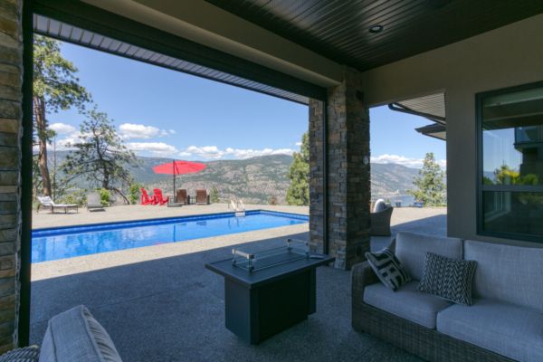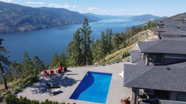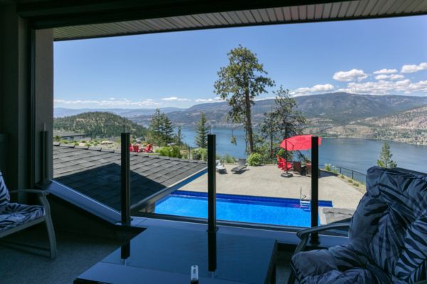Welcome to 68 Red Sky Place, a breathtaking Wilden luxury home with incomparable views on an ideal .55-acre lot, with a saltwater pool perched on a point looking over Okanagan Lake. One of the largest and best lots in the subdivision offering expansive 180-degree views of the lake and valley. This home provides luxury and modern finishings and is engineered with top-of-the-line systems and features for ultimate convenience. From the air conditioning in the garage, domestic hot water circulating hot water, and power blinds throughout, to the Control 4 system and two-zone heating system, everything has been thought of. Feel at peace in your home with 6 exterior security cameras, phantom screens on the upper and lower patios, and extra tint on west-facing windows.