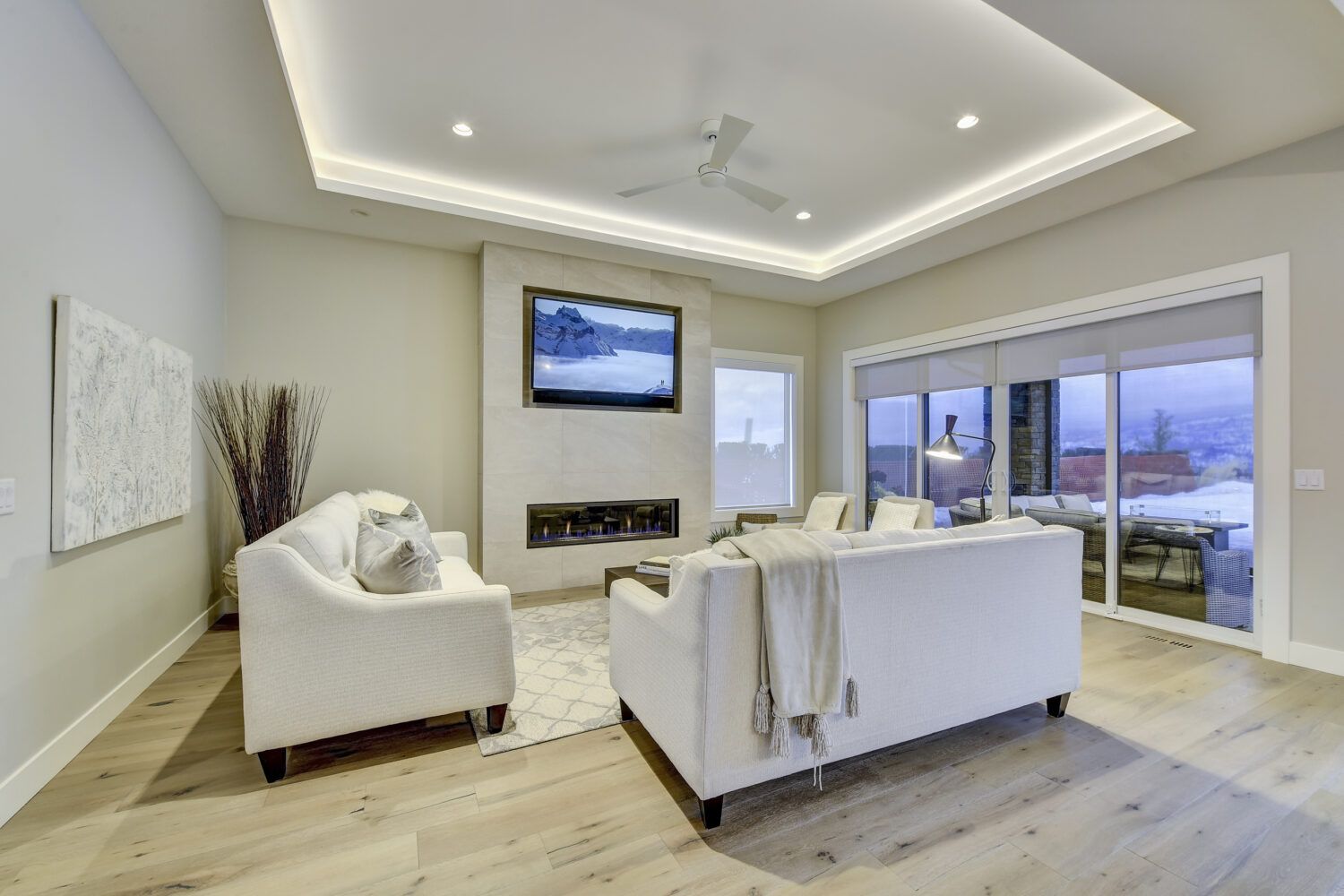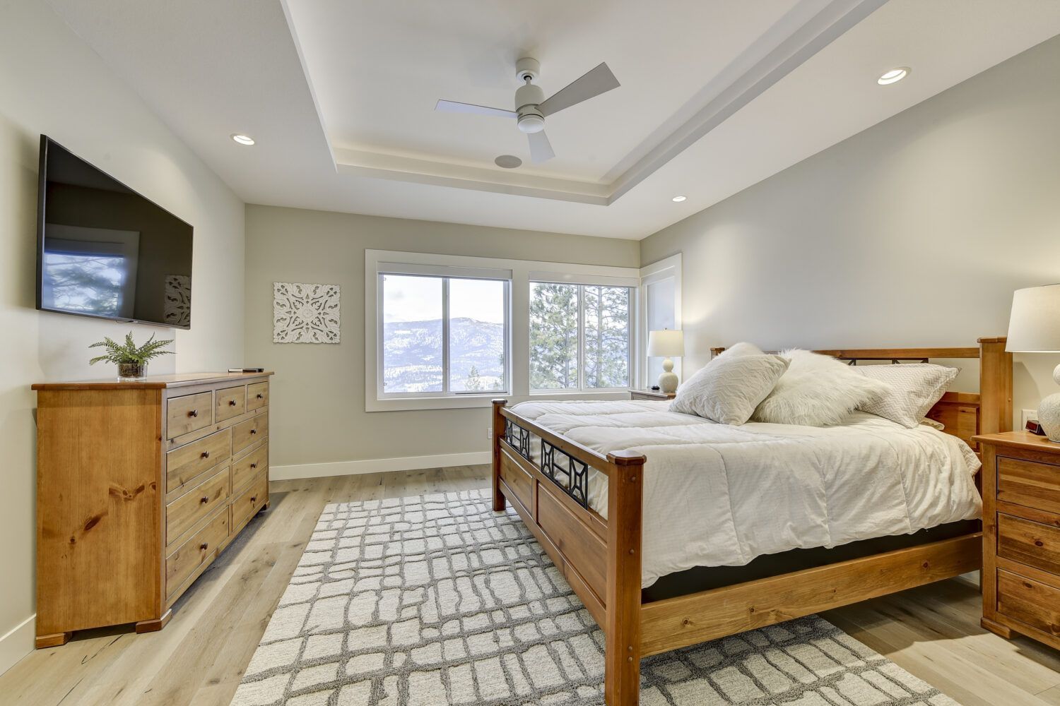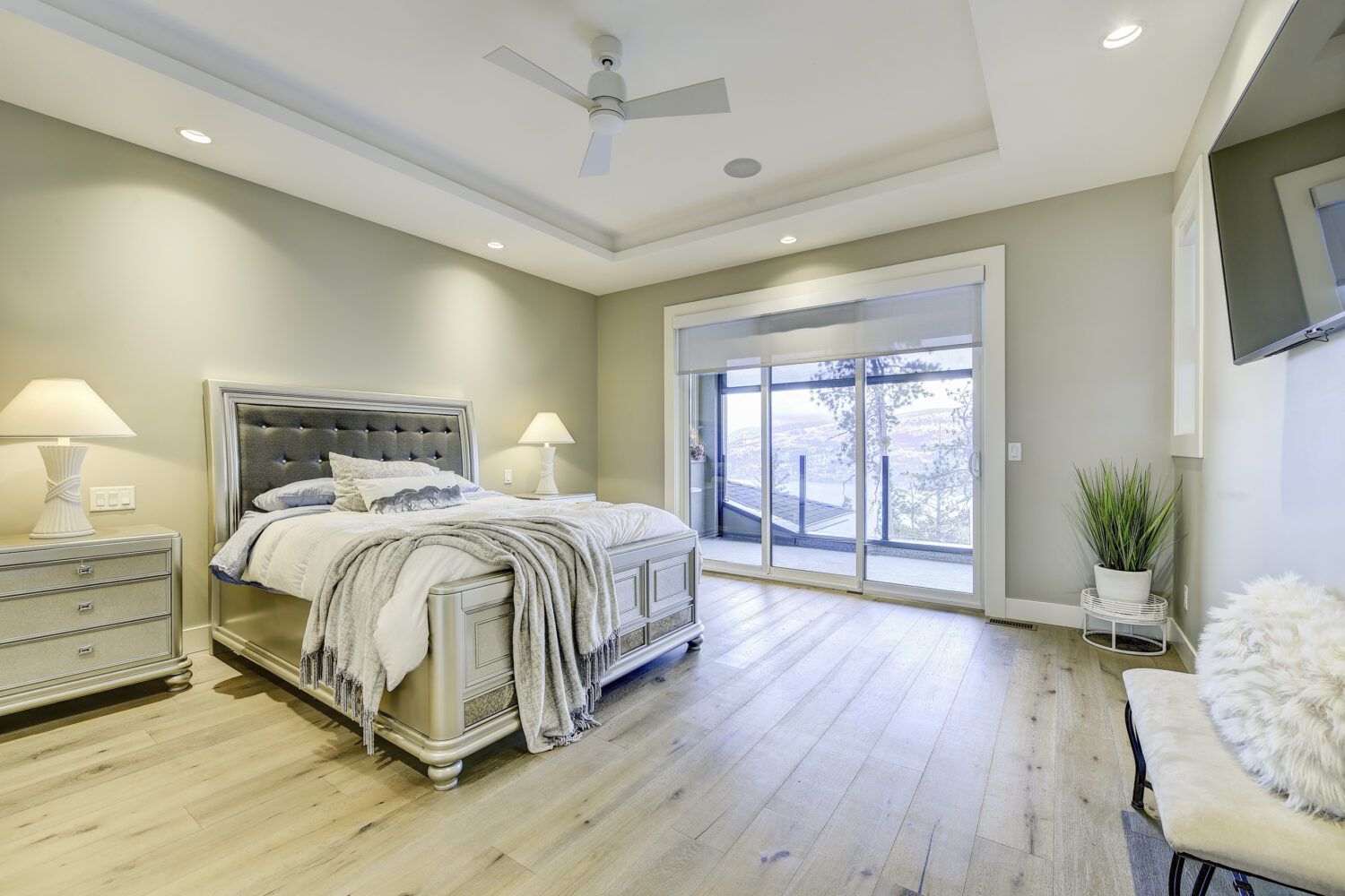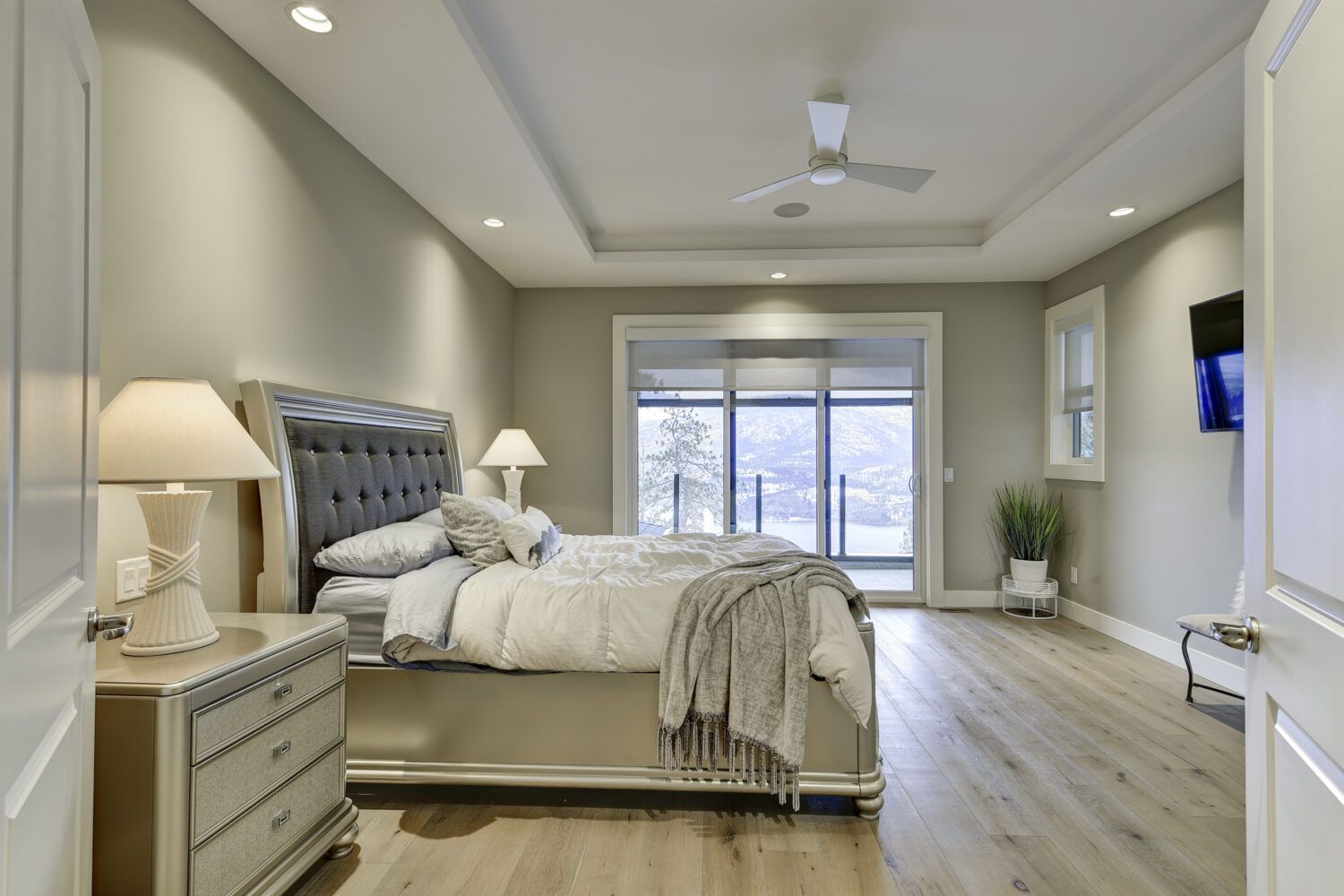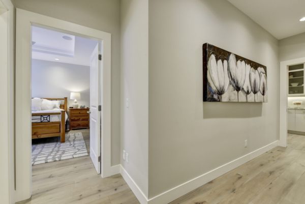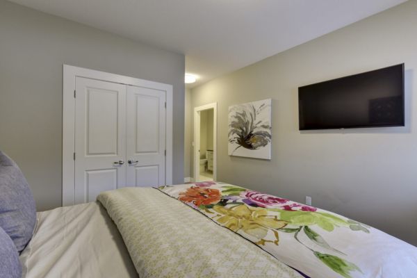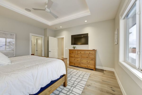 This luxury home’s bright open-concept interior provides ample natural light through the large windows and patio doors, with modern finishings and impressive back-lit tray ceilings. The main floor does not disappoint with its thought-through layout, 2 bedrooms, and 3 bathrooms. The kitchen is large and open, with white cabinetry, top-of-the-line stainless steel appliances, and beautiful quartz countertops. Through the kitchen is a conveniently designed space comprised of a large butler pantry, mudroom, laundry room, bathroom, and master suite. One of the bathrooms on this floor can be accessed directly from the patio and pool. The master suite boasts stunning views, a walk-in closet, and an impressive 5-piece ensuite. Enjoy the amazing views from your kitchen, dining room, and living room with direct access to the patio.