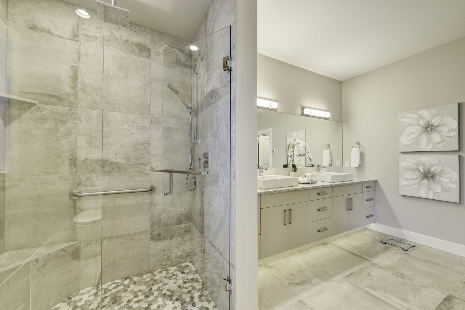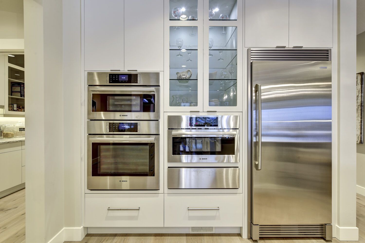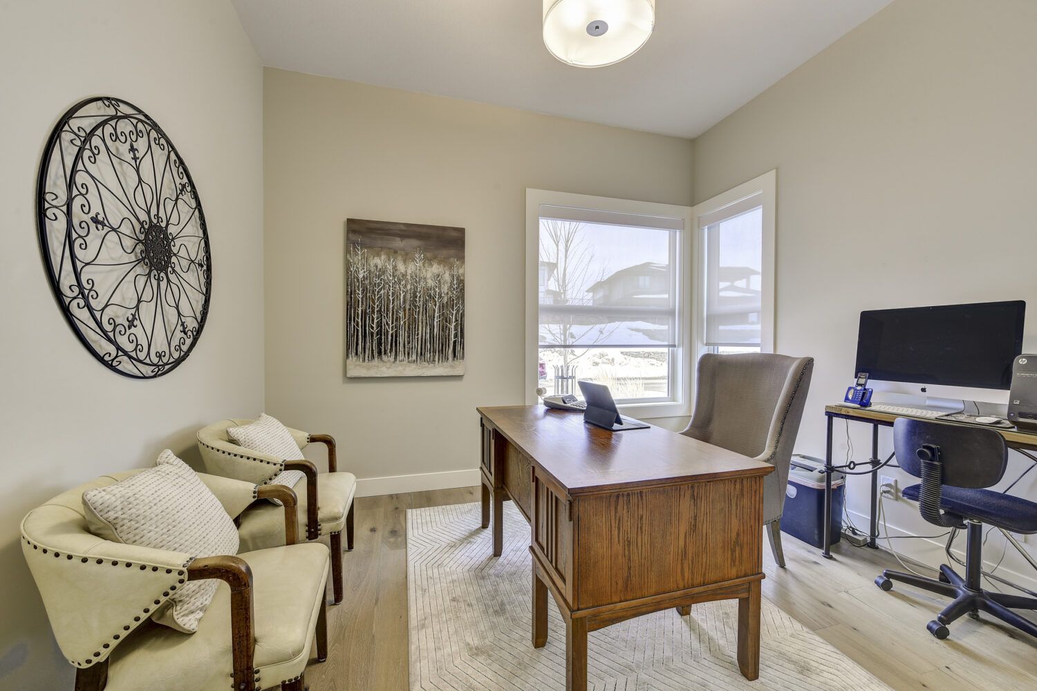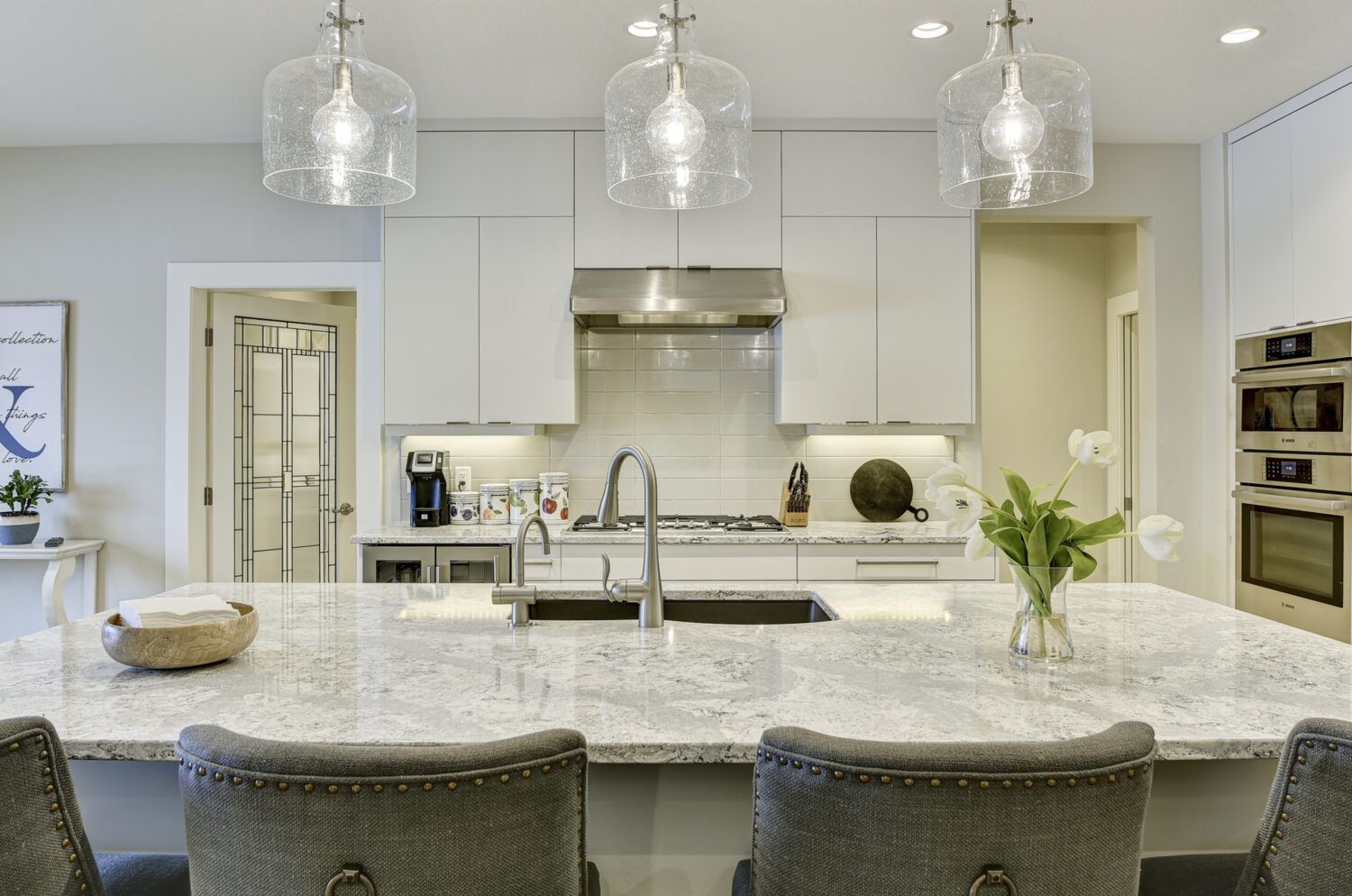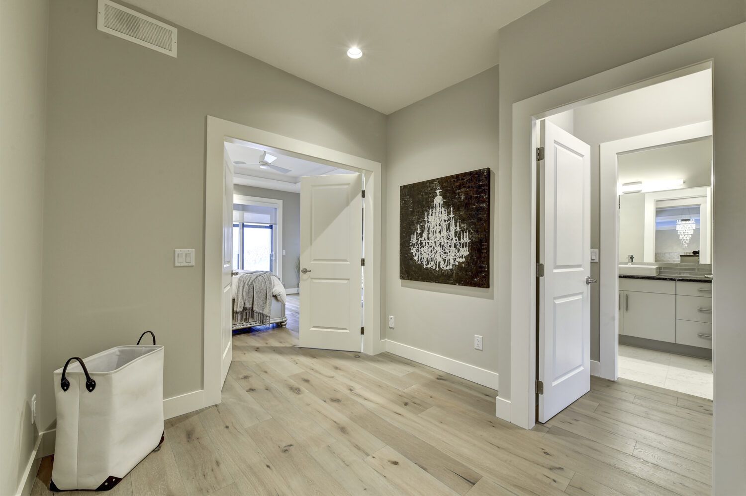 This luxury home’s bright open-concept interior provides ample natural light through the large windows and patio doors, with modern finishings and impressive back-lit tray ceilings. The main floor does not disappoint with its thought-through layout, 2 bedrooms, and 3 bathrooms. The kitchen is large and open, with white cabinetry, top-of-the-line stainless steel appliances, and beautiful quartz countertops. Through the kitchen is a conveniently designed space comprised of a large butler pantry, mudroom, laundry room, bathroom, and master suite. One of the bathrooms on this floor can be accessed directly from the patio and pool. The master suite boasts stunning views, a walk-in closet, and an impressive 5-piece ensuite. Enjoy the amazing views from your kitchen, dining room, and living room with direct access to the patio.