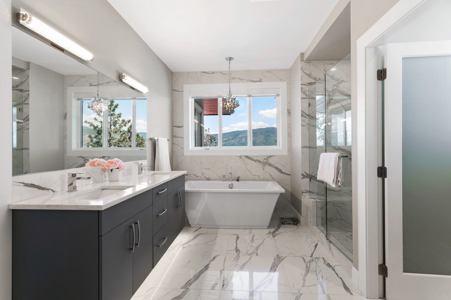 Equally impressive is the upper floor featuring an additional master suite and bedroom with ensuite. The main bedroom provides access to the balcony looking over the pool and incredible views. The ensuite is breathtaking, with floor-to-ceiling tile access to the giant walk-in closet.