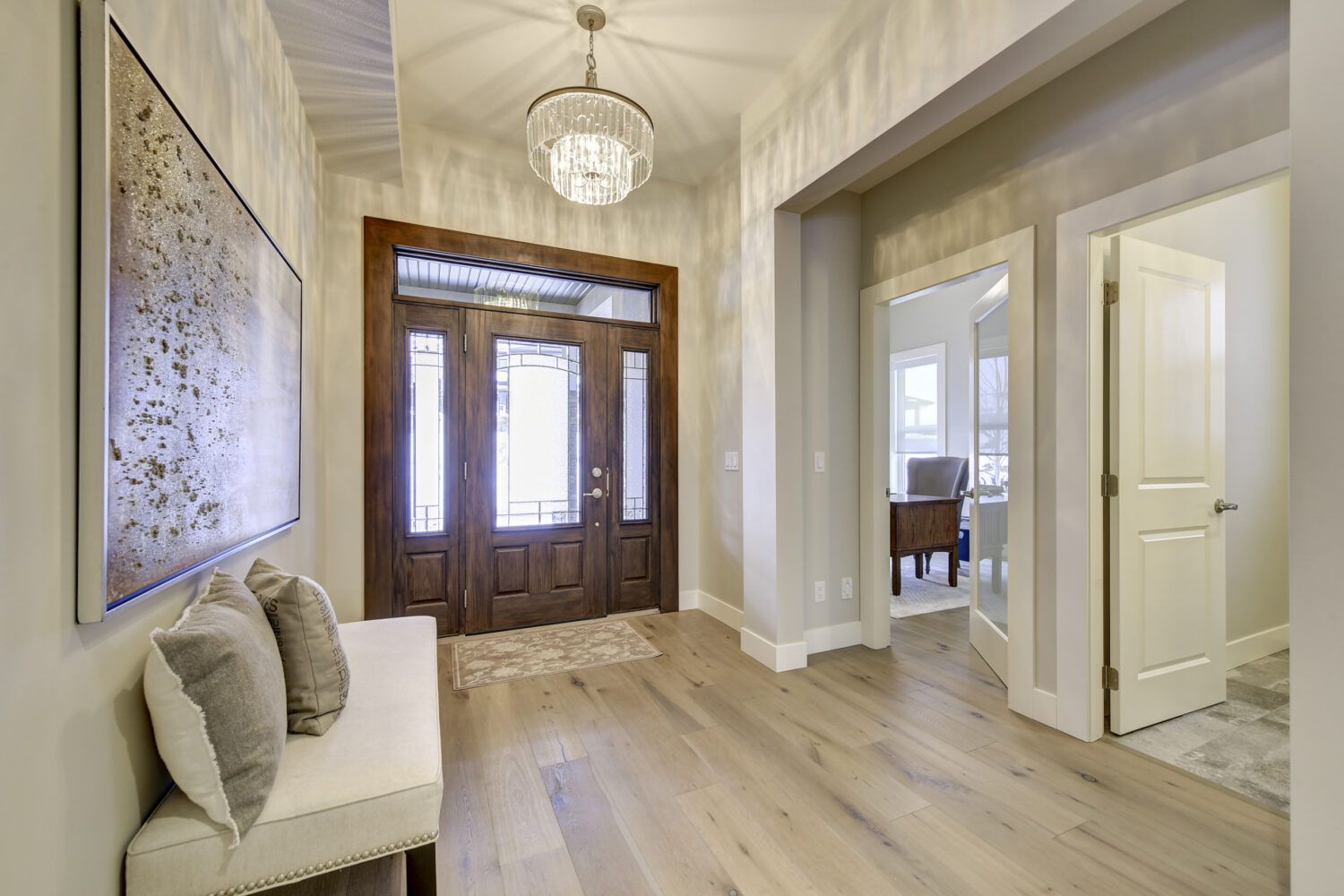 The features don’t stop there, this home also includes a large triple garage with air conditioning and a utility room. Featuring a 2-stage furnace and recirculating pump, this utility room also gives access to the giant crawl space. Luxury and technology go hand in hand in this Wilden luxury home with the Control4 automation system. Control all lighting, heating, entertainment, and security from the same place, or remotely from anywhere through the Control4 app. The exterior of this home brings simplicity and luxury together with very low-maintenance landscaping and a stunning 16x32ft saltwater pool with stairs and an 8ft deep end.