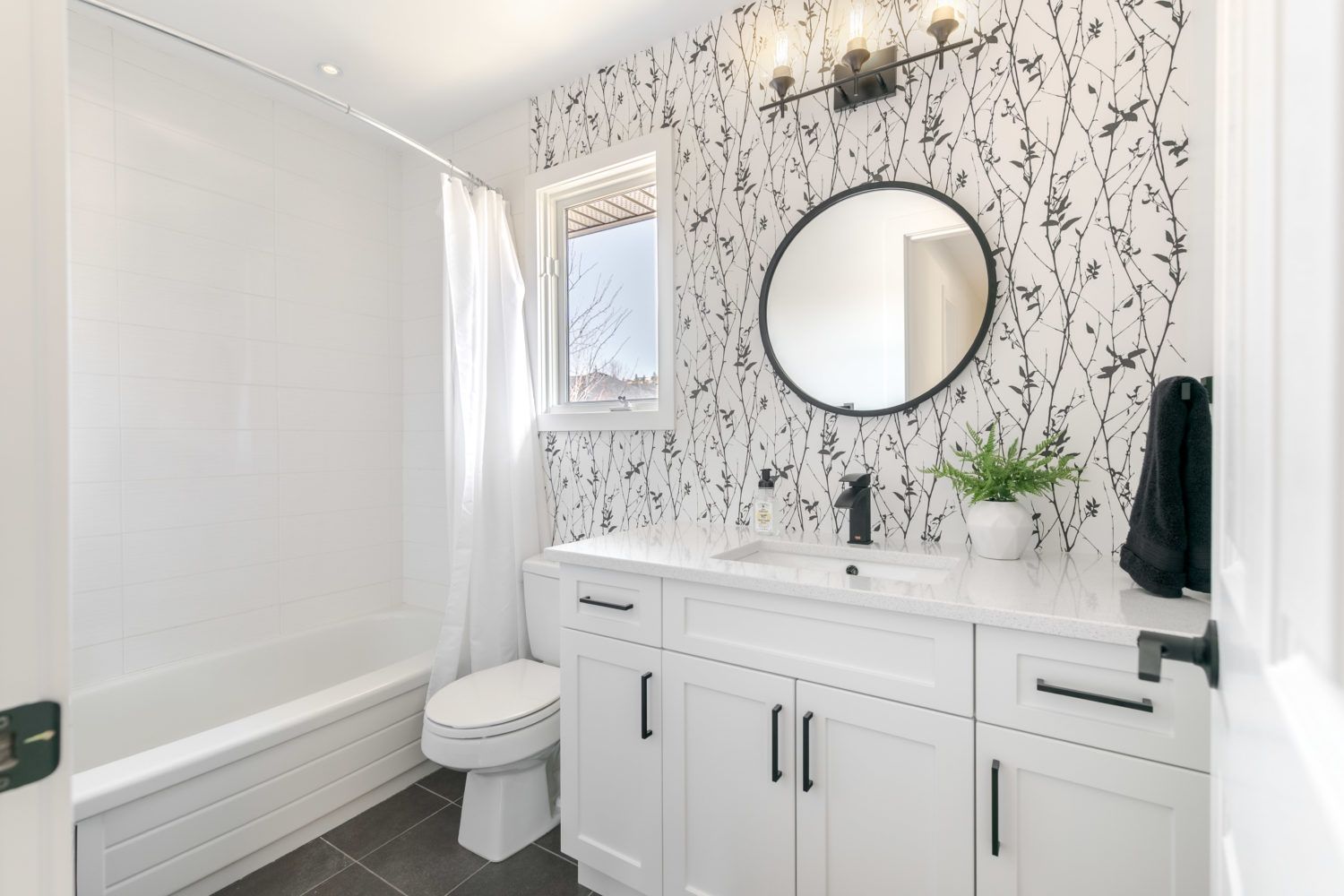 - Timeless black and white accents