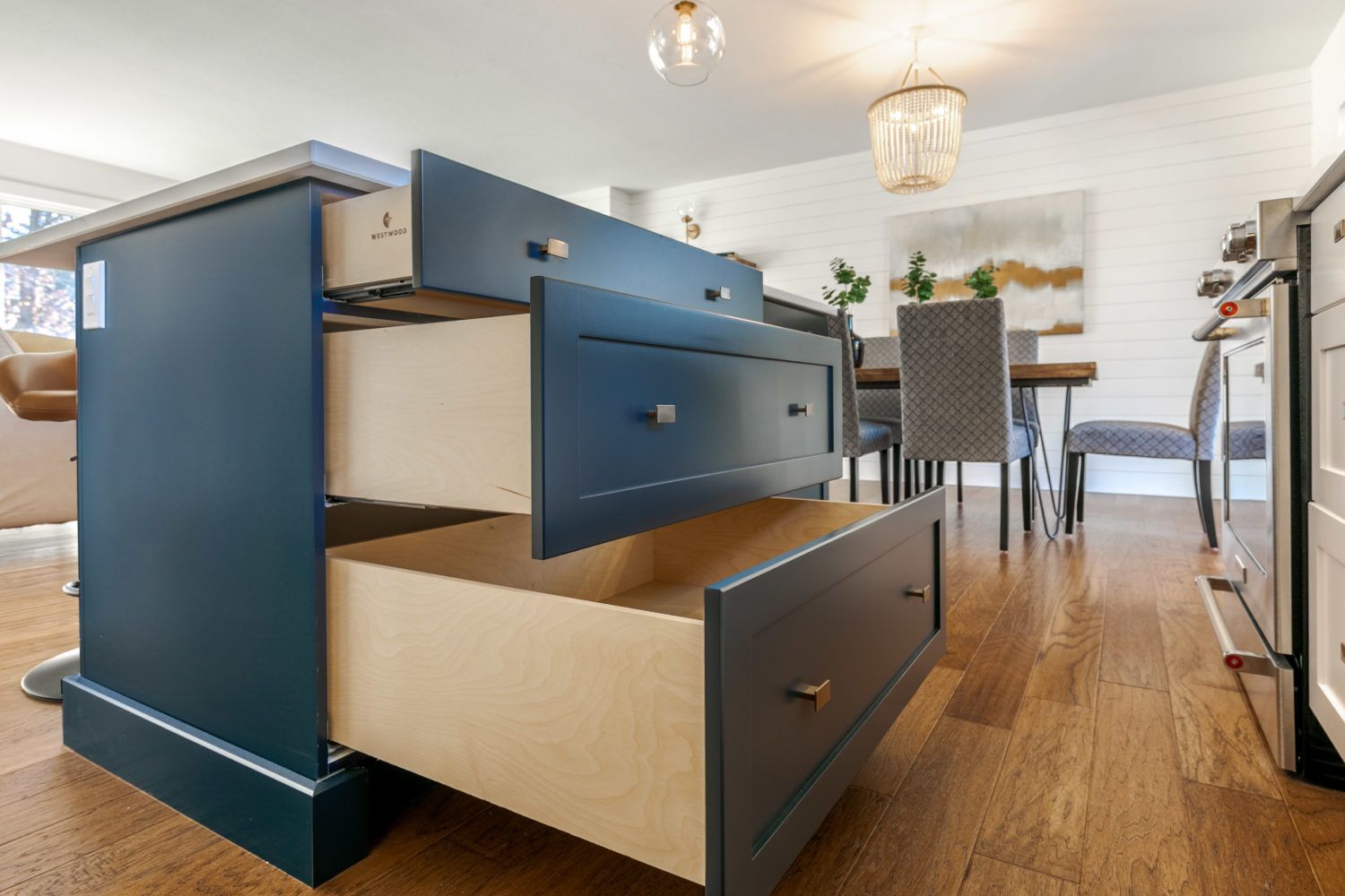 - Large center island with drawers