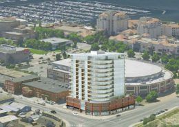 A new 14-story Kelowna condominium has approval for the corner of Ellis and Clement right next door to the BNA public house and Prospera Place. GSL Group of Vancouver, the original builder of Prospera Place and the owner of the Capri Mall property on Gordon Road and Hwy 97 has submitted plans to the city.
