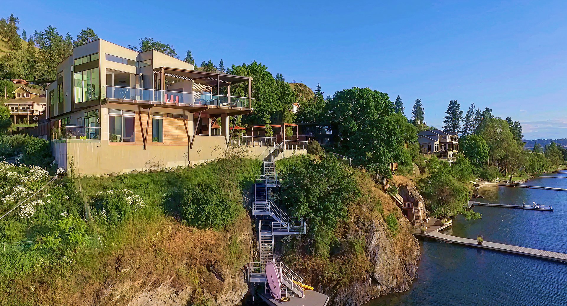 - Outdoor decks designed for sunset exposure